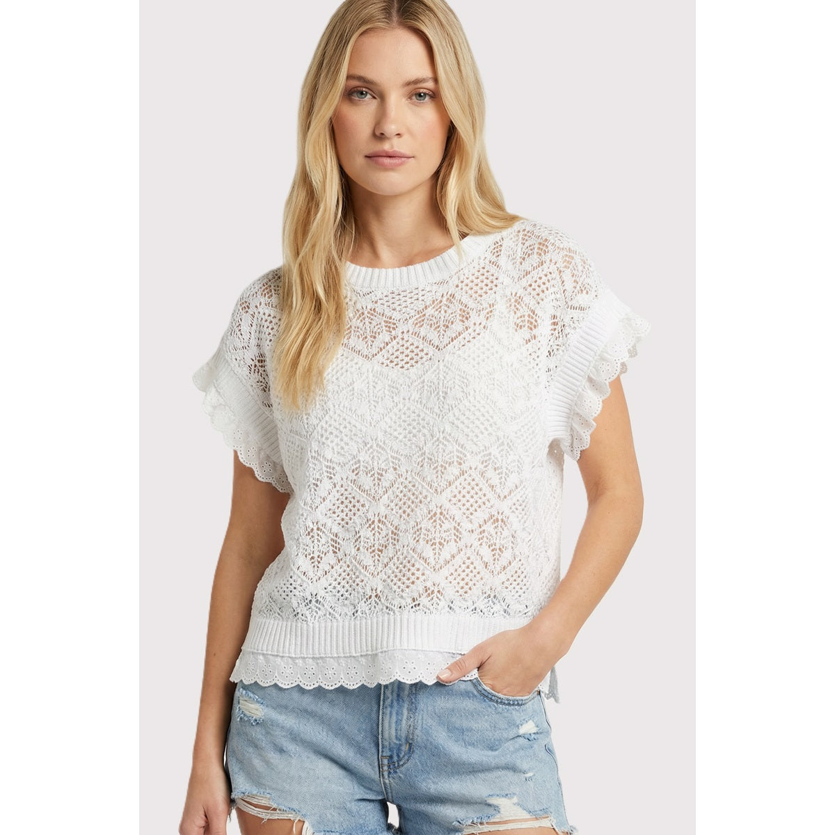 61 jane crochet eyelet sleeve trim crew neck sweater