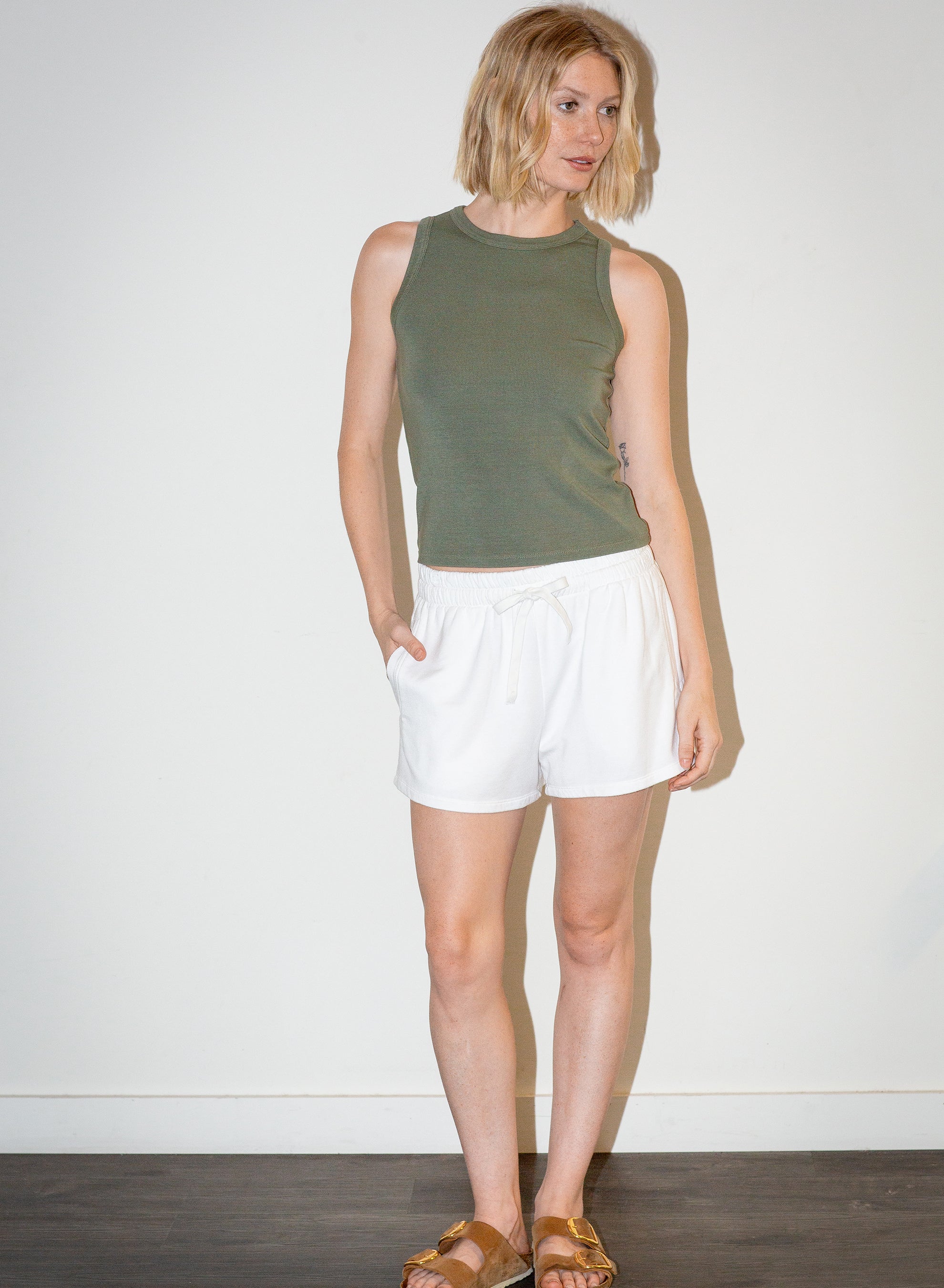 Versatile ribbed tank top designed for layering or standalone wear. The classic silhouette and textured ribbed fabric make it an essential wardrobe staple that transitions seamlessly from season to season. Pair it with jackets, cardigans, or blazers for added dimension, or style it solo for a clean, minimalist look. Comfortable enough for everyday wear and polished enough for elevated casual outfits.