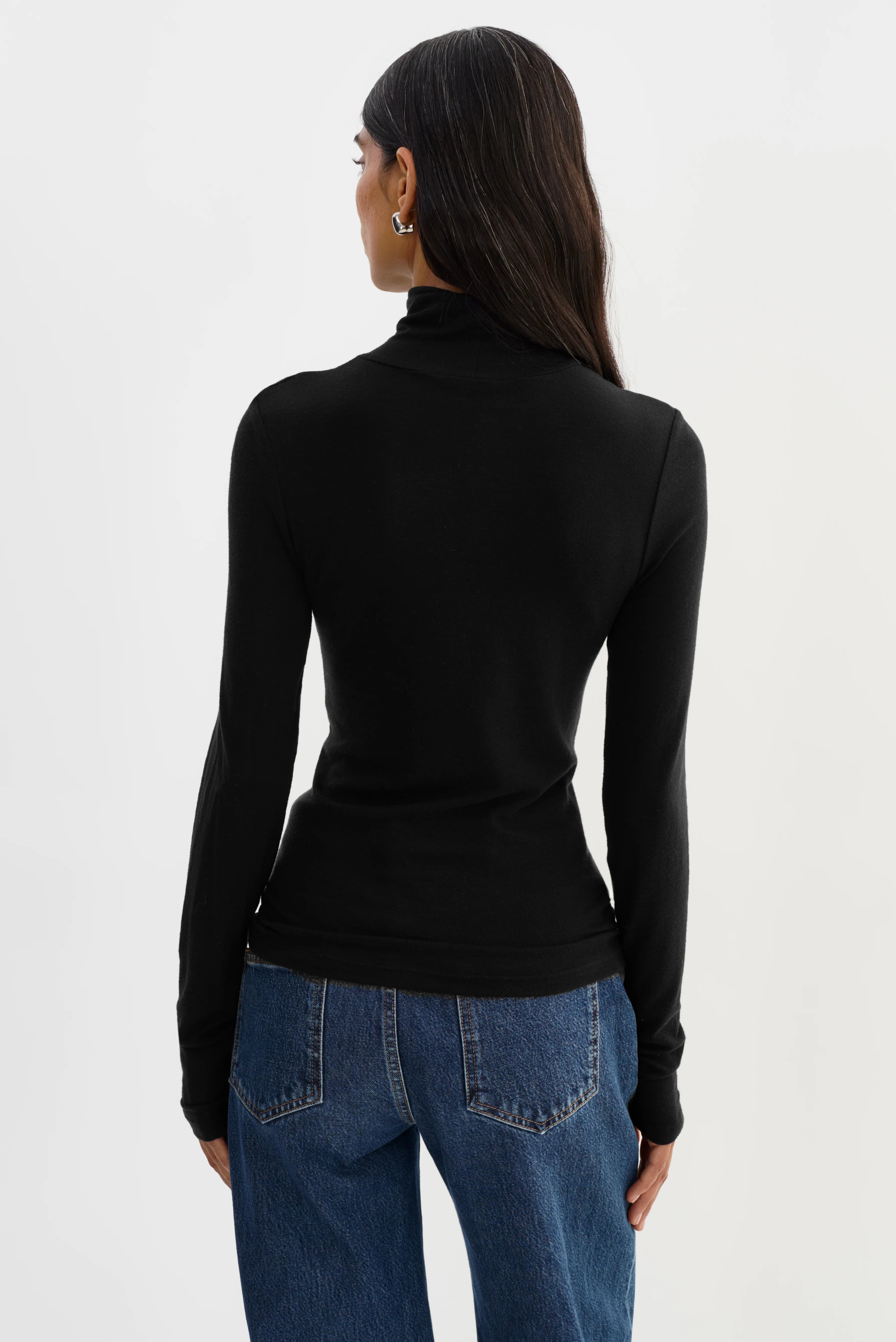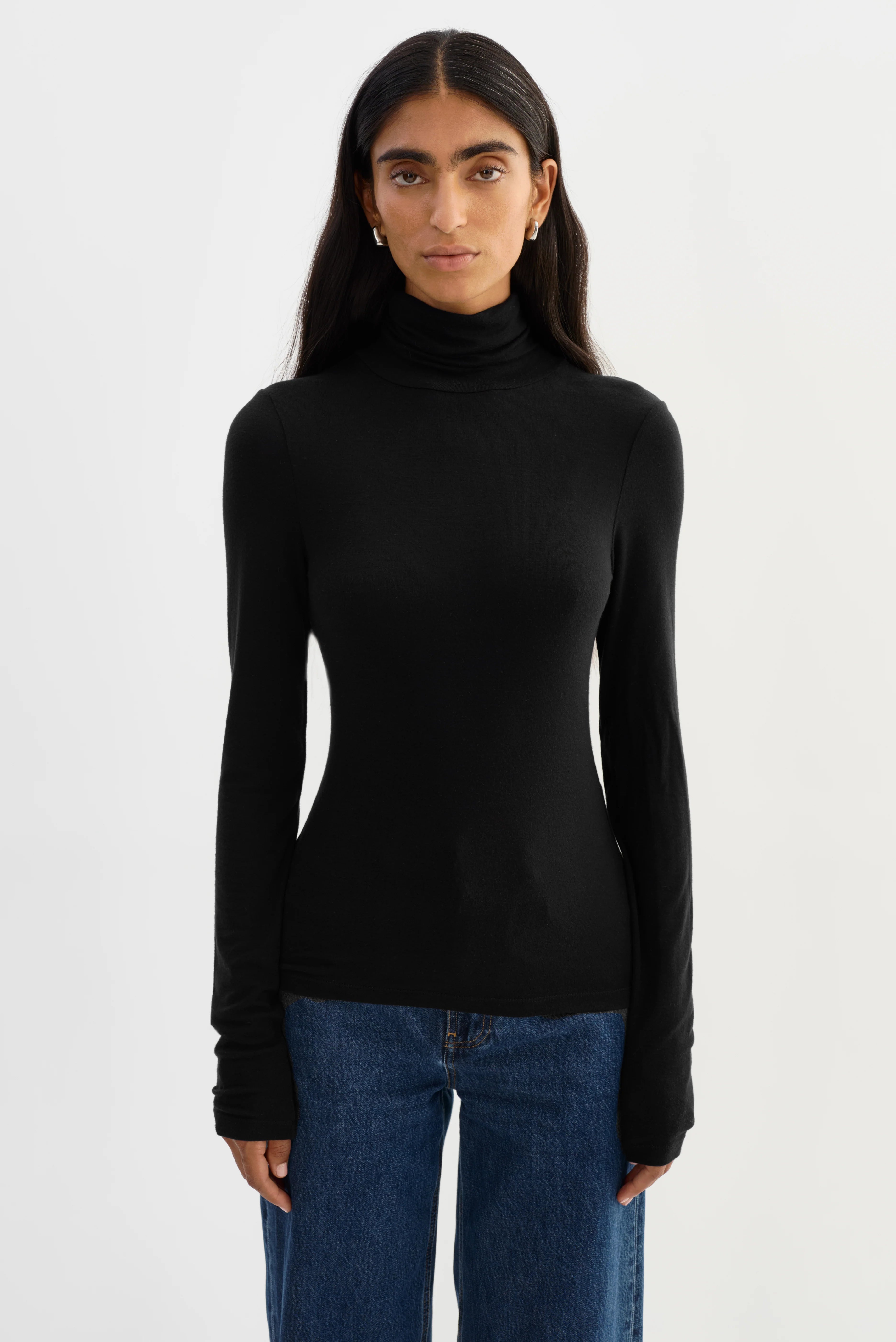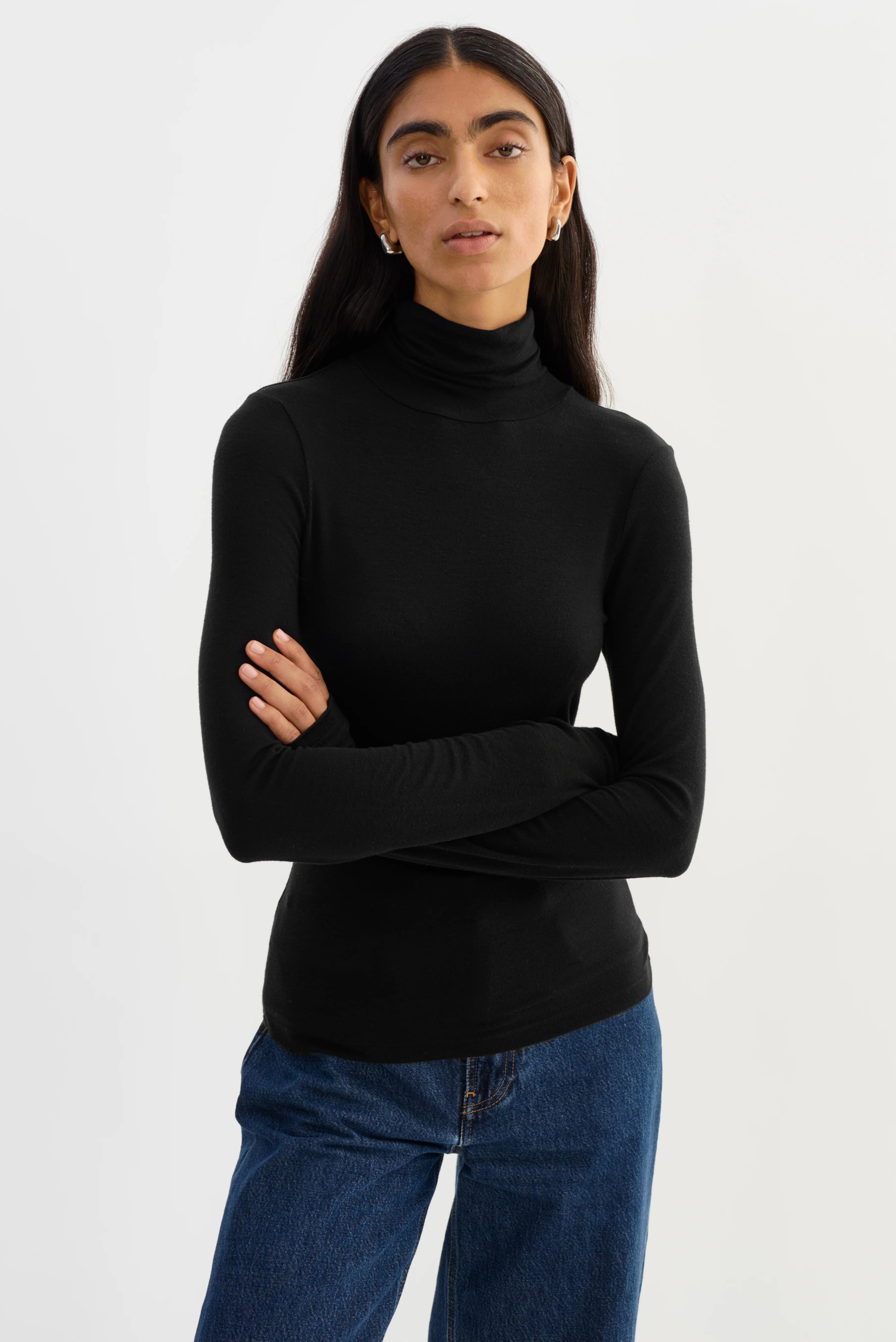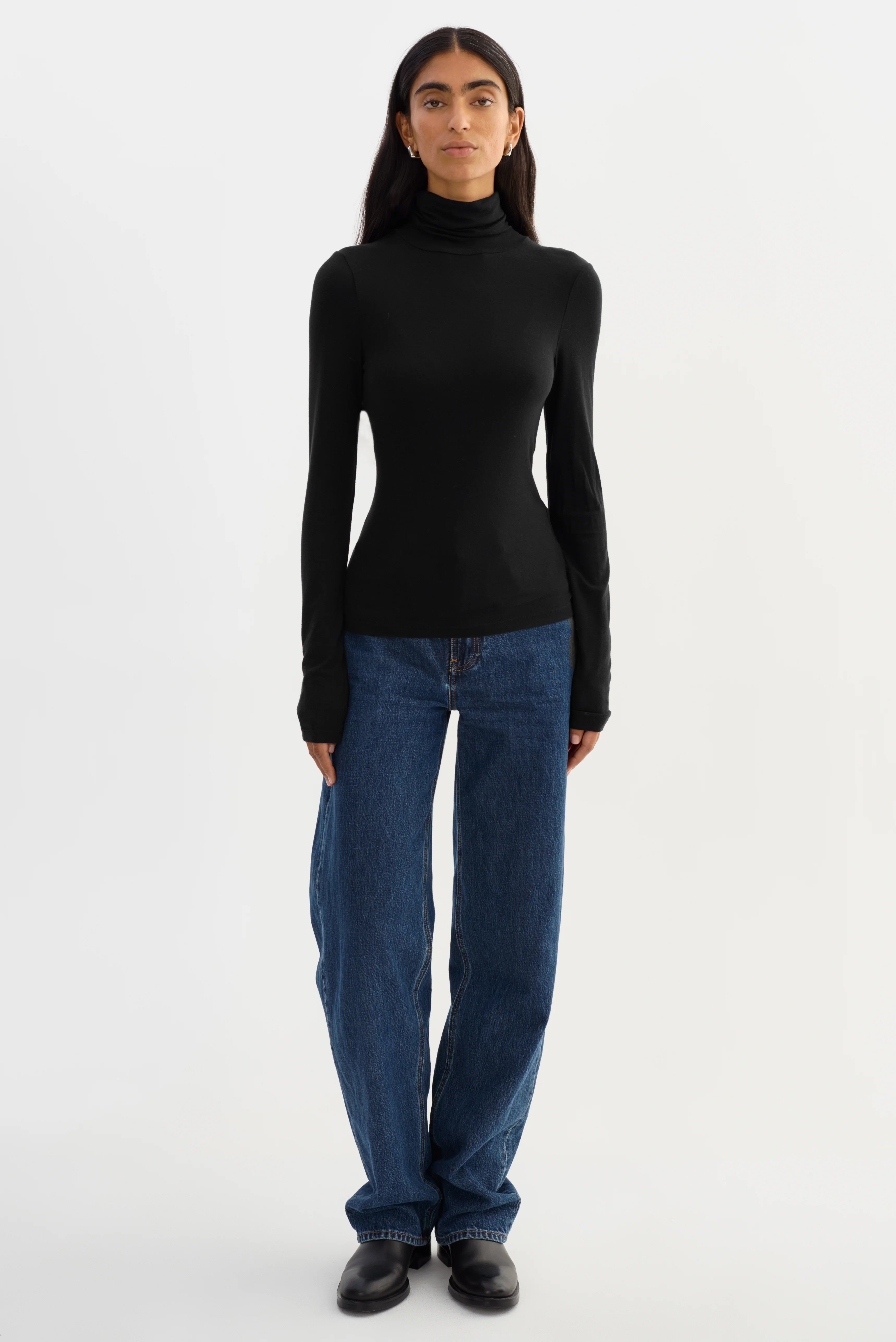 The Lamarque Sadie Turtleneck combines minimalist design with refined comfort. Its soft mockneck and slim, elongated silhouette provide a flattering fit that feels lightweight and breathable. Perfect for layering or wearing solo, this versatile piece elevates any outfit with timeless style and everyday ease.