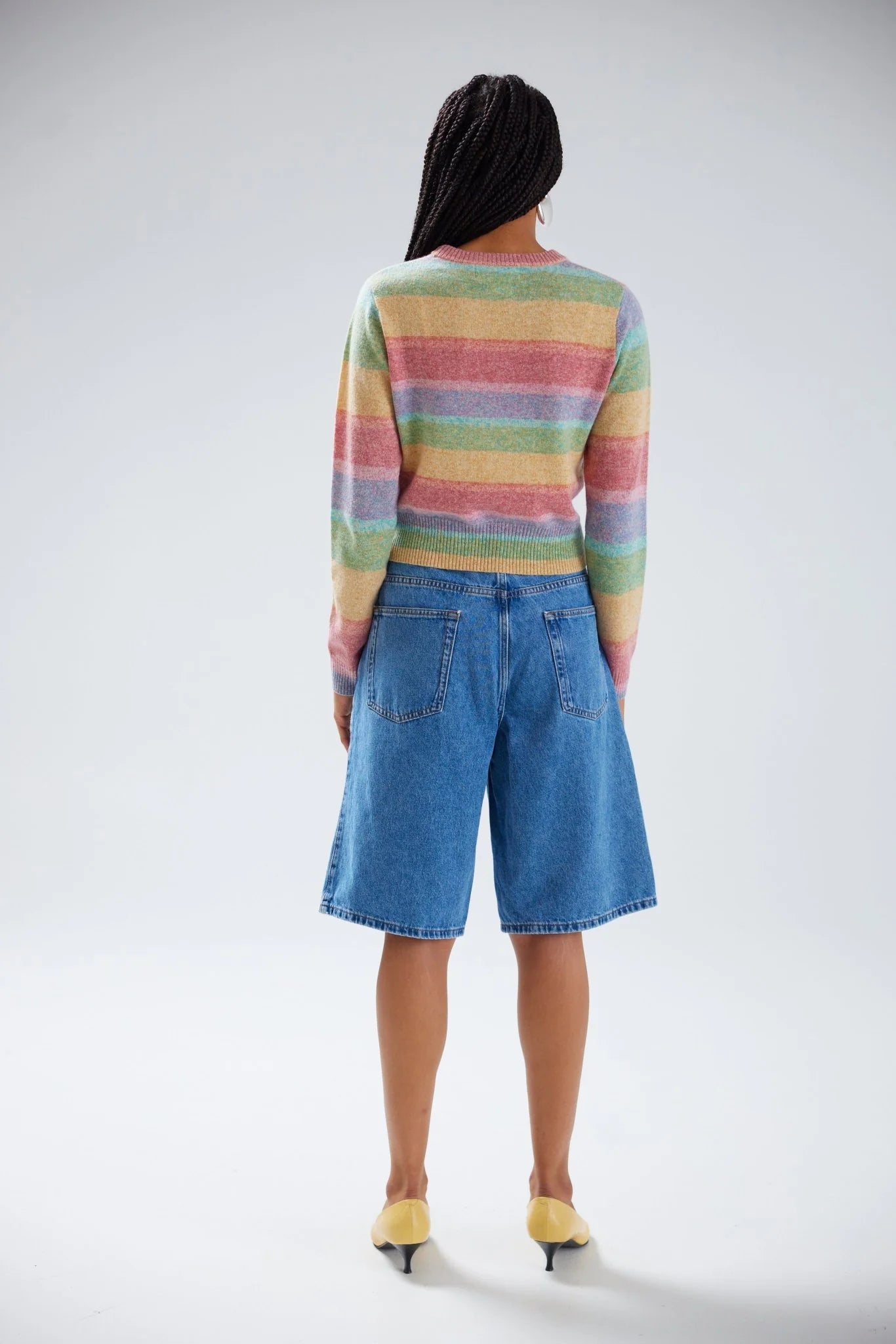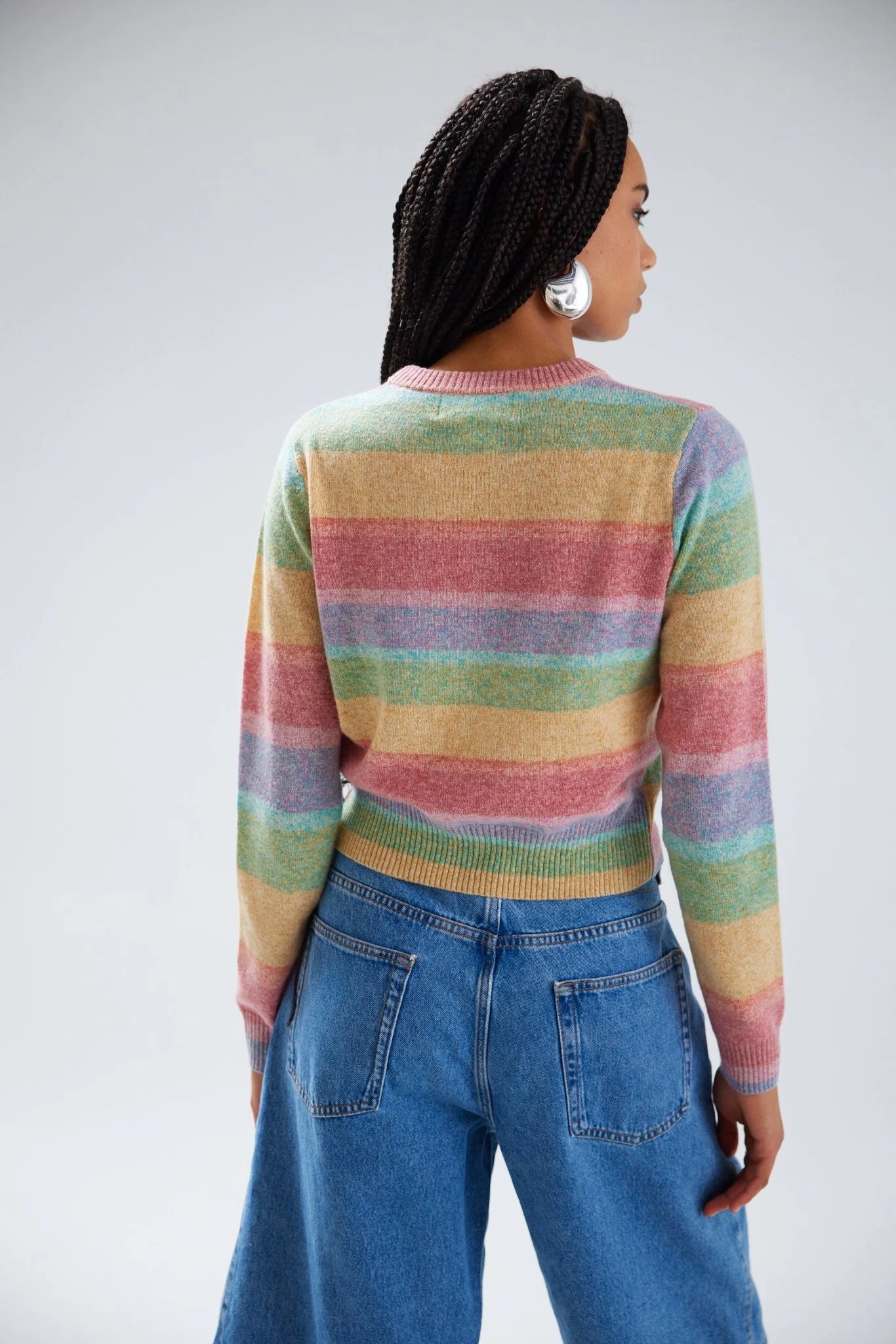 Elevate playtime with this luxurious Space Dye Knit crew neck crafted from 100% cashmere. The stunning rainbow drop colorway creates a mesmerizing gradient that shifts across the fabric, bringing cosmic flair to everyday adventures. Soft, breathable, and incredibly comfortable, this sweater combines premium quality with playful style—perfect for little ones who demand both sophistication and fun. The eye-catching design sparks conversations while the sumptuous cashmere ensures your child stays cozy all day long. An investment piece that grows with them.