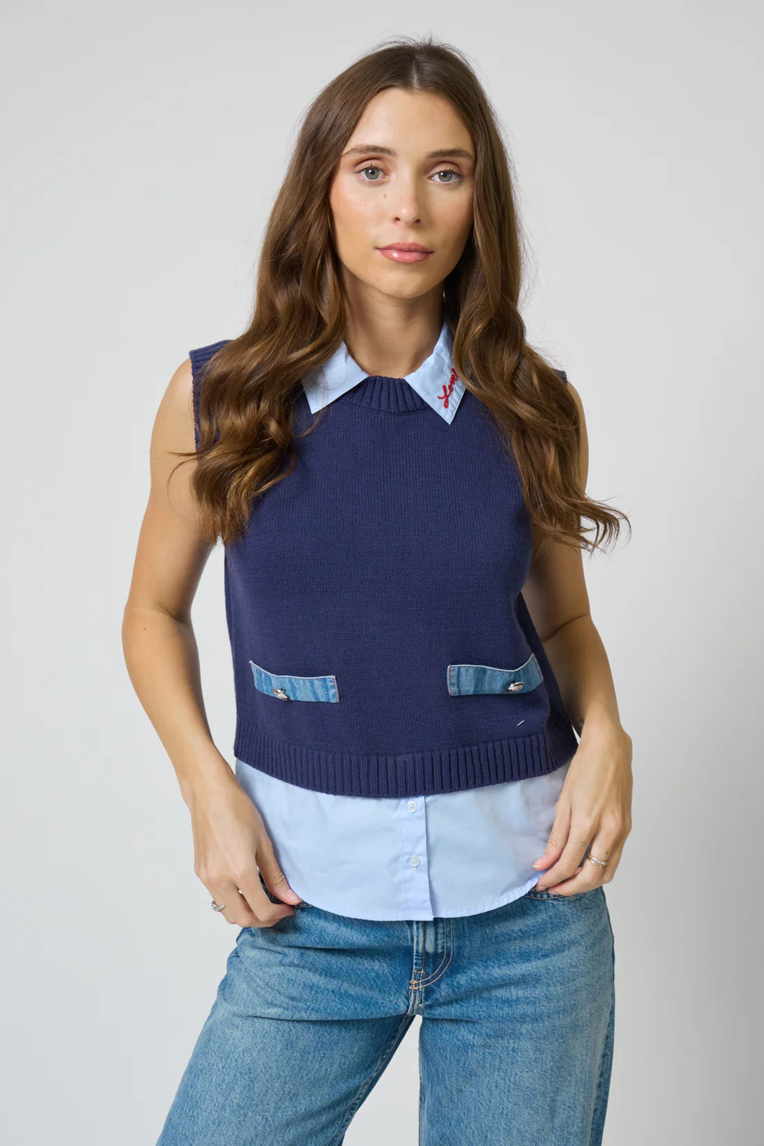 Elevate your layering game with the CPW Kendall Sleeveless Twofer Shirt—a versatile wardrobe essential that works as hard as you do. This thoughtfully designed vest combines a classic crew neckline with faux pocket detailing and a ribbed hem for a polished, structured fit that transitions seamlessly from season to season. Crafted from soft, breathable knit fabric, it delivers all-day comfort without compromising on style. Perfect for layering over tees, under blazers, or wearing solo, this piece is the foundation every closet needs.