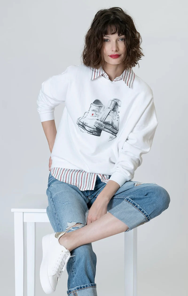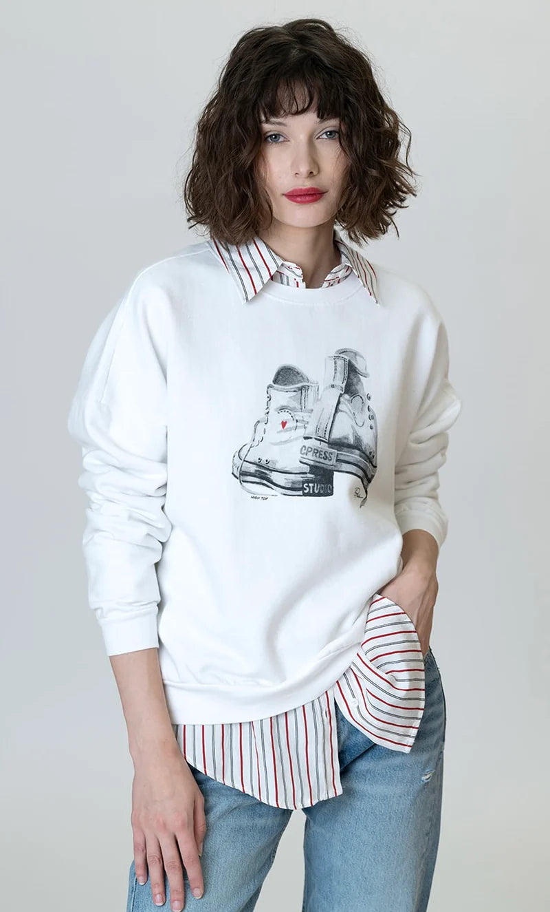 Every wardrobe needs that versatile staple—and this cozy sweatshirt is it. Crafted from a soft 90% cotton blend, it features a crisp white hightop shoes graphic on the front that effortlessly complements everything from casual sweats to your favorite jeans. Whether you're dressing down or elevating your everyday look, this sweatshirt delivers comfort and style that works with your entire closet. The kind of piece you'll reach for again and again.