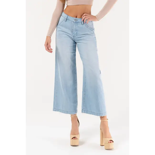 A modern take on classic trouser styling. These cropped wide-leg jeans feature soft, structured denim with minimal stretch for a clean silhouette that holds its shape. Faux back pockets add a streamlined detail while the cropped length works seamlessly with everything from sneakers to heels. Designed for those who prefer a relaxed fit without the give.