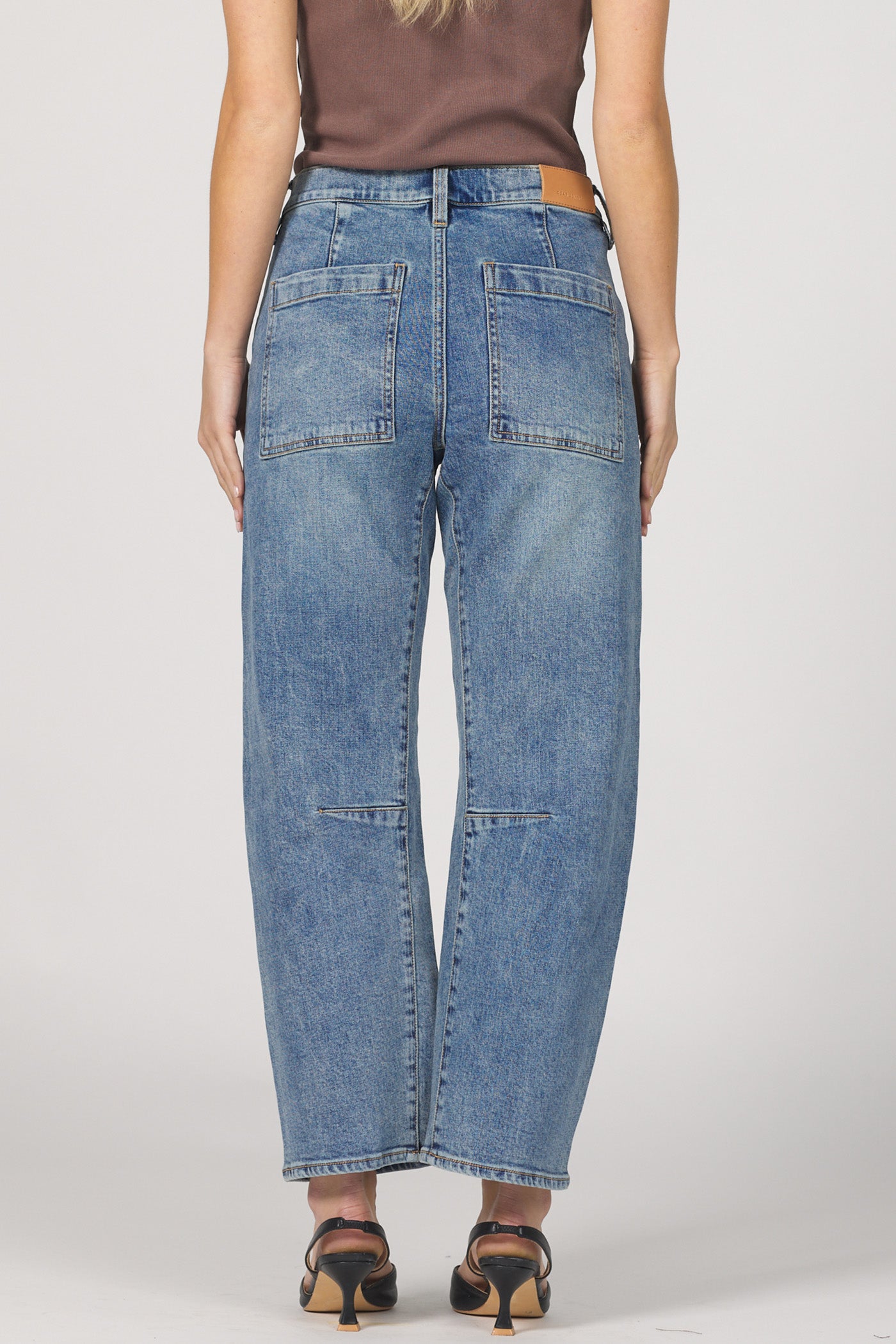 Discover the perfect blend of style and comfort with the Dear John Lasso Barrel Jeans in Waikiki medium wash. Featuring a flattering high-rise cut and a clean hemline, these loose straight-leg jeans offer a modern barrel fit that enhances every silhouette. Crafted from a premium cotton and spandex blend, they provide exceptional flexibility for all-day wear without compromising shape. Elevate your wardrobe with jeans that move with you and make a confident statement wherever you go.