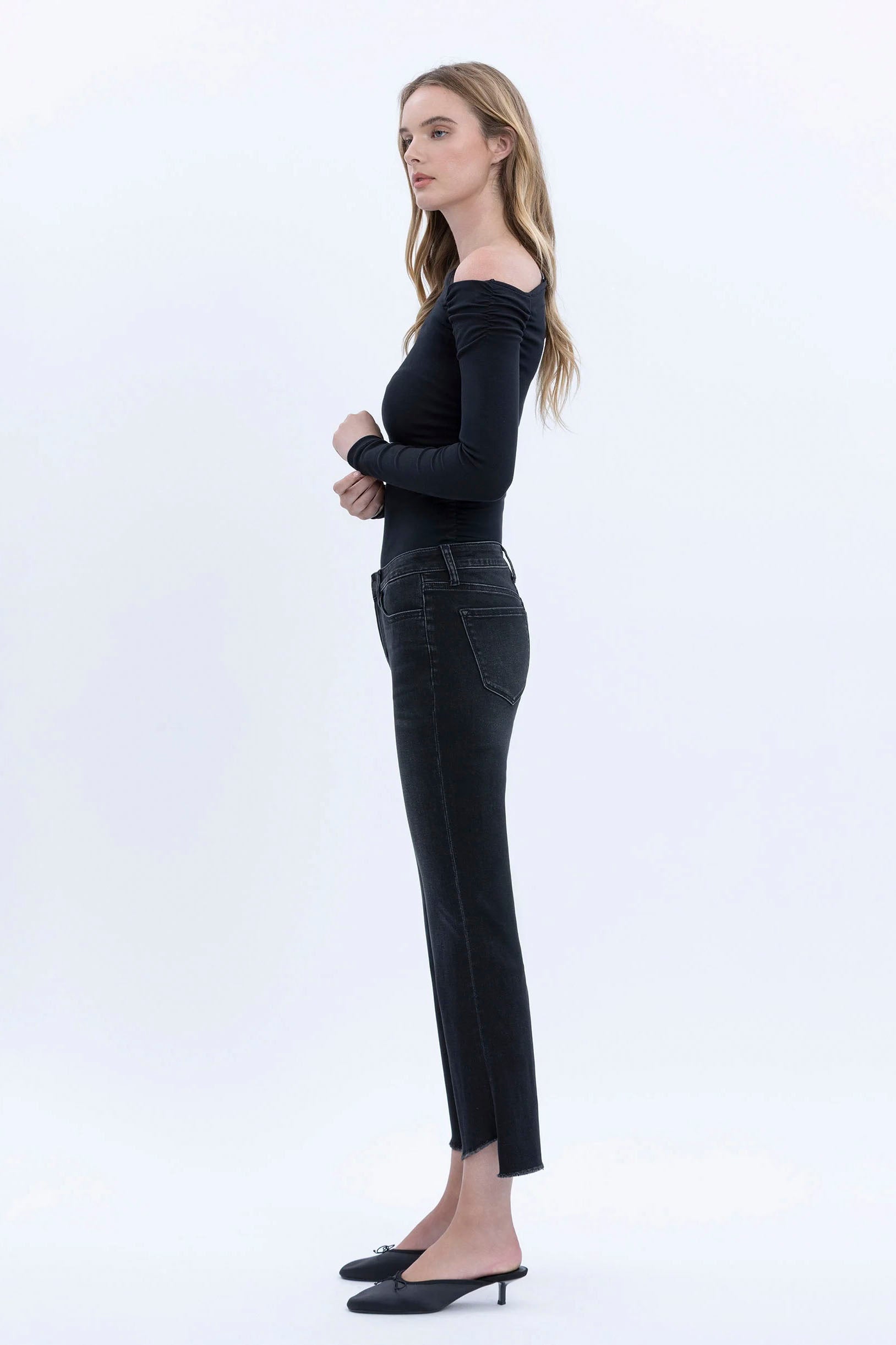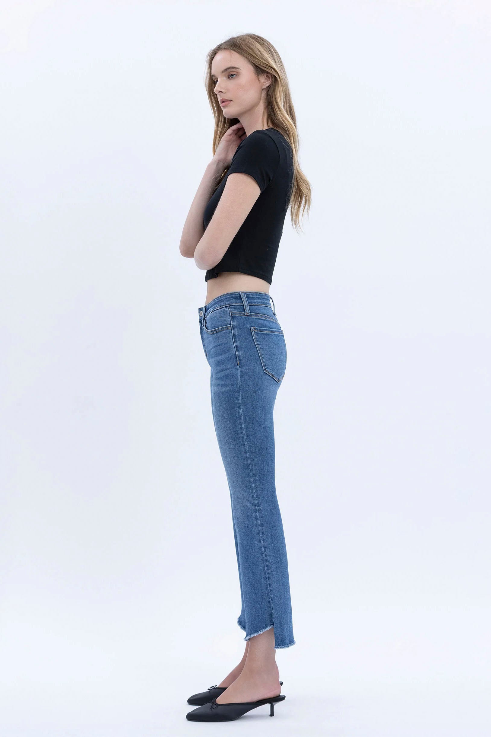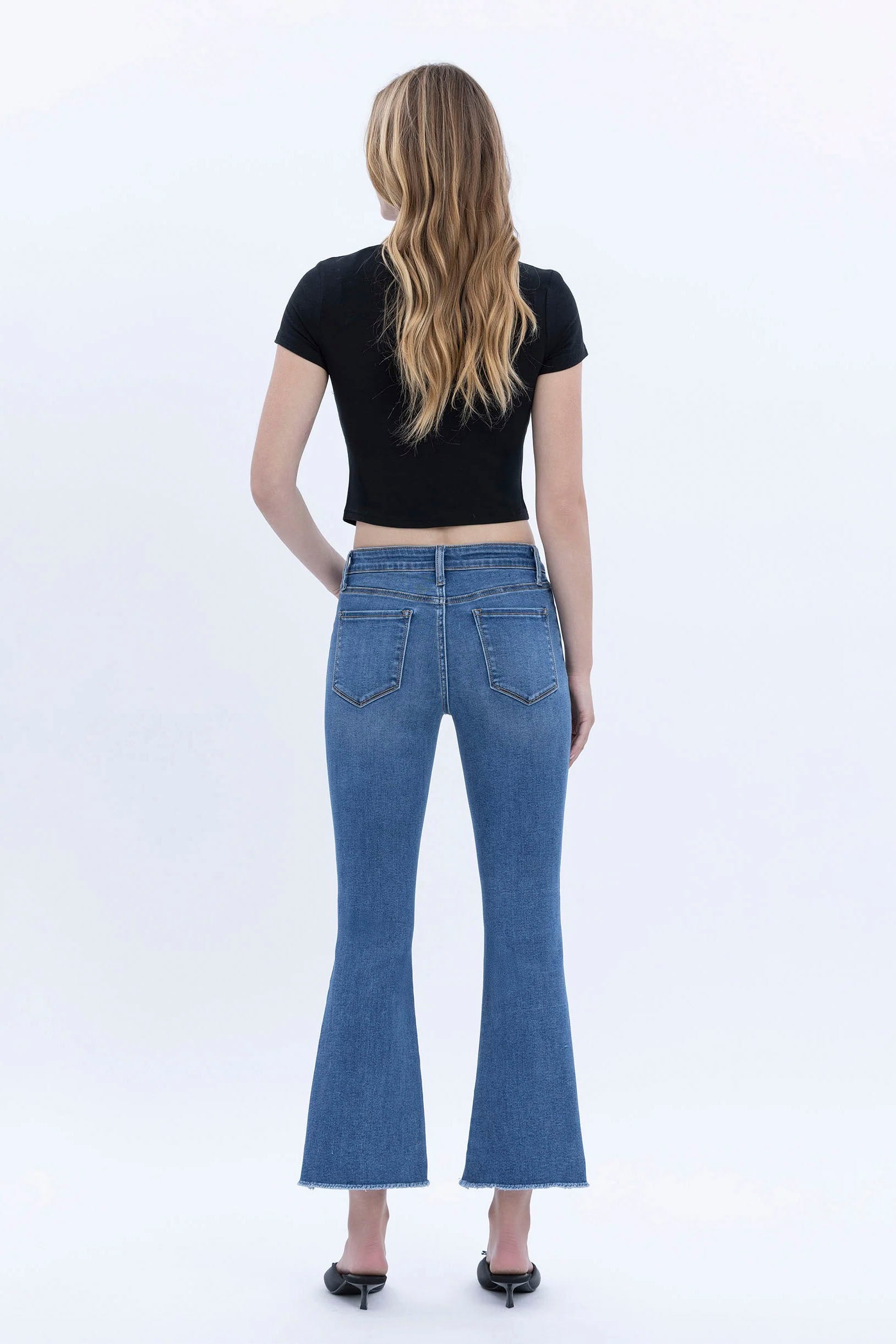 Vervet Allison Super Soft Mid Rise Crop Jeans deliver unmatched comfort with their stretch denim fabric that moves effortlessly with you. Designed with a flattering mid-rise waist, these jeans contour your silhouette while the raw step hem adds an edgy, modern flair. Cropped to showcase your footwear perfectly, these flare jeans elevate your wardrobe with a confident, stylish touch every time you wear them.