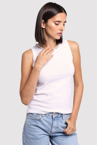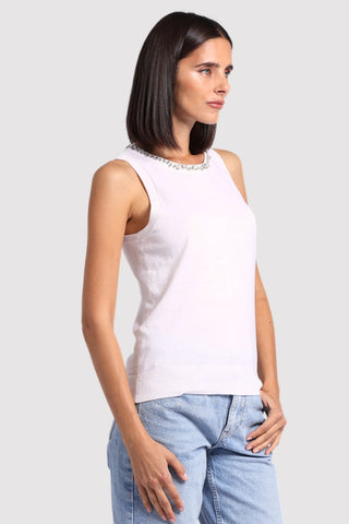 Indulge in luxurious comfort with the Minne Rose Jewel Neck Tank Top. Crafted from their signature cotton-cashmere blend, this tank offers a soft and lightweight feel perfect for any season. The elevated jewel neckline adds a modern touch, making it ideal for both solo wear and layering. Treat yourself to laid-back luxury today.