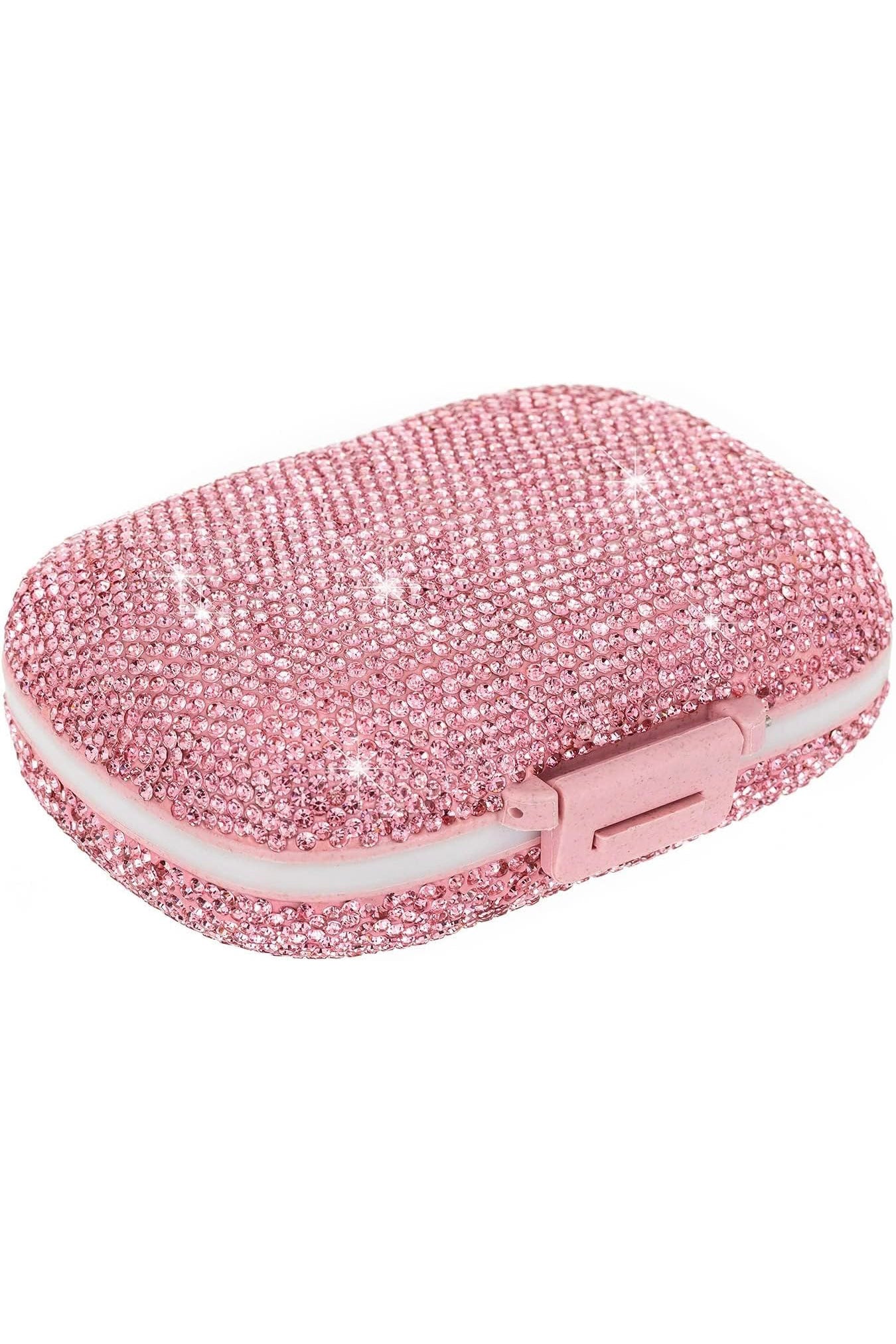 Compact and stylish, this rhinestone pill box is the perfect travel companion for organizing medications, vitamins, or supplements on the go. The sparkling rhinestone embellishment adds a touch of elegance to everyday wellness, while the small, lightweight design fits easily into purses, carry-ons, or travel bags. Durable construction keeps your essentials secure and protected during trips. Whether you're commuting, vacationing, or simply staying organized at home, this charming pill box combines practicality with sophisticated flair.