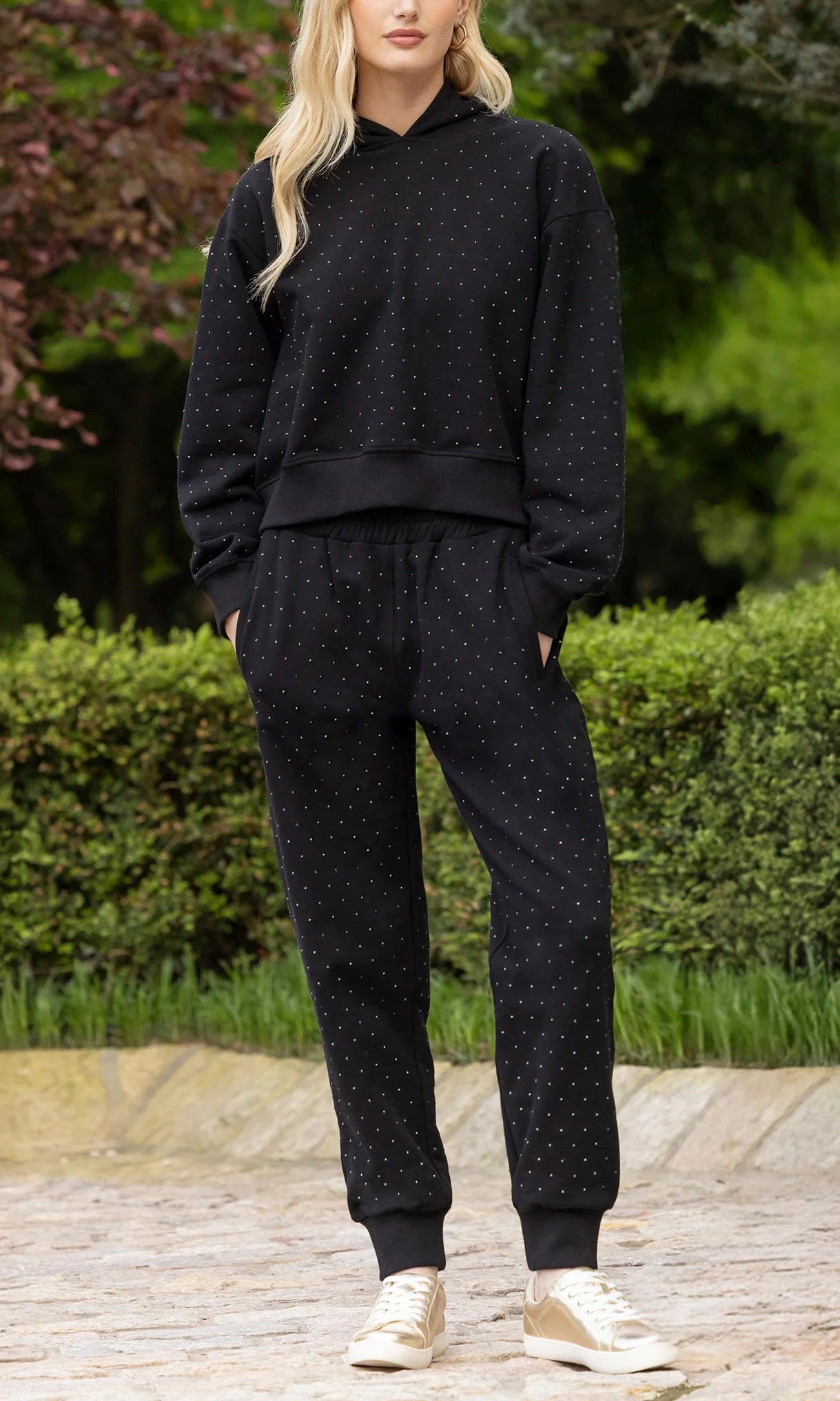 Crystal embellishments elevate the Renae Crystal cropped hoodie from basic to brilliant, delivering effortless style without sacrificing comfort. The contemporary design works as a versatile layering piece—pair it with the matching Ruel Crystal Sweatpants for a coordinated statement, or throw it over your favorite jeans for an instantly polished, sporty-chic vibe. Perfect for those who refuse to choose between looking put-together and feeling cozy.