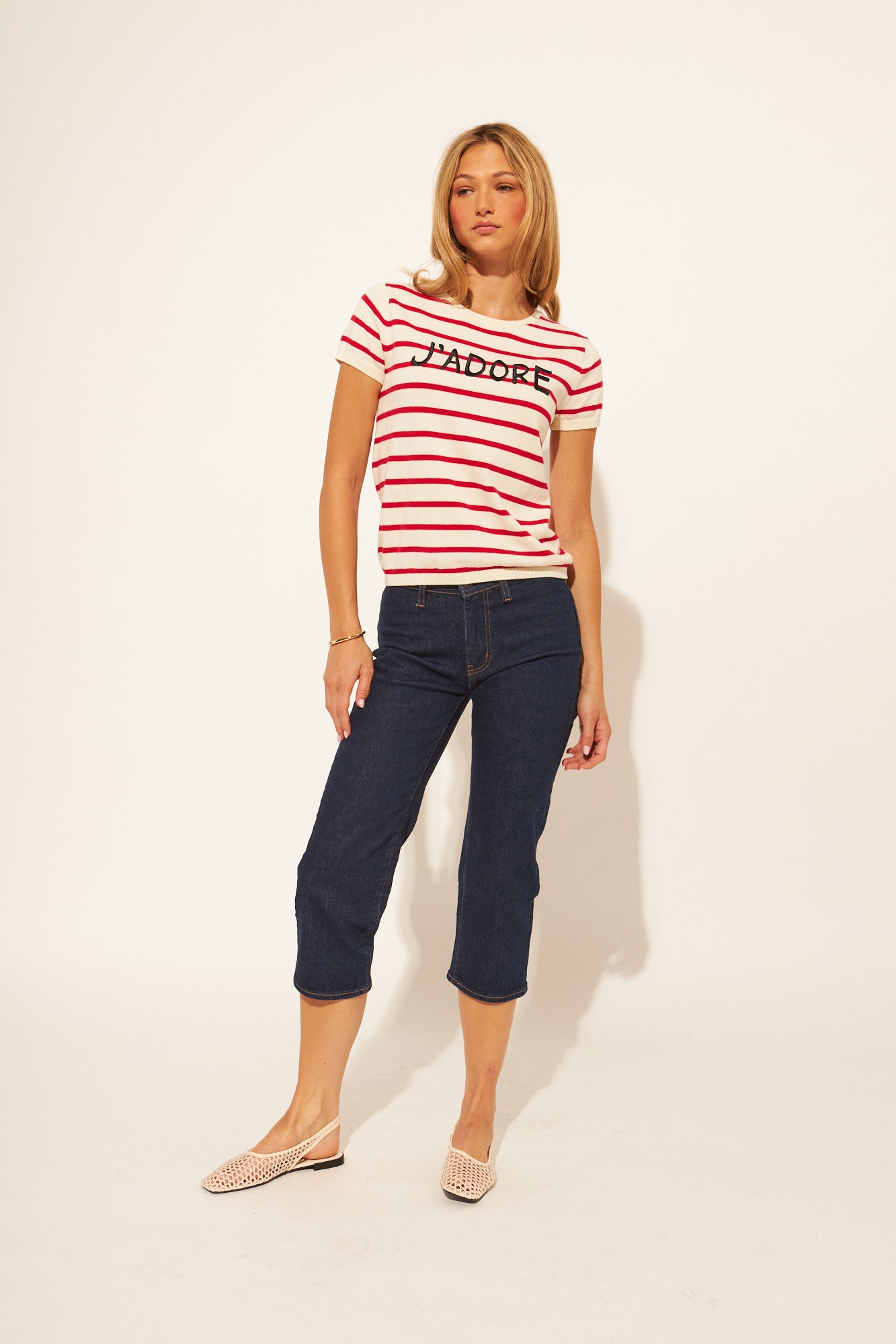 Elevate your wardrobe with the John & Jenn Nicolas Sweater—a timeless French-inspired piece that effortlessly transitions between seasons. The iconic red stripes and charming "J'ADORE" detail deliver instant Parisian sophistication, while the short-sleeved silhouette keeps you comfortable as temperatures shift. This versatile sweater pairs beautifully with denim or tailored trousers, making it the go-to layer for creating chic, polished looks. Invest in a piece that combines playful personality with enduring style—because true elegance never goes out of fashion.