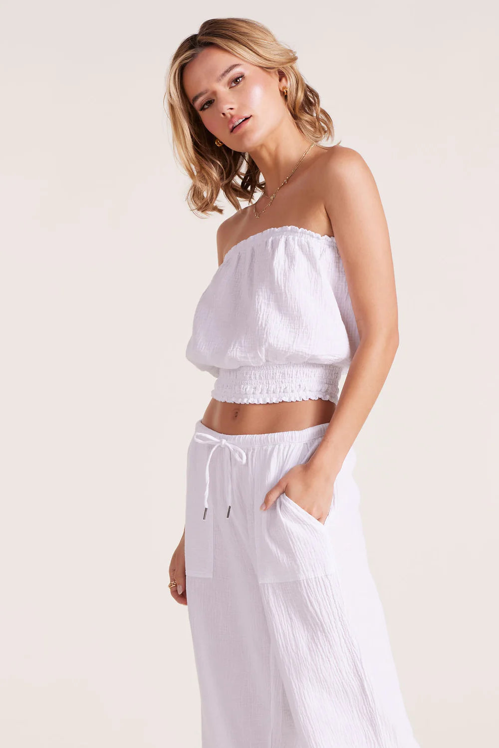 Meet everyone's favorite classic with a fresh twist. This isn't just any tube top – it's the tube top that effortlessly elevates every look. The variegated smocked body creates beautiful texture and ensures the perfect fit that moves with you, while the cropped silhouette hits just right for that coveted modern vibe.