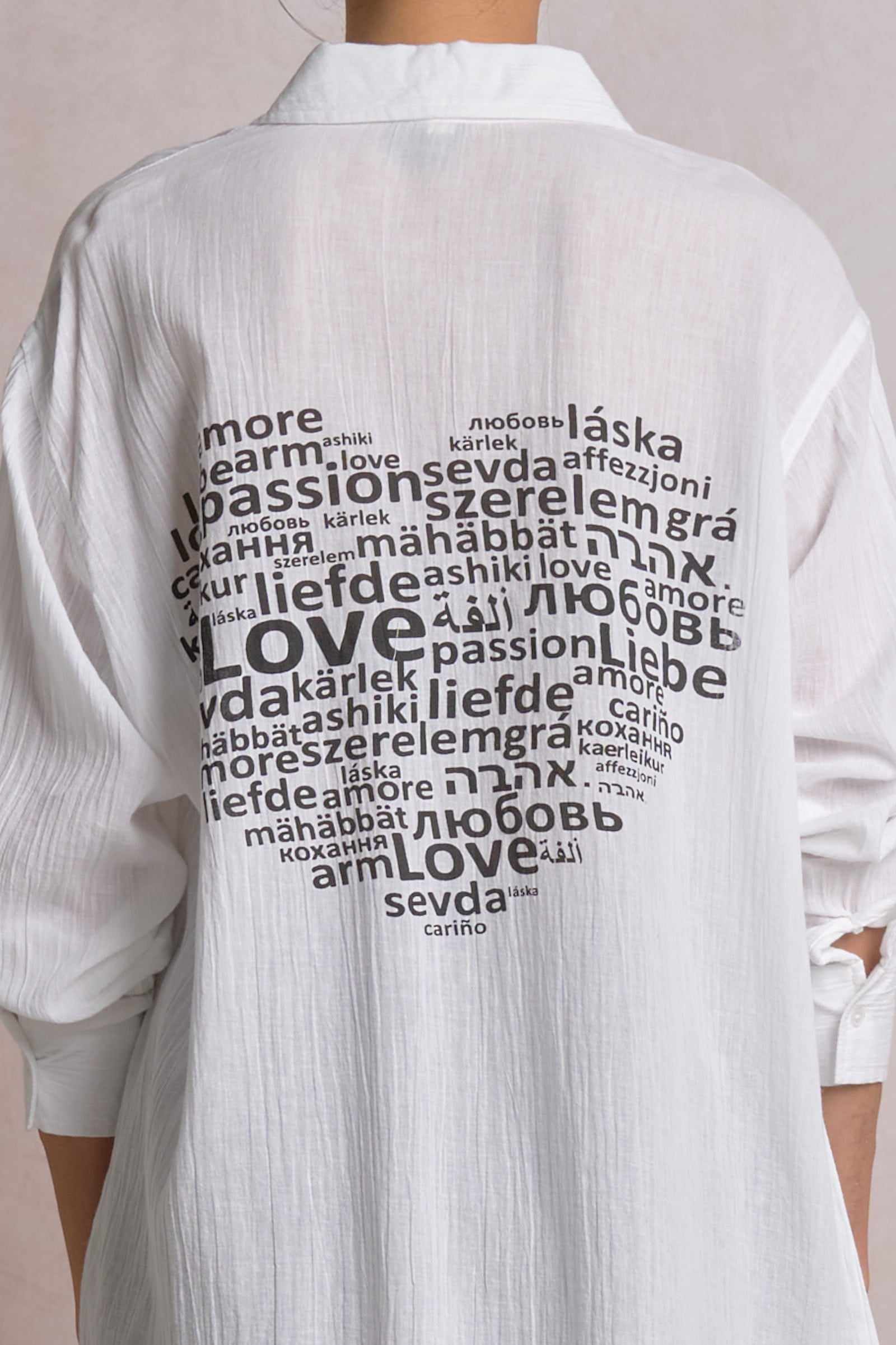Effortless resort style meets playful romance in this cotton button-down shirt. Crafted from breathable cotton, it's perfect for warm-weather escapes and casual getaways. The charming love heart graphic on the back adds a whimsical touch that catches eyes whether you're poolside or exploring coastal towns. Layer it over a swim top or wear solo for versatile, breezy elegance.