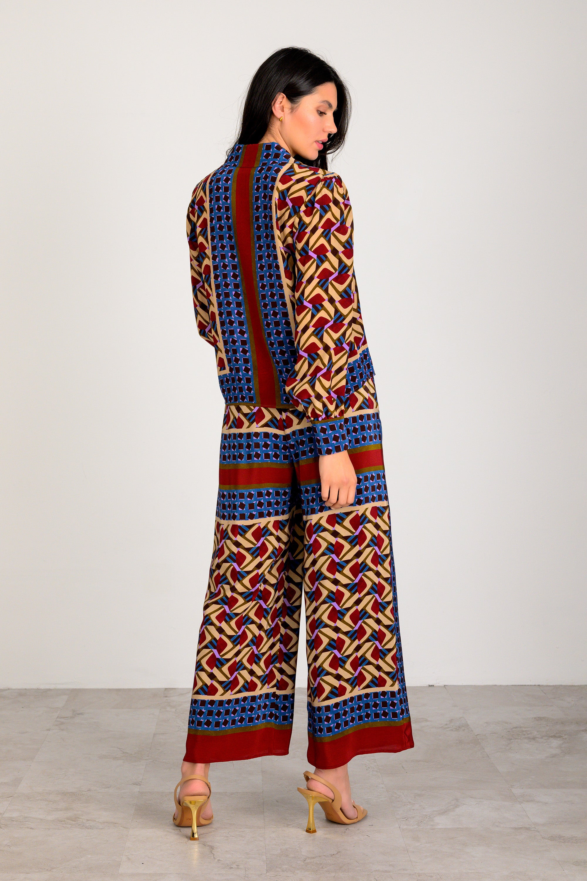 Elevate your wardrobe with the Lavender Brown Paola Geometric Blouse. Featuring a striking geometric print, classic collar, and button-down front, this long sleeve top blends sophistication with contemporary flair. Perfect for both workdays and weekend outings, it delivers effortless style and comfortable wear in one versatile piece. Add a vibrant touch to your closet today.