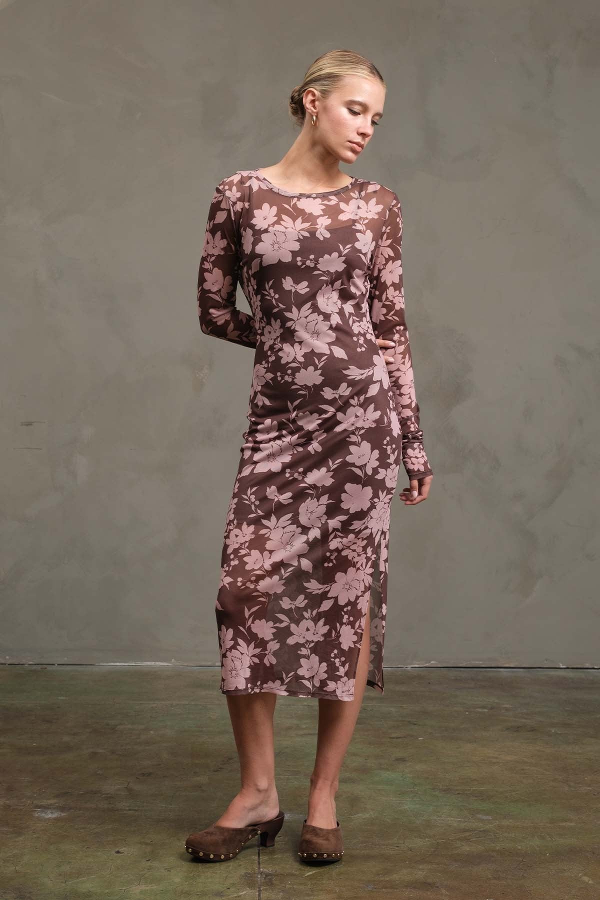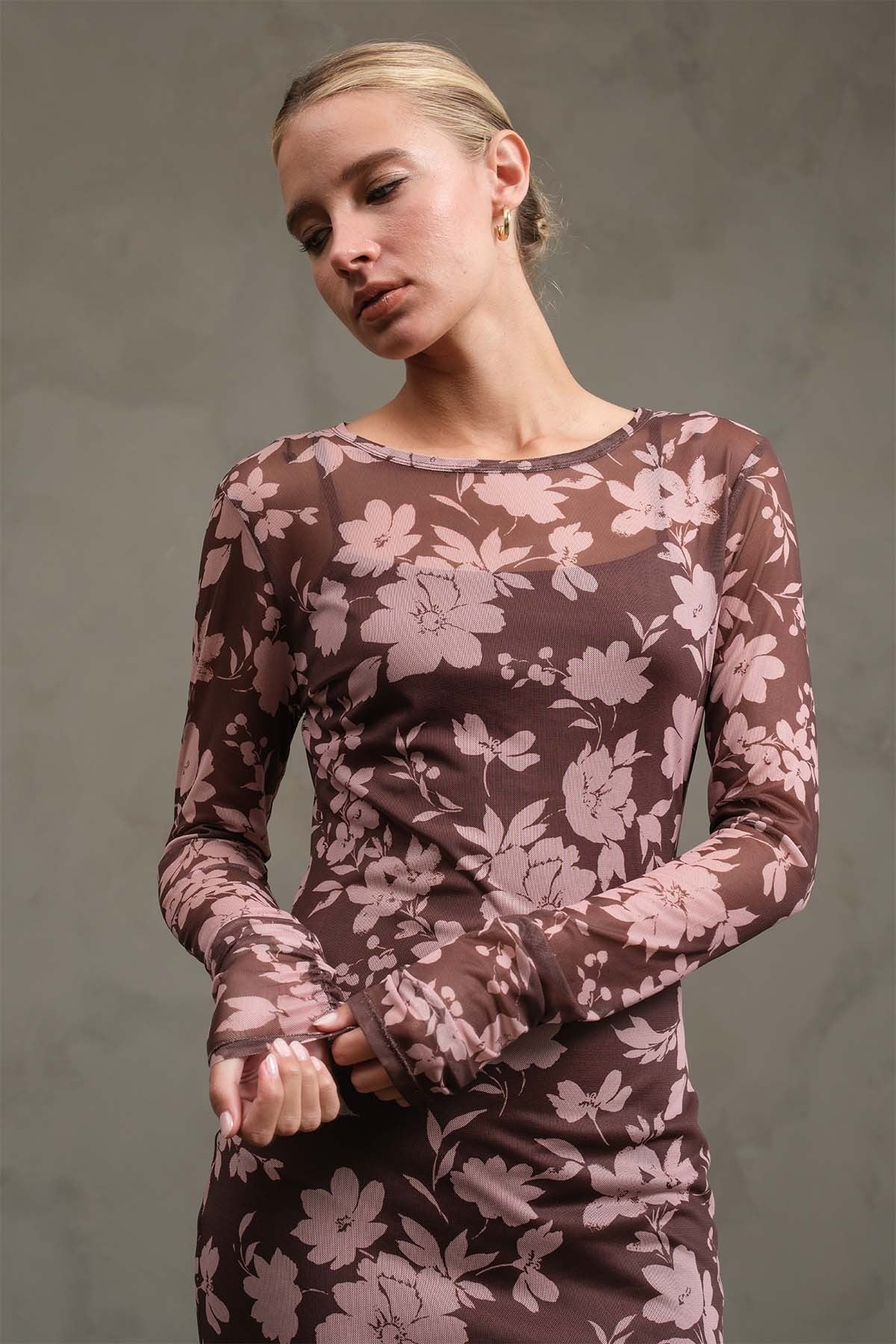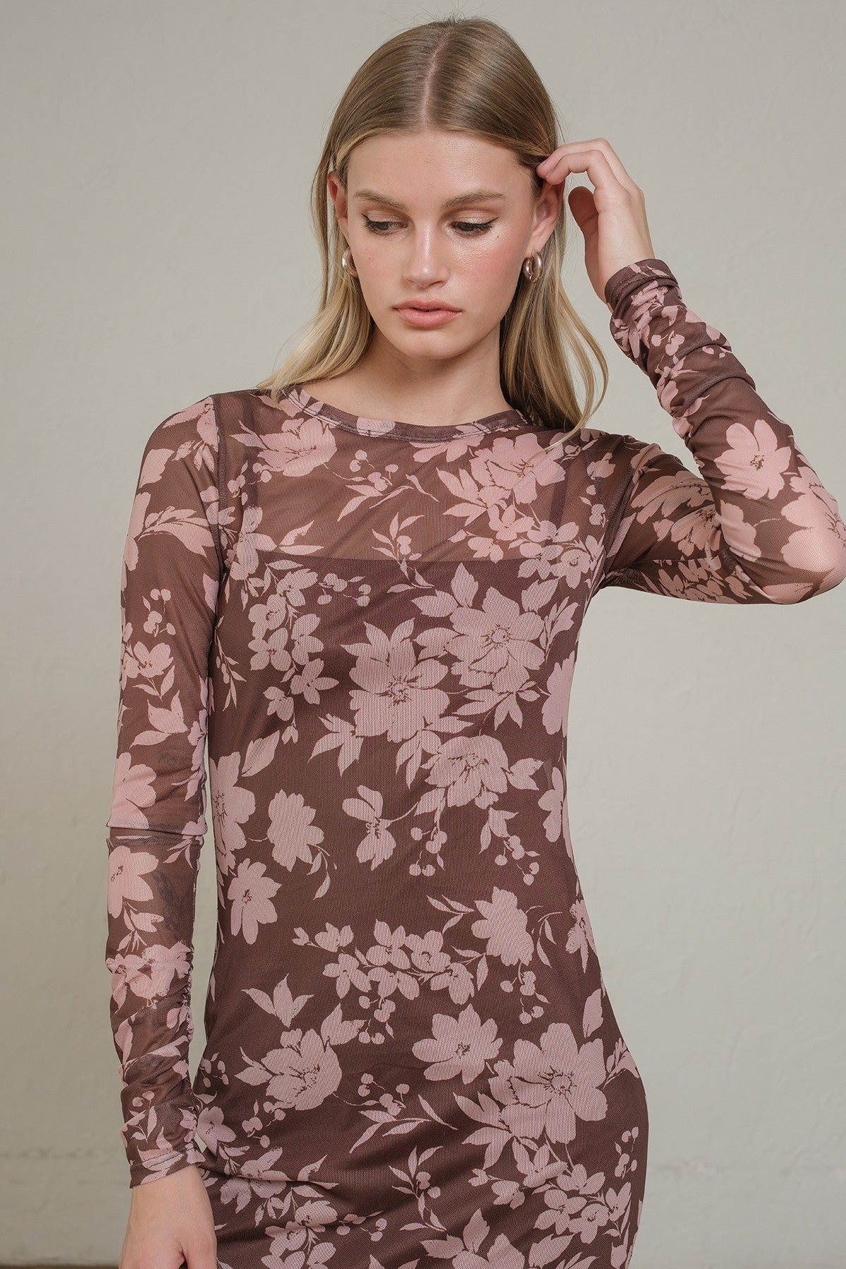 Embrace effortless elegance with this captivating floral mesh dress that celebrates your silhouette. The delicate all-over floral print floats across a semi-sheer mesh fabric, creating an enchanting, romantic aesthetic that turns heads. Long fitted sleeves provide graceful coverage while the classic round neckline offers timeless appeal. Perfect for date nights, garden parties, or any occasion calling for understated sophistication, this midi dress combines comfort with undeniable style. The thoughtfully designed fit ensures you'll feel confident and beautiful from day to night.