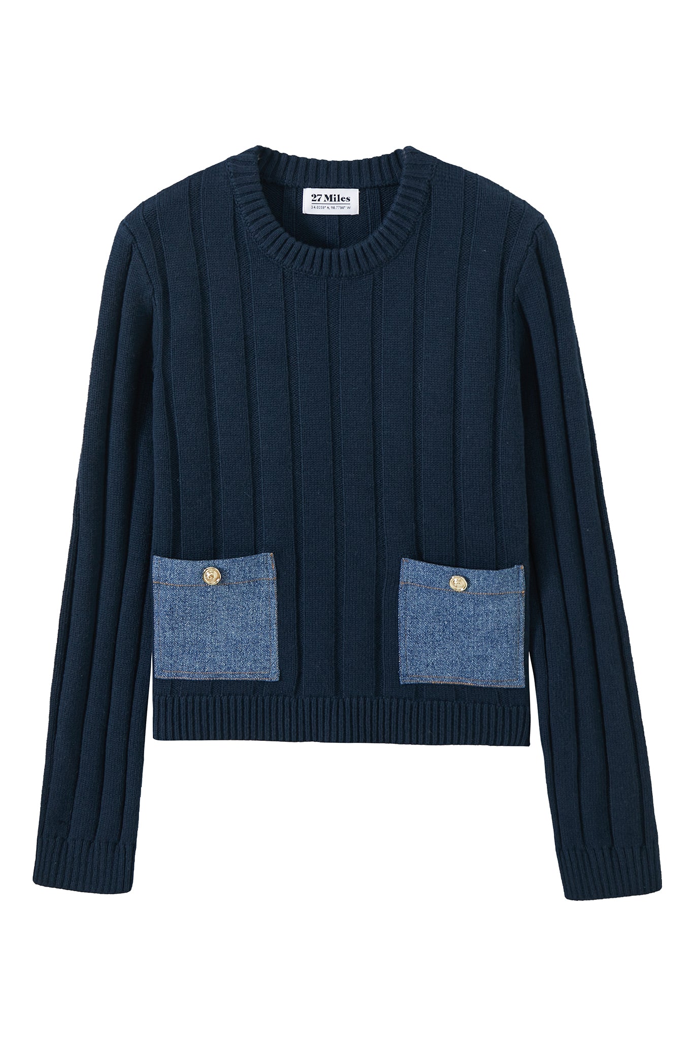 Elevate your wardrobe with the 27 Miles Toni Sweater, blending luxurious cashmere softness with stylish navy denim pockets for a chic, modern look. This cozy sweater offers exceptional comfort while adding a unique touch of detail, perfect for everyday wear or casual outings. Experience warmth and sophistication effortlessly combined in one versatile piece.