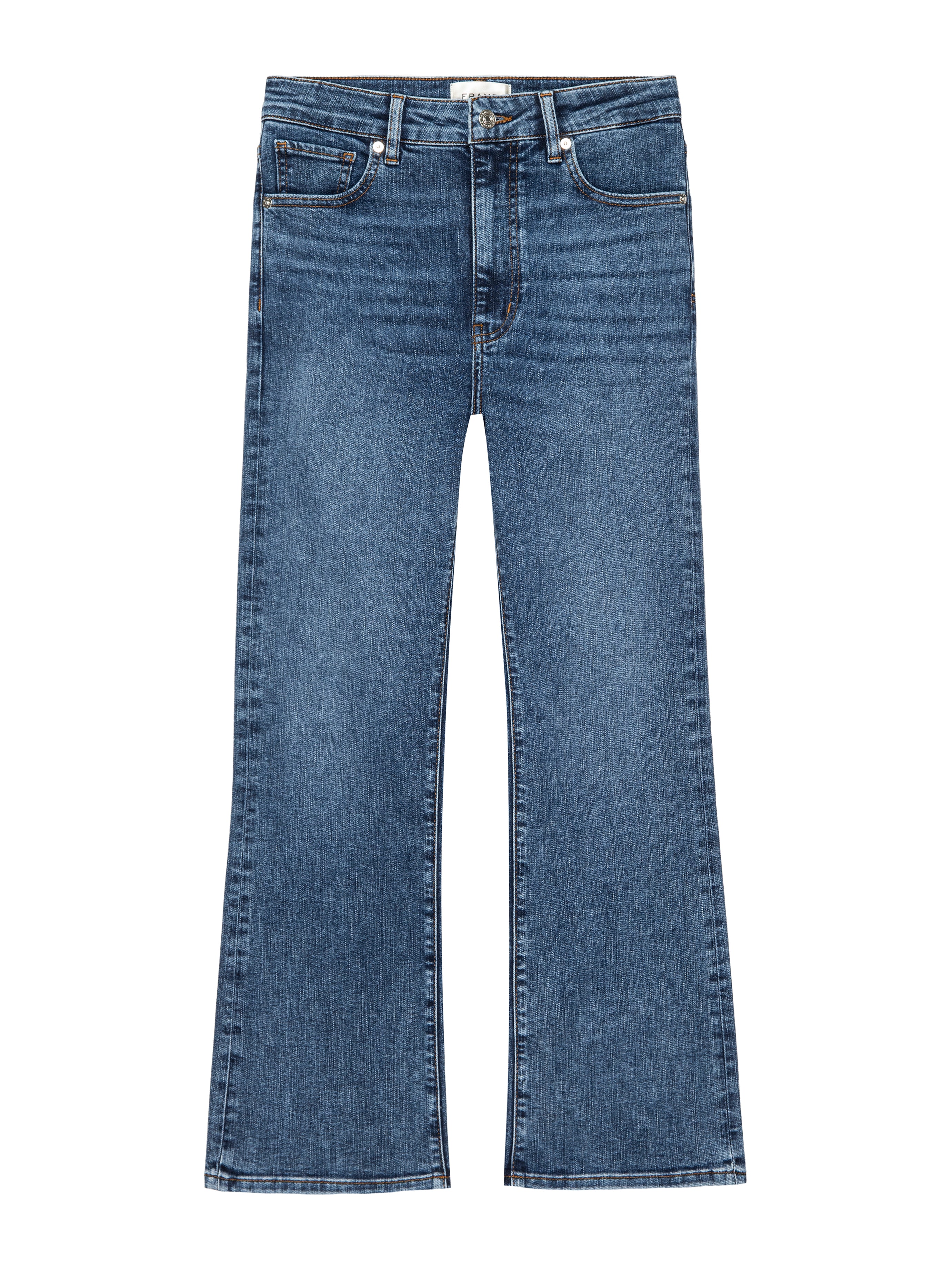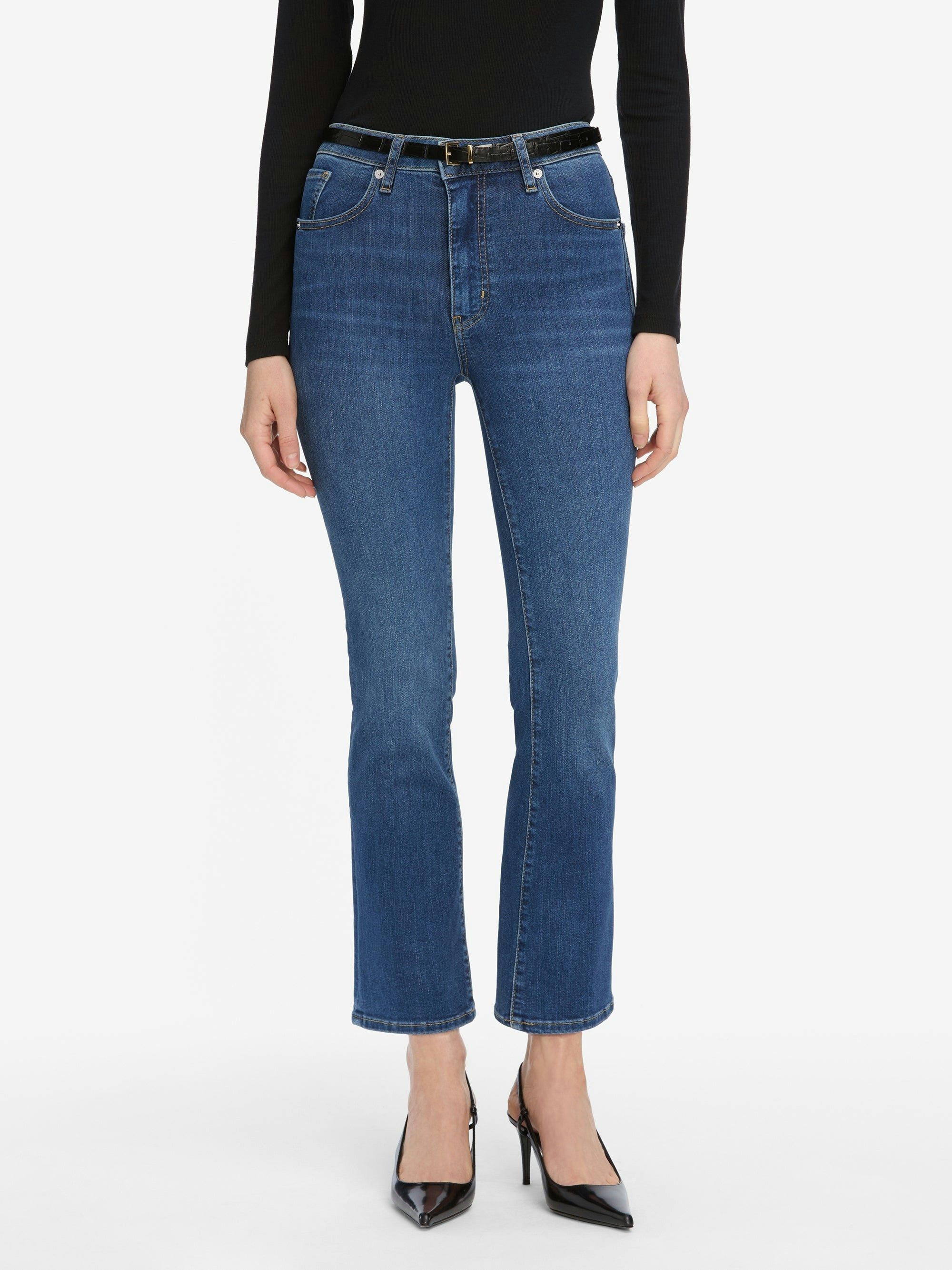 Elevate your denim collection with the Frame The Reboot Crop jeans. Featuring a high-rise fit and a flattering bootcut that ends just above the ankle, these jeans combine style and comfort effortlessly. Crafted from an ultra-stretchy cotton blend, they offer all-day flexibility and a sleek silhouette perfect for any occasion. Experience the perfect balance of modern edge and timeless comfort with these cropped super stretch denim jeans.