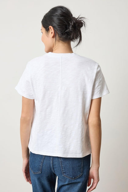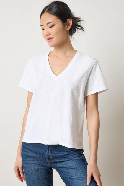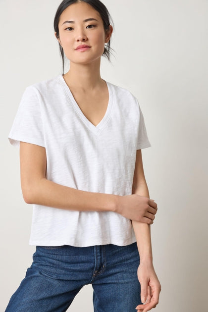 Experience effortless style with the Lilla P Boyfriend V-Neck Tee, crafted from soft 100% cotton slub fabric. Its relaxed fit features wider shoulders and a roomier body for all-day comfort, while the wider crossover trim at the neckline adds a modern, flattering detail. Perfect for those seeking a casual yet polished look, this tee combines breathable fabric with a contemporary design you'll reach for again and again.