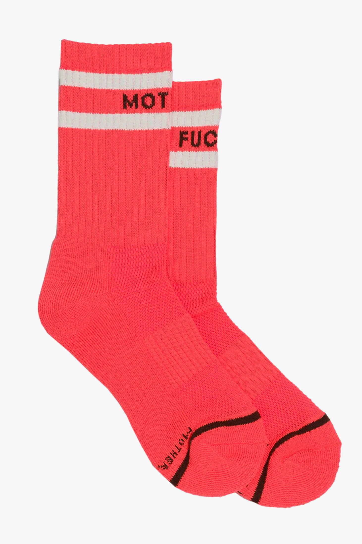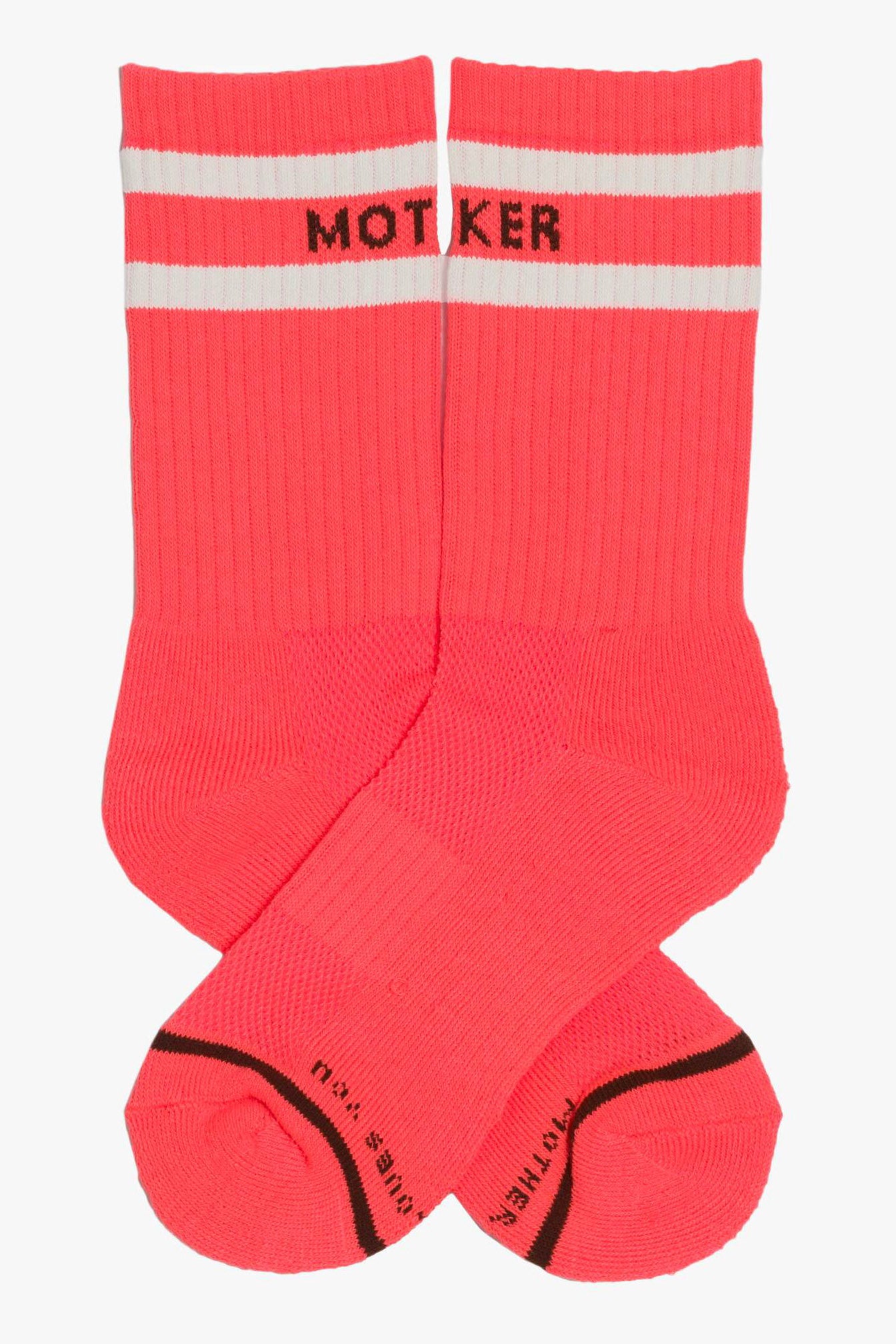Step up your sock game with the Mother Baby Steps Socks. These classic tube socks feature a striking neon pink base with bold brown lettering and cream accents, delivering a playful yet confident statement. Available also in white and black, they combine comfort and style effortlessly, making every step a reminder to move forward with attitude. Perfect for adding a pop of color and personality to your everyday look.