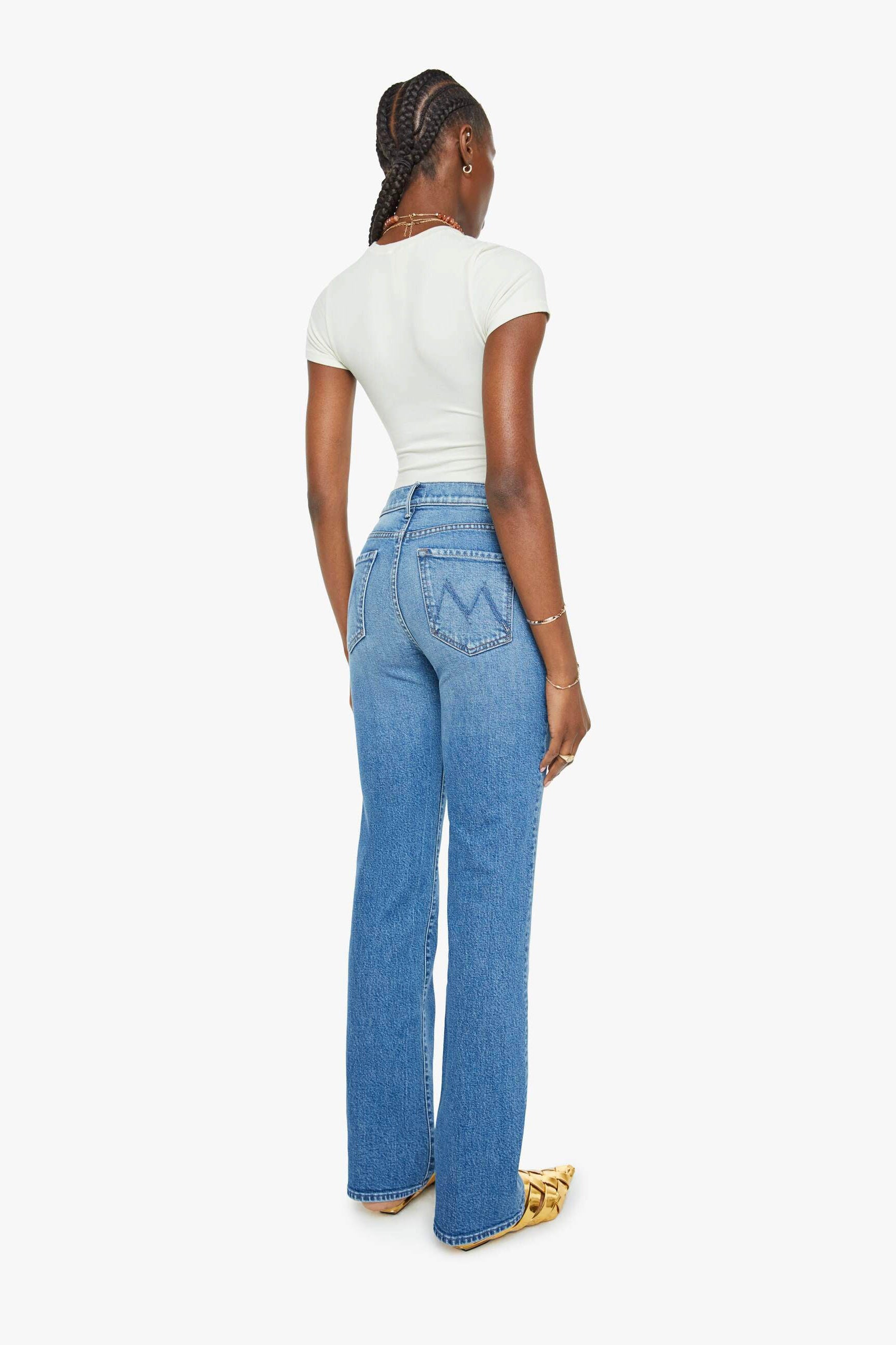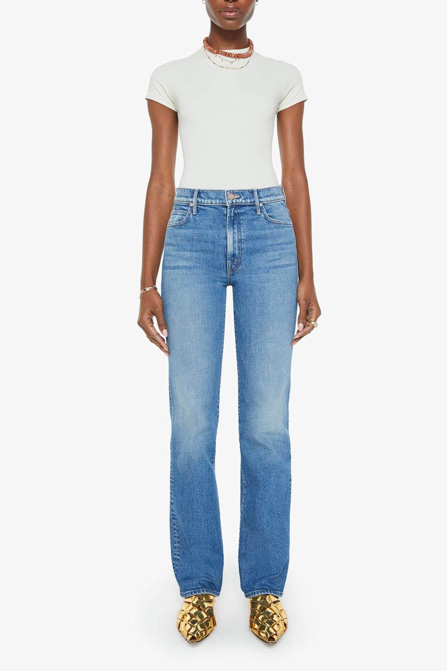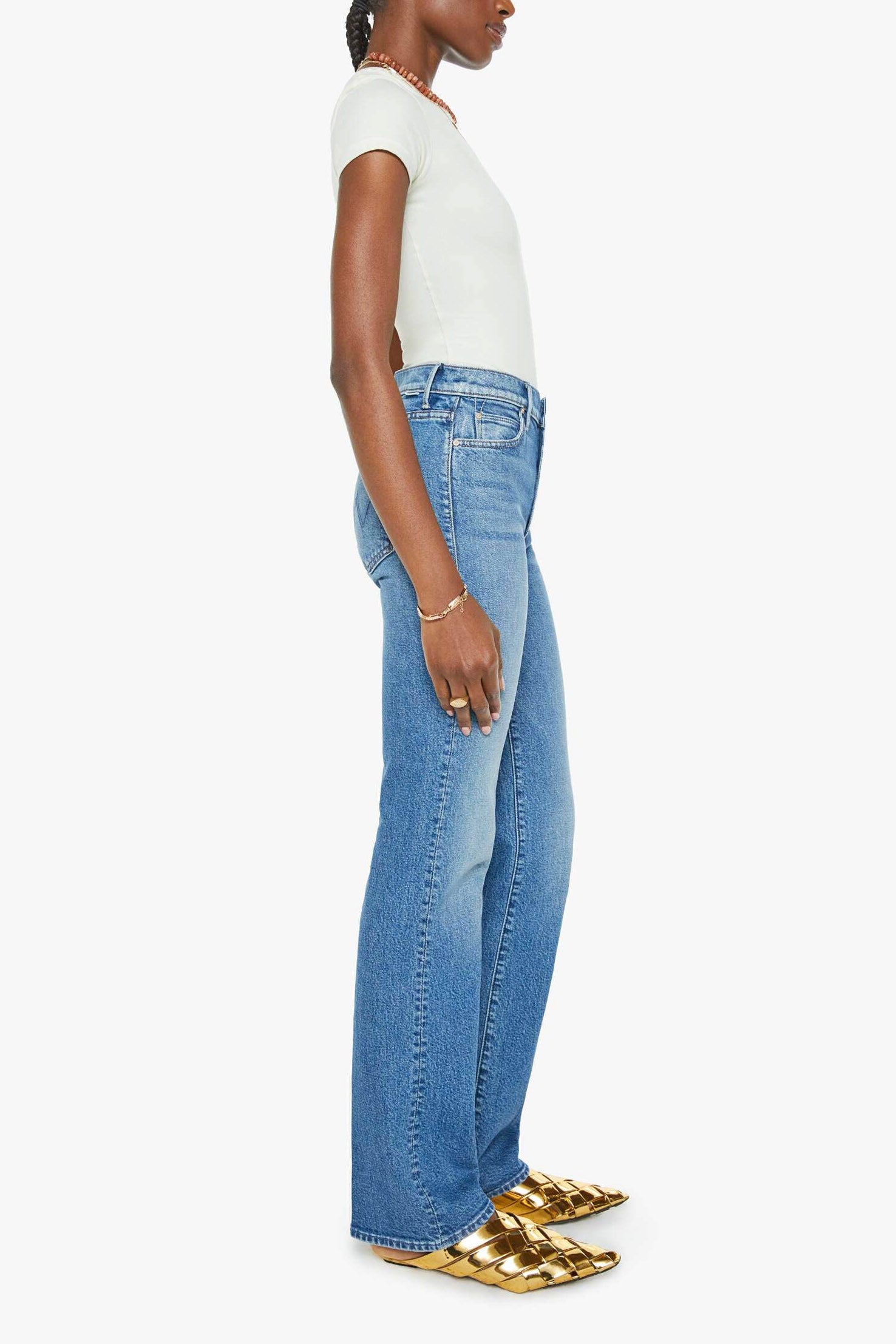 Elevate your style with the Mother Kick It Jeans in Tequila Sunrise. These high-rise straight-leg jeans feature a flattering 32-inch inseam and a clean hem for a polished look. Crafted from denim with a hint of stretch, they offer comfort and flexibility all day long. The mid-blue Tequila Sunrise wash, enhanced with subtle whiskering and fading at the knees, adds a trendy, worn-in vibe perfect for any casual or dressy occasion. Step into confidence and effortless cool with these must-have jeans.