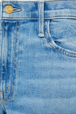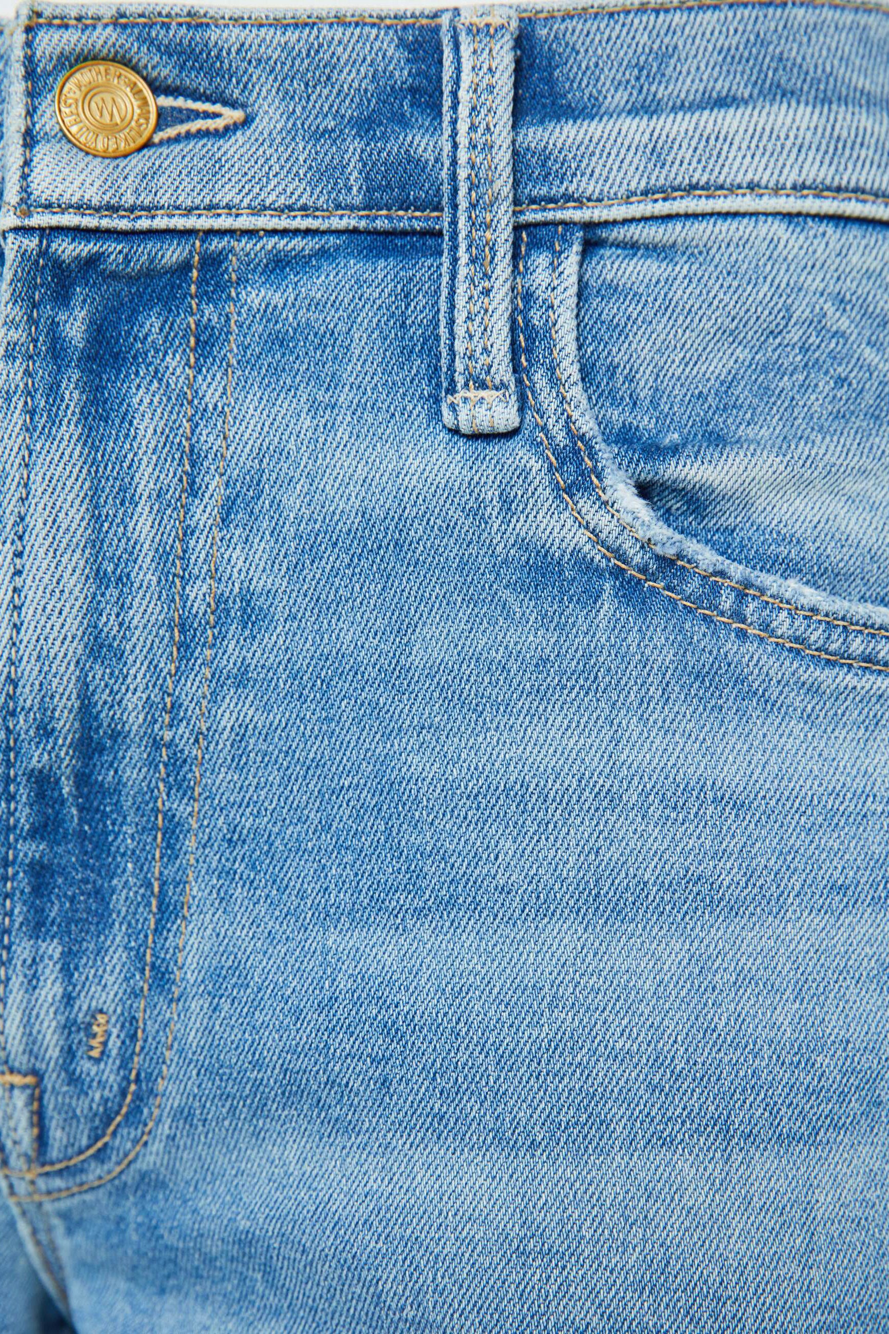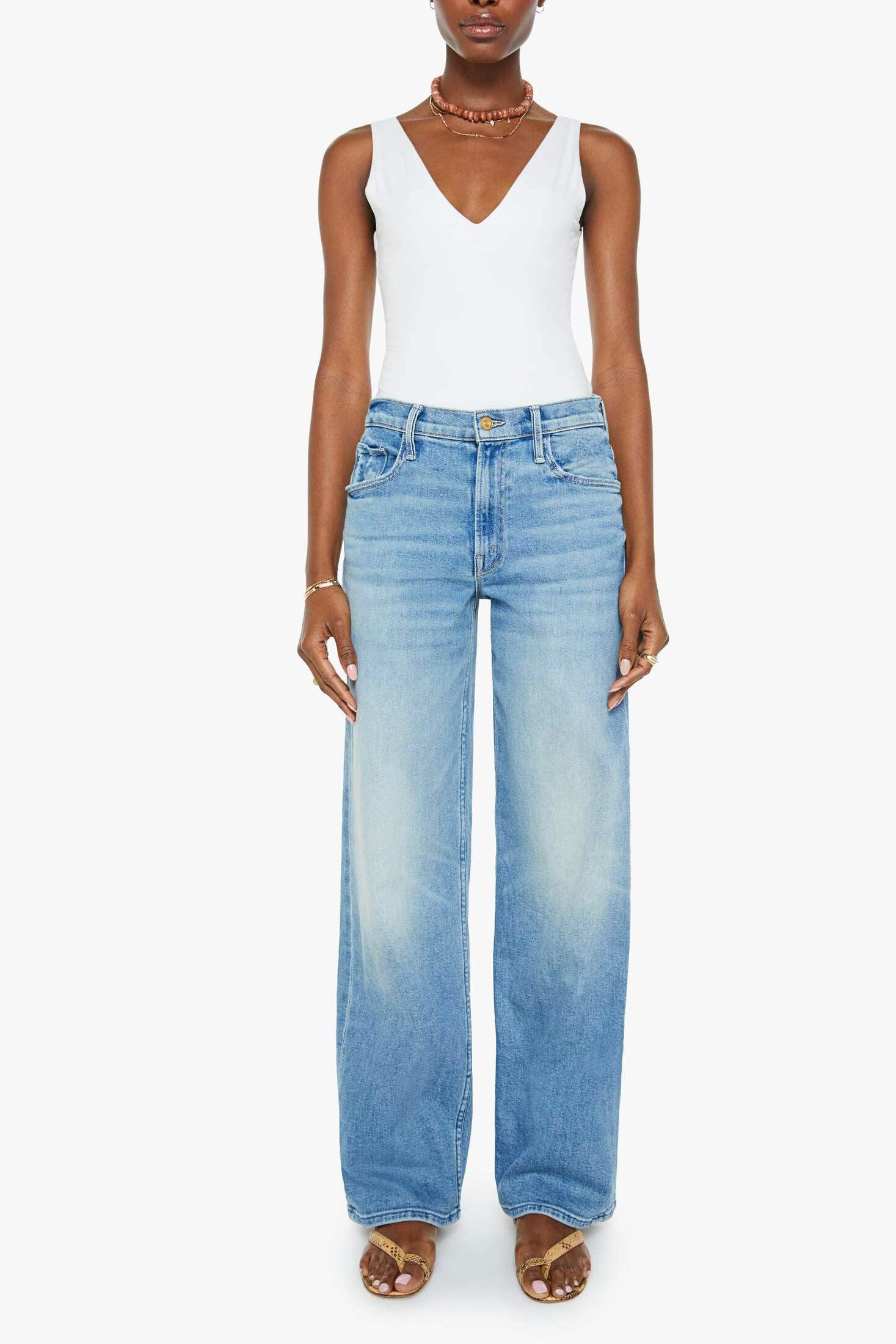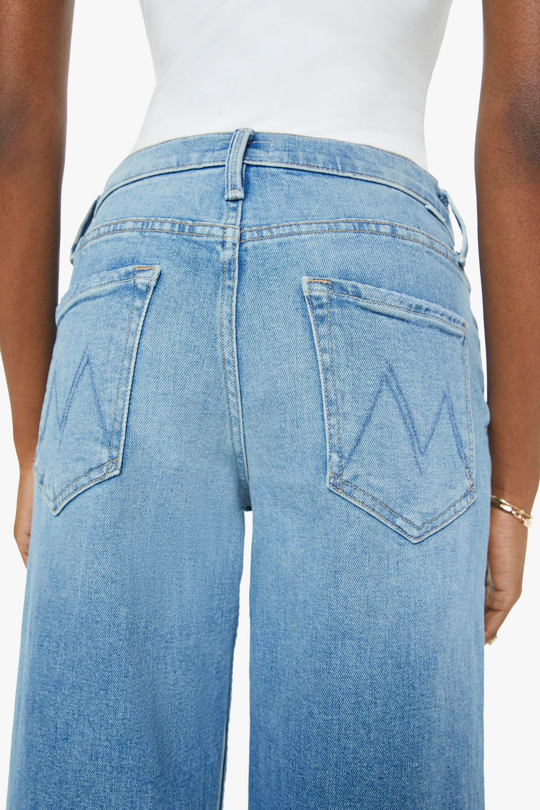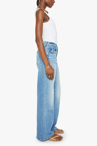 Elevate your casual wardrobe with the Mother Spinner Zip Sneak Jeans in Glow Up. These high-waisted jeans feature a relaxed, slouchy fit and a wide leg that flows effortlessly, complemented by a long 32-inch inseam with a clean hem for a polished look. Crafted from stretch denim, the light blue wash with subtle whiskering and fading adds a sun-kissed, lived-in vibe while ensuring comfort and flexibility all day long. Perfect for those who want style and ease in one flattering pair.