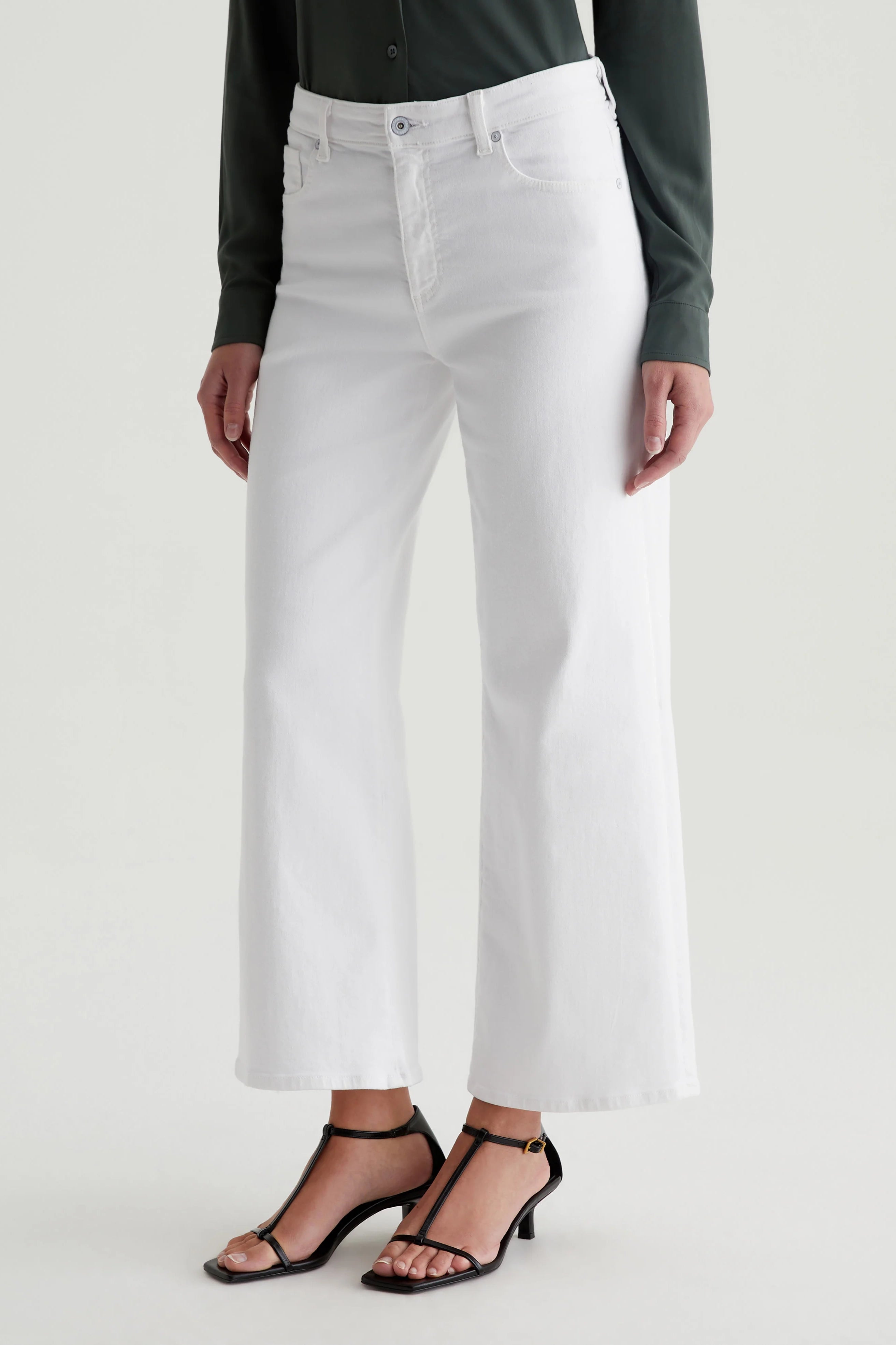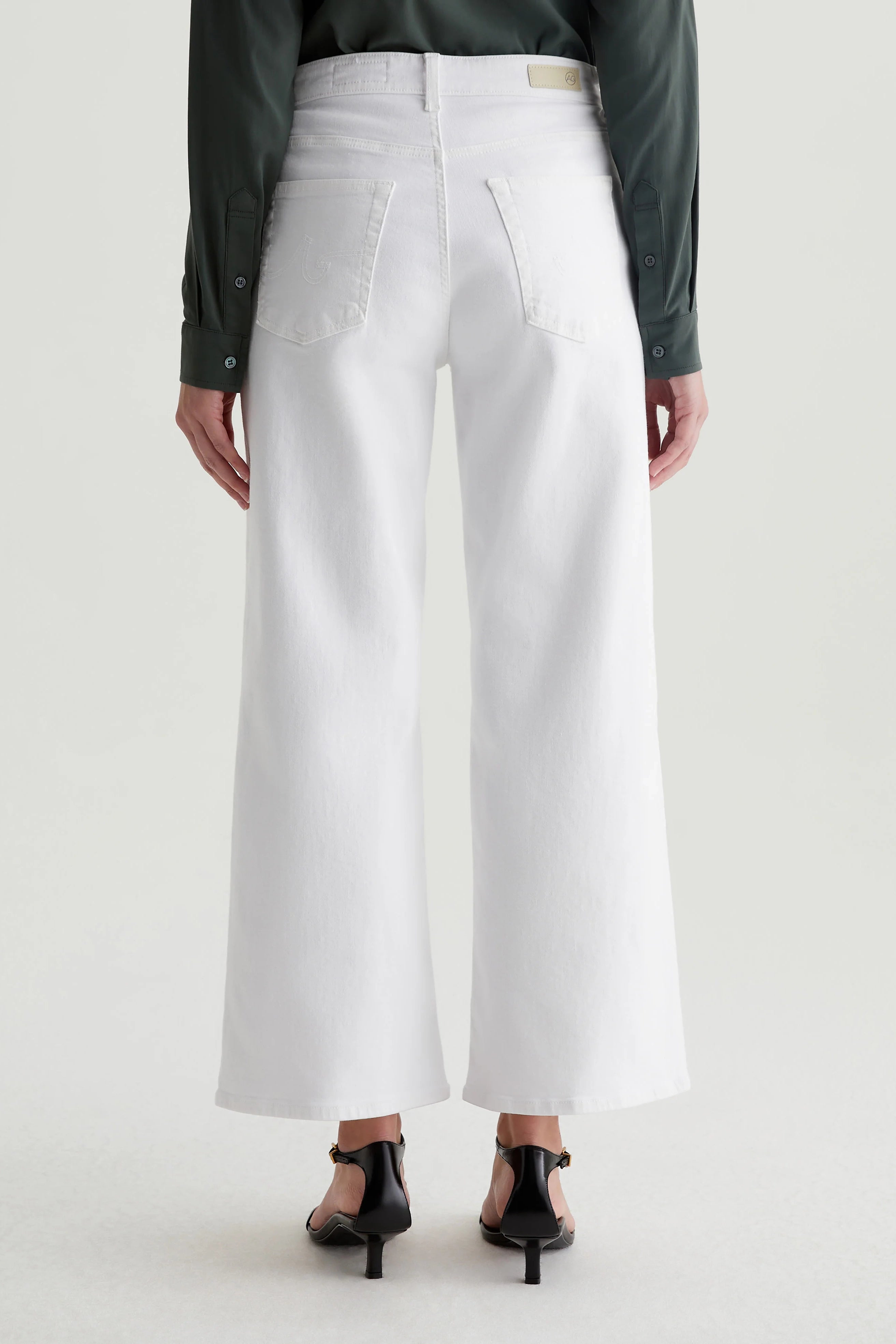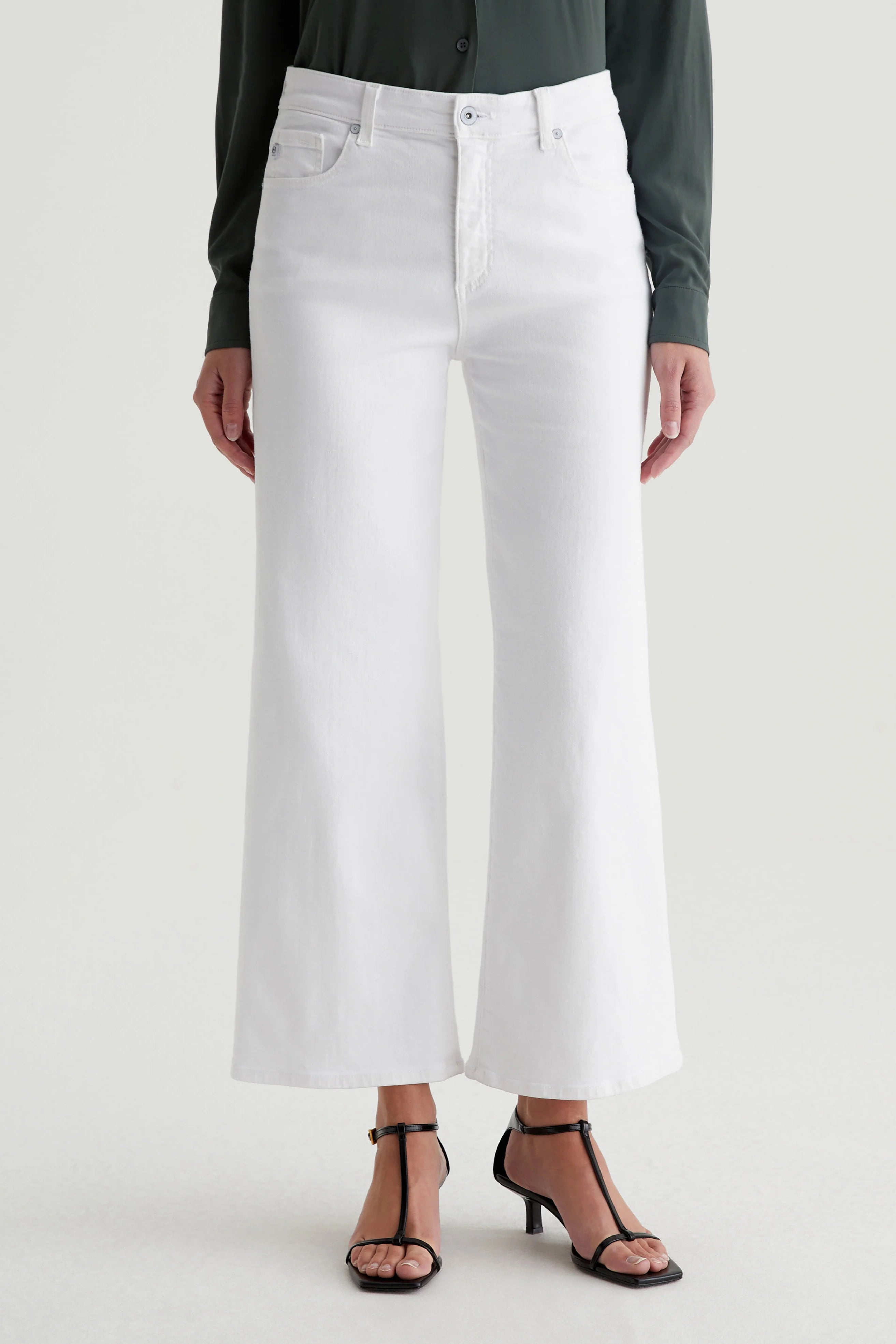 Experience ultimate comfort and style with AG Saige Wide Leg Crop Jeans. Featuring a mid-rise waist and loose, cropped legs, these white pants are made from Cloud Soft Stretch Denim for a soft, luxurious feel. Perfect for any occasion, these wide-leg pants are designed to get even softer with each wear!