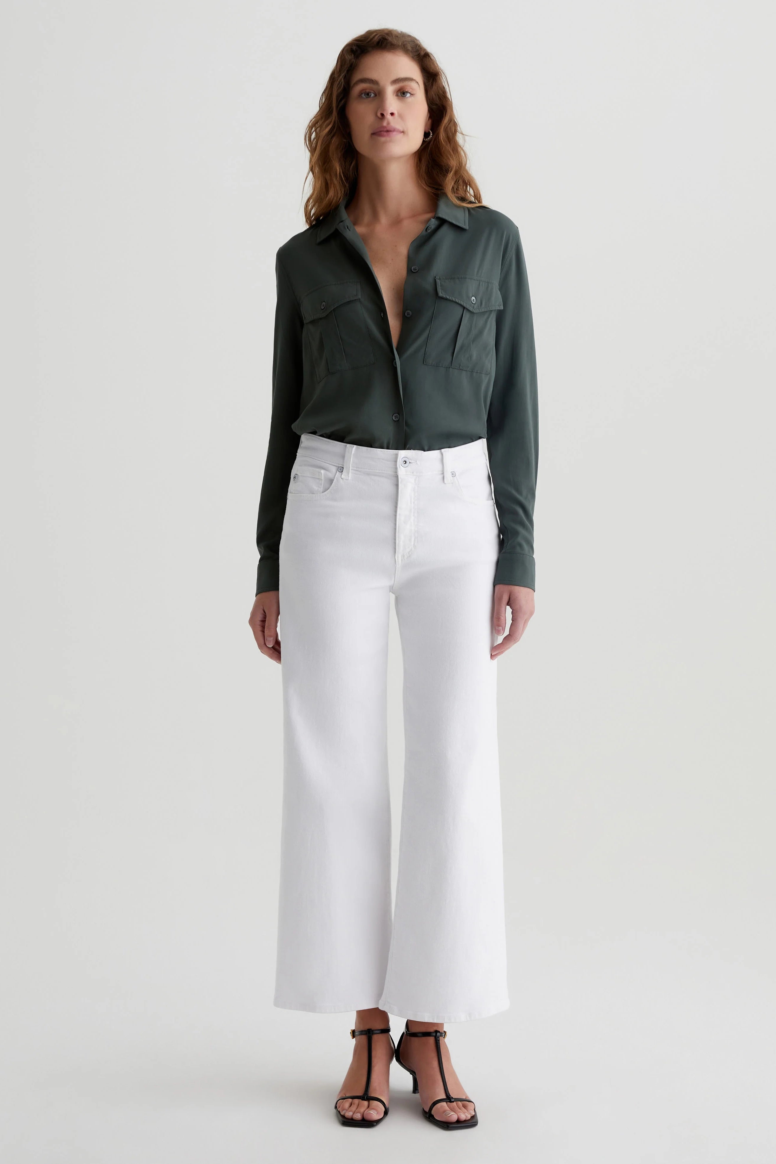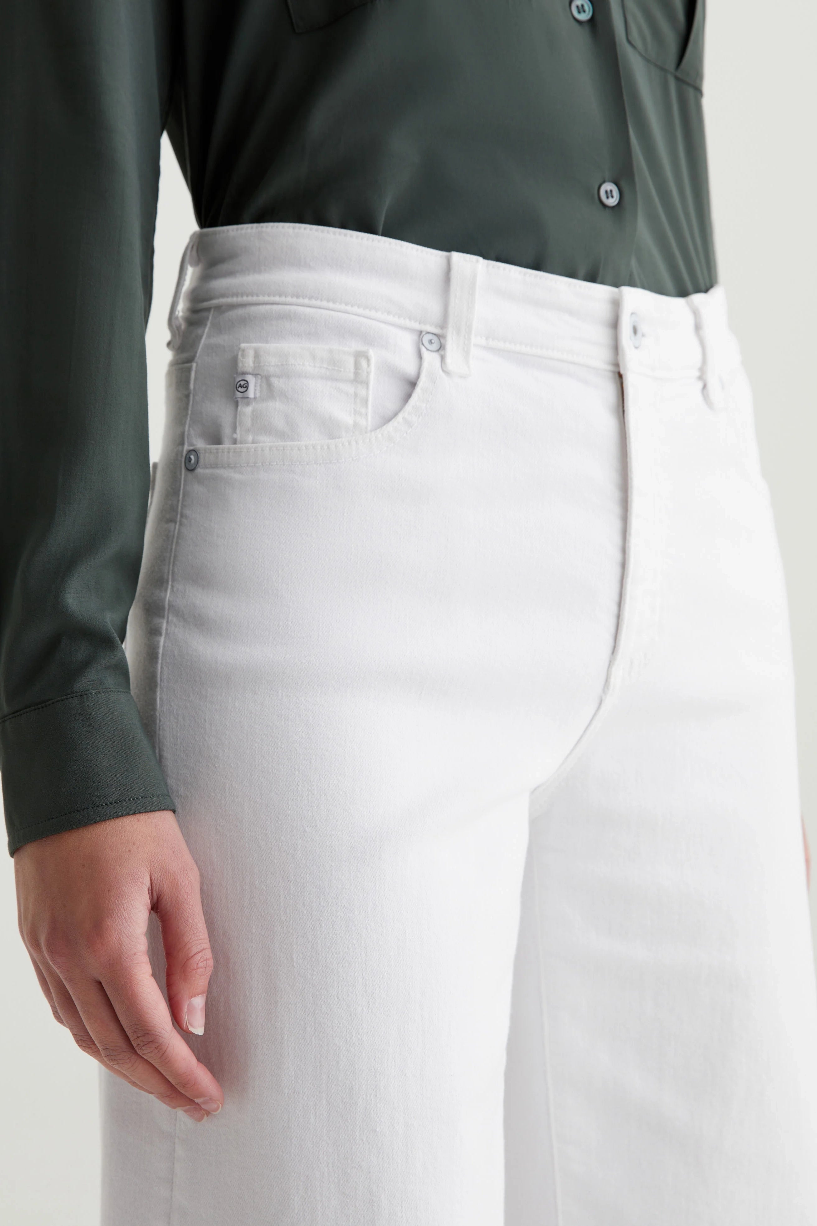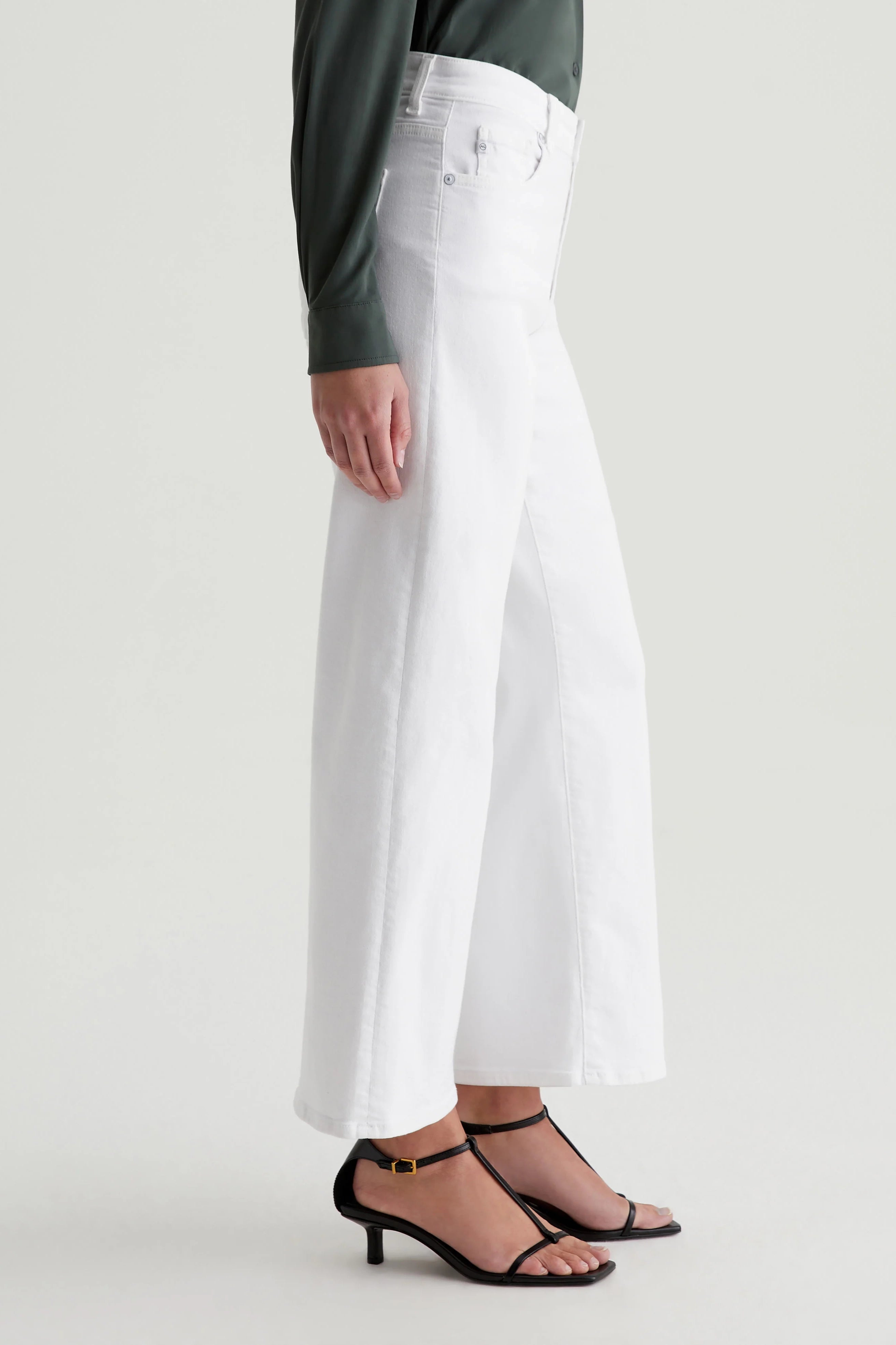Experience ultimate comfort and style with AG Saige Wide Leg Crop Jeans. Featuring a mid-rise waist and loose, cropped legs, these white pants are made from Cloud Soft Stretch Denim for a soft, luxurious feel. Perfect for any occasion, these wide-leg pants are designed to get even softer with each wear!