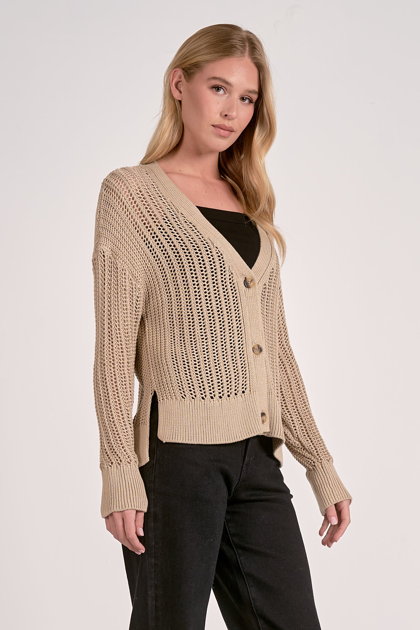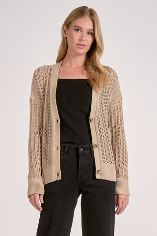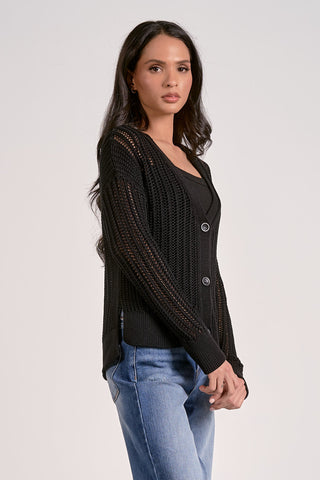 Elevate your wardrobe with the Elan Cardigan, a beautifully crafted long sleeve crochet piece designed for effortless style and comfort. Featuring a classic button-up front, this cardigan adds a delicate, textured layer perfect for transitioning between seasons. Its breathable crochet fabric keeps you cozy without overheating, making it an ideal choice for both casual outings and chic layering. Embrace timeless elegance and versatile wear with the Elan Cardigan, a must-have addition to your collection.