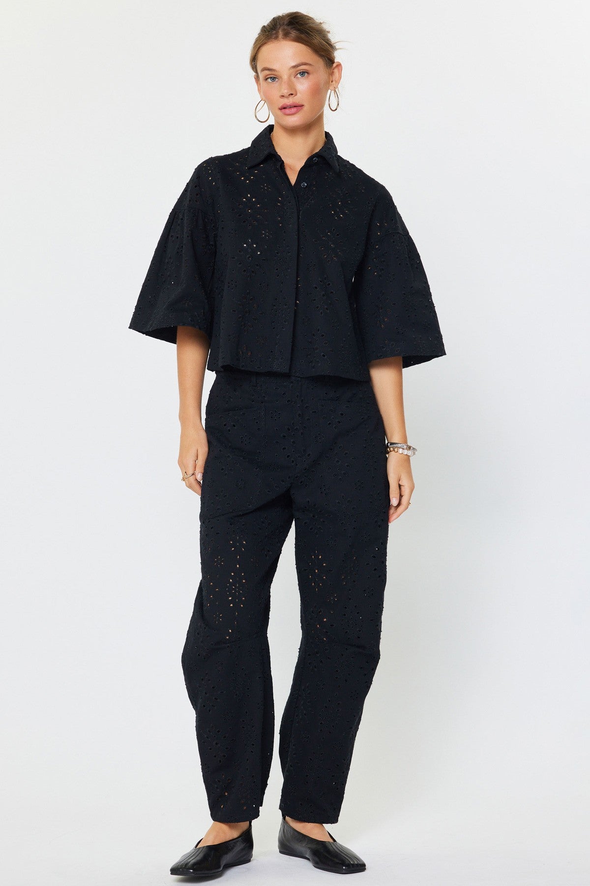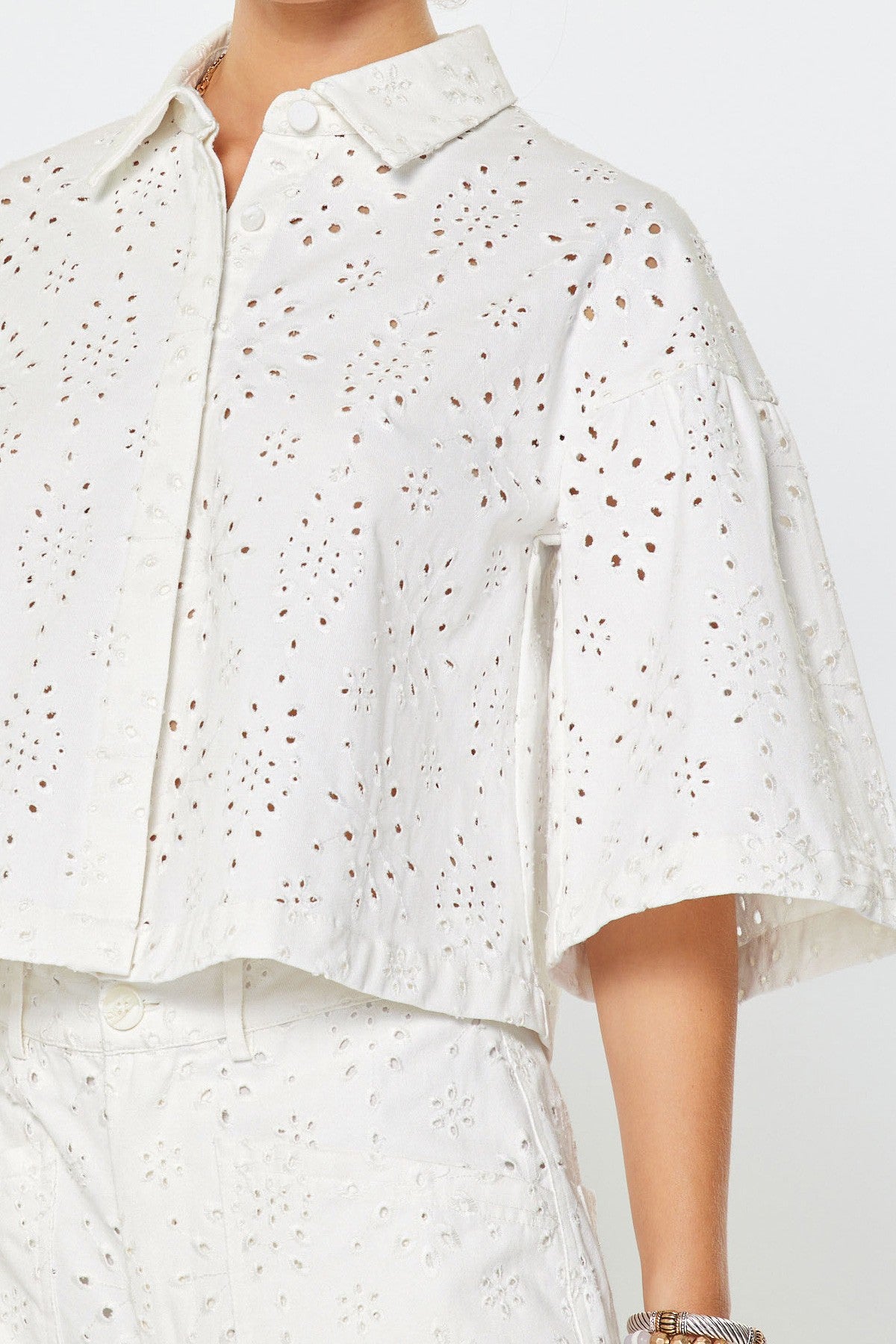Madison Eyelet Embroidered Cropped Shirt