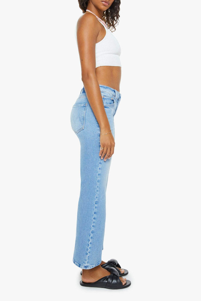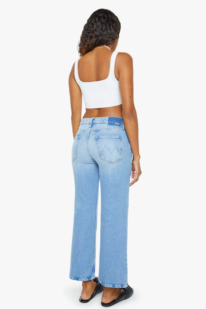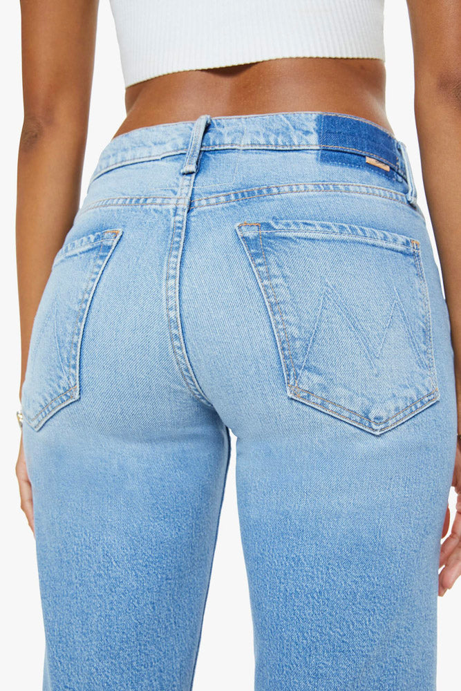 Experience the perfect blend of style and comfort with the Mother Bookie Flood Jeans. These high-rise bootcut jeans feature a relaxed leg and a versatile 28.25-inch inseam with a clean hem. Crafted from premium semi-rigid SUPERIOR denim in Sow Surreal light blue, they showcase authentic whiskering and fading for that coveted lived-in appearance. While they require a breaking-in period, your patience will be rewarded with jeans that mold perfectly to your unique shape, becoming your most treasured denim essential.