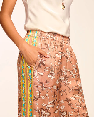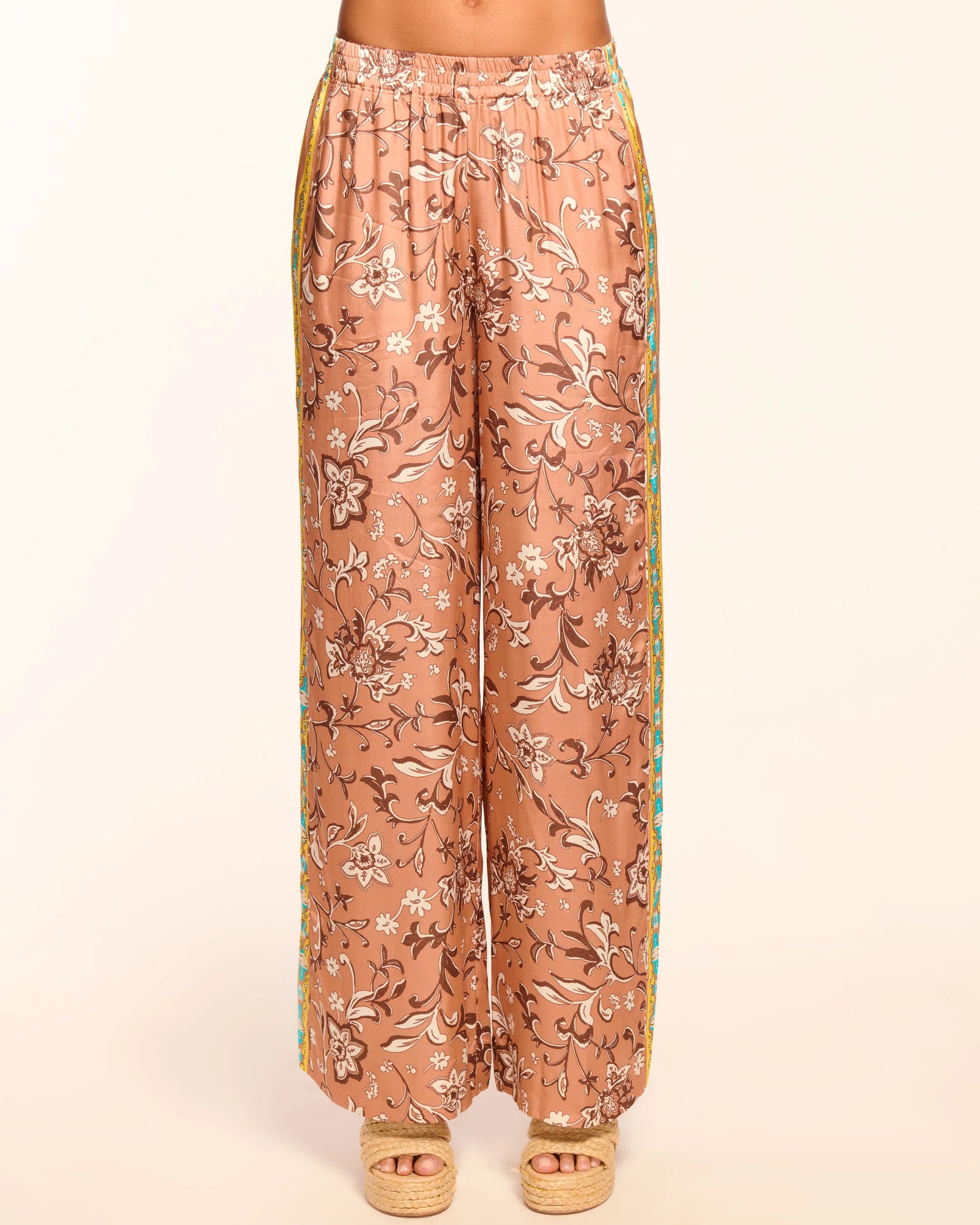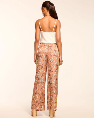 The Ramy Brook Patricia Pants combine bold jungle print with a flattering wide-leg silhouette for effortless style and comfort. Featuring a smocked elastic waist and convenient side pockets, these full-length pants offer a relaxed fit perfect for resort dinners or gallery openings. Elevate your vacation wardrobe with the striking contrast side detail that adds a touch of sophistication to your look.