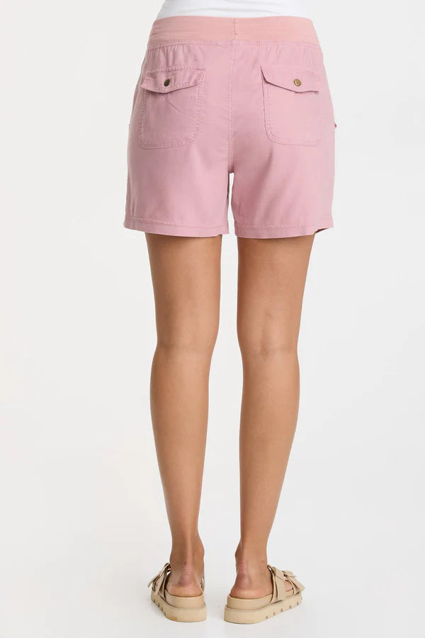 The XCVI Milton Shorts combine comfort and style with their super soft, stretchy twill fabric and slim yet flexible fit. Featuring two convenient front cargo pockets and a ribbed drawstring waistband, these preshrunk shorts are perfect for warm weather adventures. Easy to pull on and designed to move with you, they quickly become your go-to choice for casual, effortless wear.