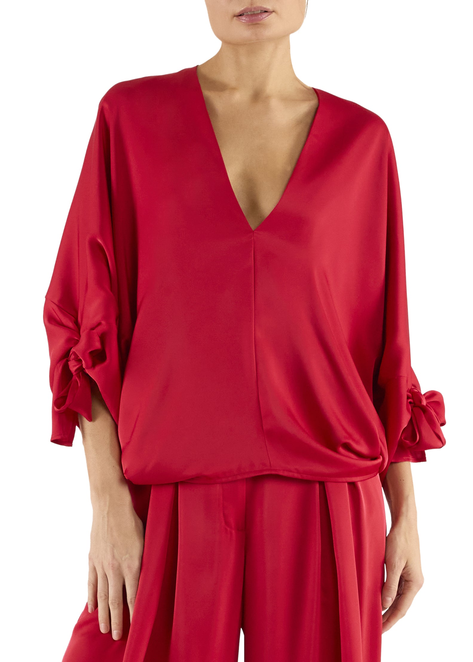 Elevate your style with the Ramy Brook Krista Satin Blouse in a stunning scarlet red. Crafted from liquid satin charmeuse, it offers a luxurious shine and a graceful drape that enhances your silhouette. This blouse channels timeless Hollywood glamour, making it the perfect choice for date nights and special occasions when you want to exude effortless elegance.