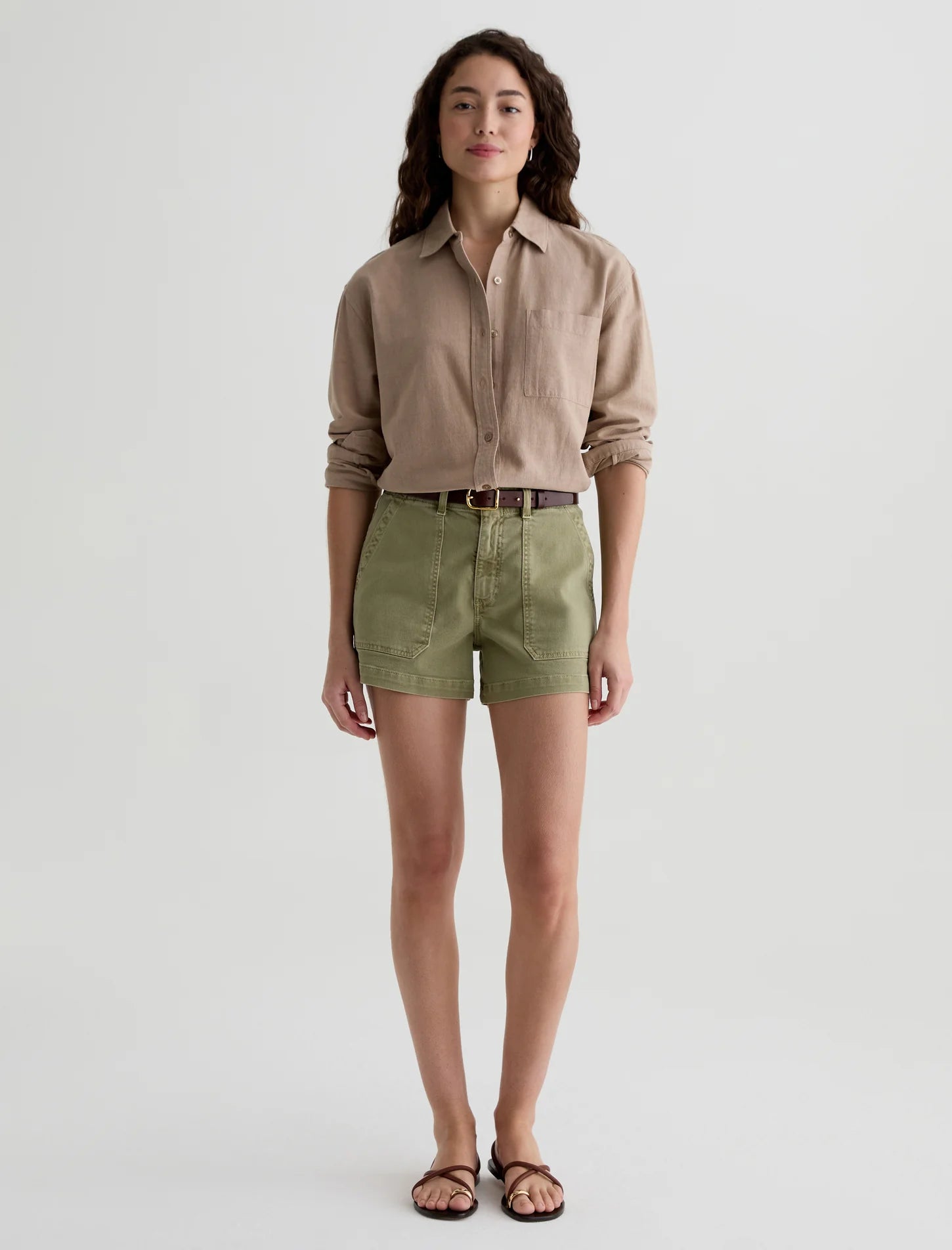 Elevate your summer style with the AG Jeans Analeigh Denim Shorts! Made with comfort stretch denim for flexibility and all-day wear, these high-rise shorts feature workwear-inspired pockets for a utilitarian touch. Available in a light blue wash, these shorts are perfect for any warm weather occasion.