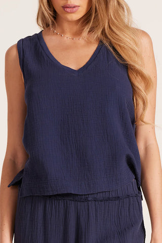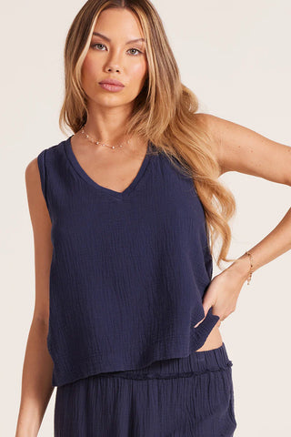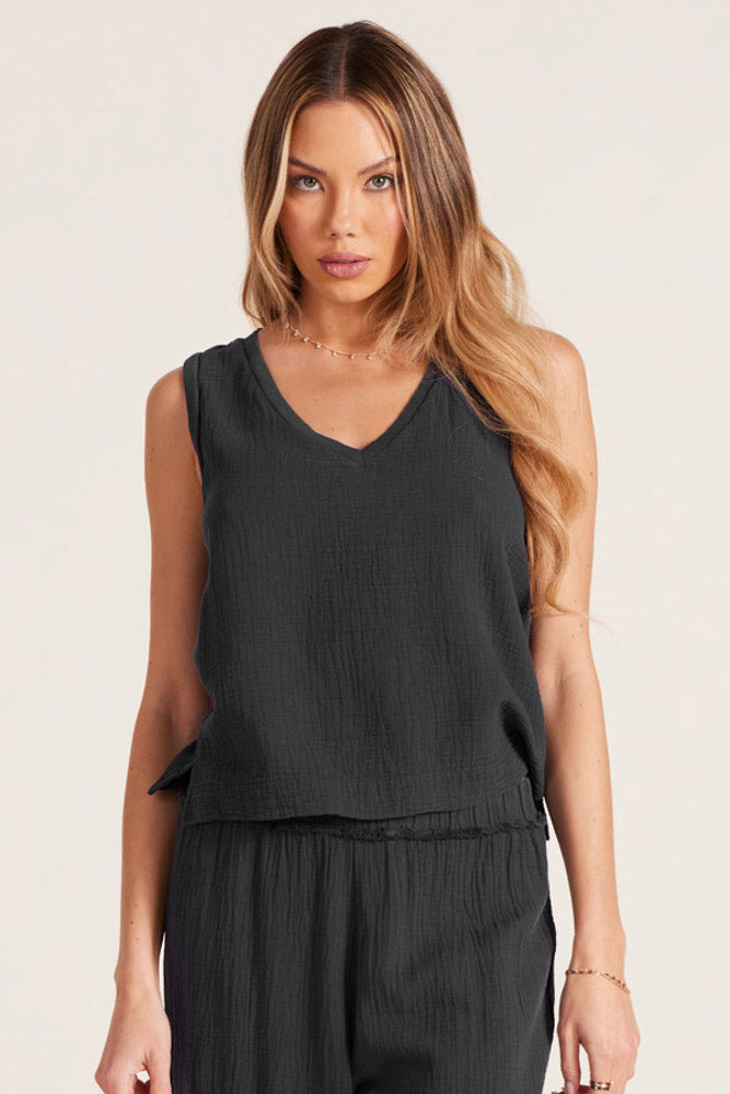This isn't just another tank top—it's your new go-to piece for every warm-weather occasion. Crafted from 100% cotton beach gauze, this V-neck tank delivers the perfect balance of lightweight comfort and subtle sophistication.
