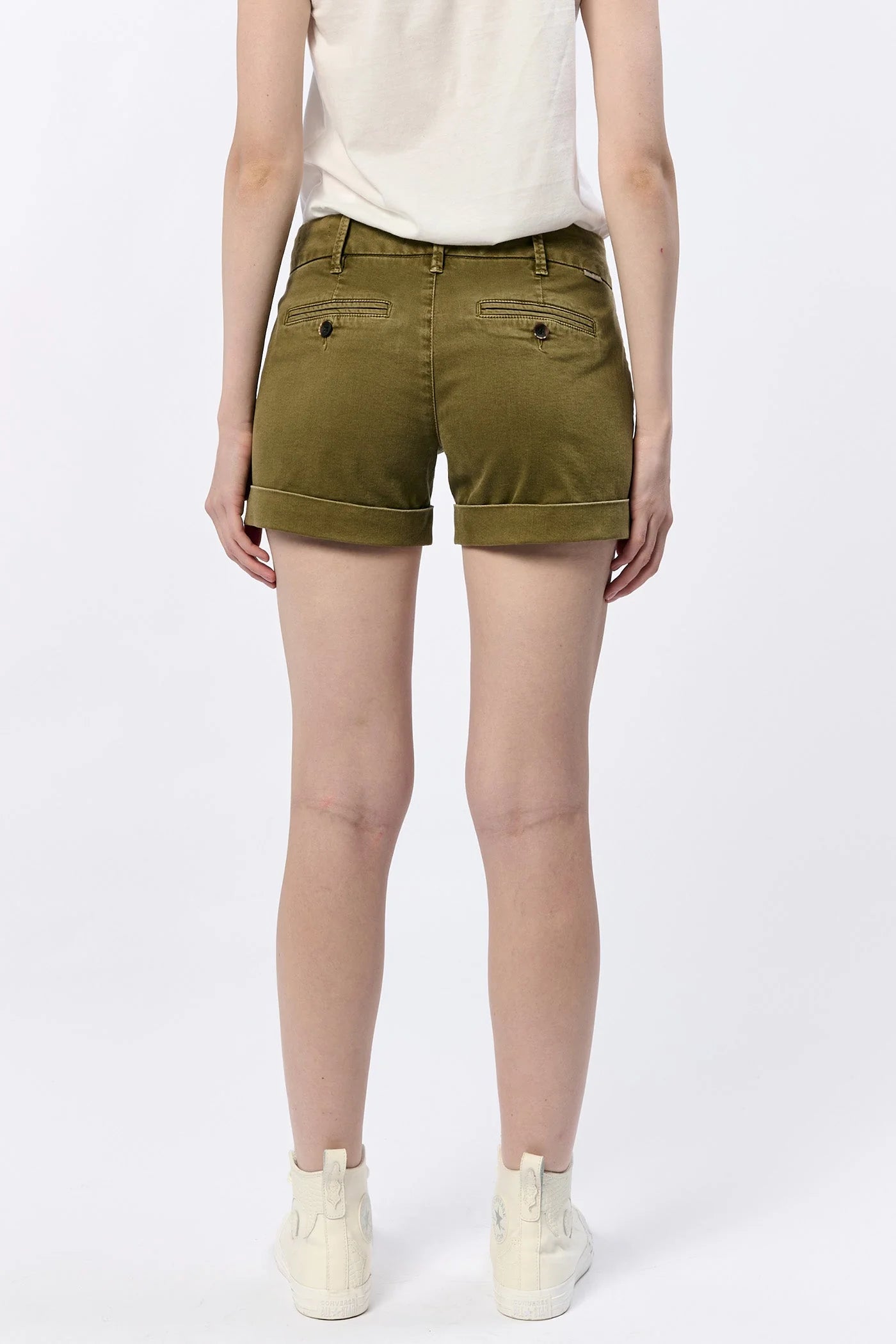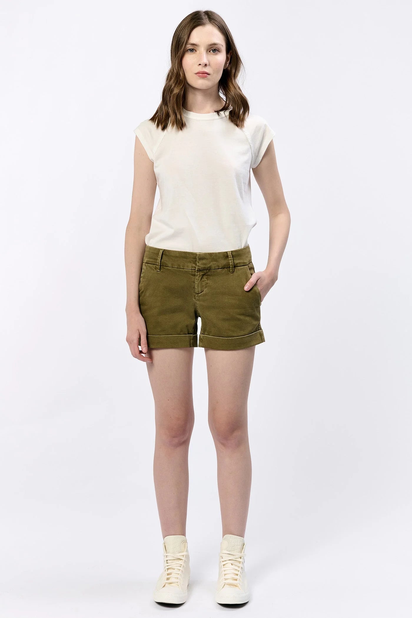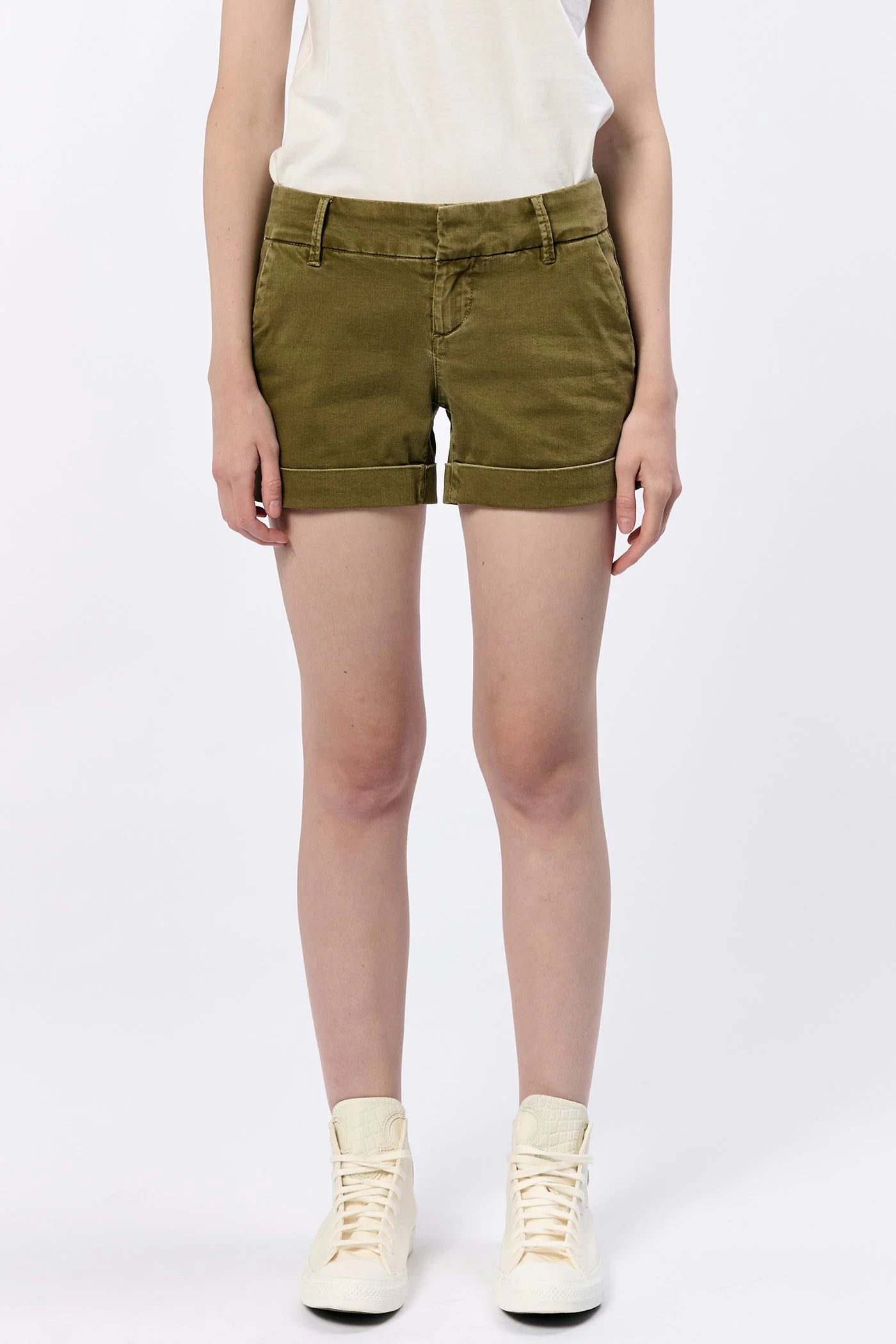Get ready to elevate your summer style with these mid rise shorts! Not only do they provide the perfect balance of comfort and style, they also feature a luxurious fit that sits slightly lower on the waist and offers a relaxed hip and thigh. The stretch twill fabric and designer color palettes add another level of sophistication, while the washed and brushed finish and cuffed hem add a touch of softness and charm. Don't miss out on these must-have shorts!