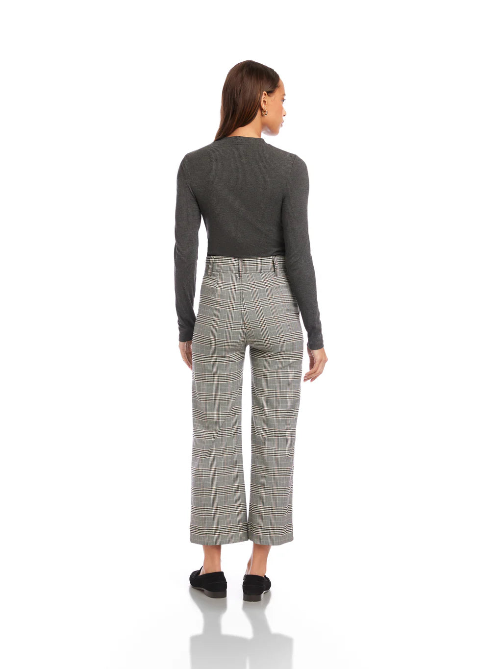 These Fifteen Twenty Rylee Crop Pants combine comfort and style with their stretch plaid woven fabric and flattering high-rise fit. Designed with belt loops, a button-zipper closure, and functional front pockets, they offer polished ease whether you're at work or out for the weekend. The wide-leg silhouette crops just above the ankle, balancing a relaxed leg with a fitted waist and hips for a flattering, confident look.