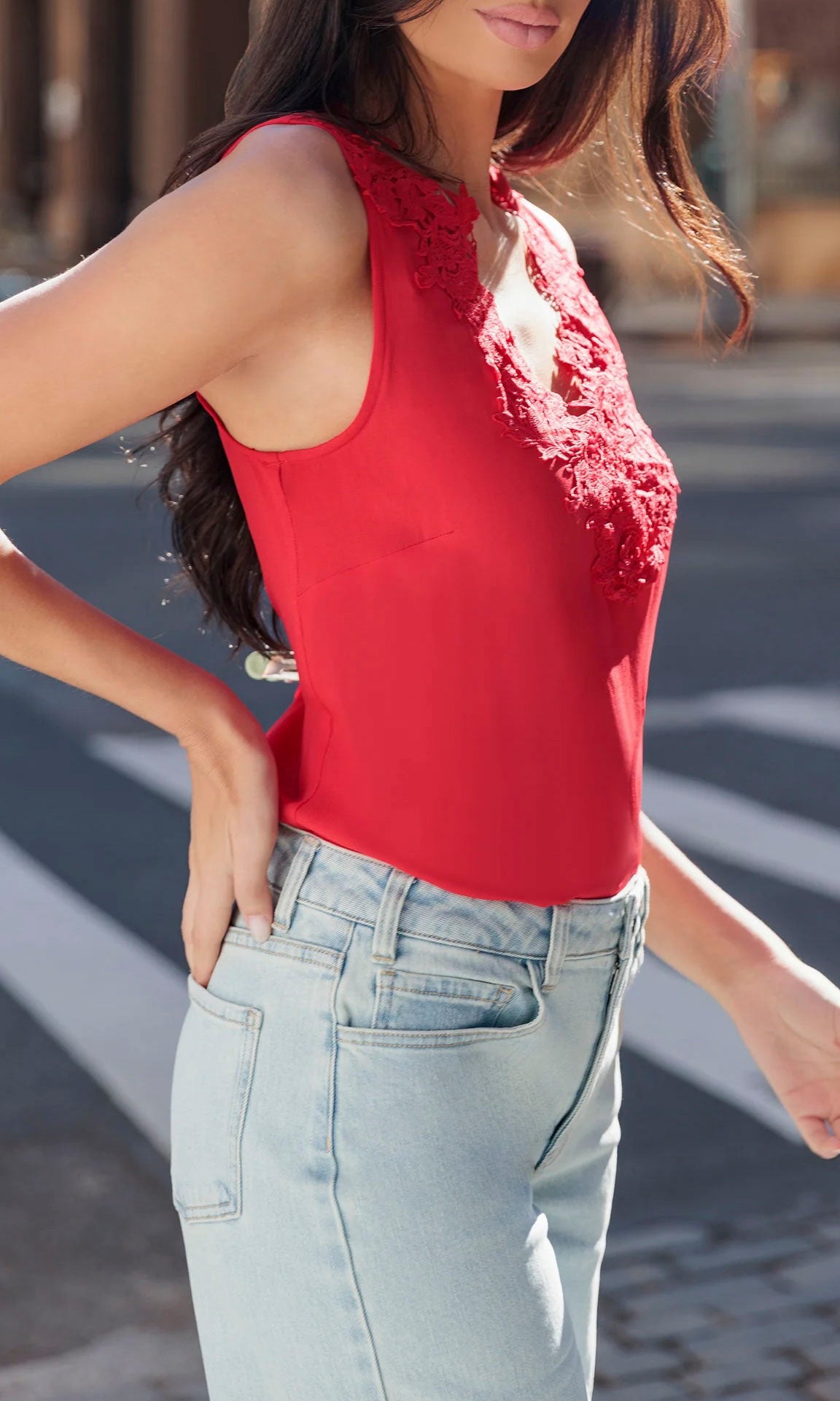 Elevate your everyday wardrobe with the Generation Love Adiha Lace Combo Tank Top—where romantic details meet modern versatility. Featuring delicate floral lace trim at the neckline, this piece strikes the perfect balance between feminine charm and contemporary edge. The straight, relaxed silhouette flatters effortlessly and transitions seamlessly from casual to dressed-up occasions. Rich cherry tones add an unexpected color statement that feels both playful and refined. Whether layered under a blazer or worn solo, this tank delivers the sophisticated ease every wardrobe needs.