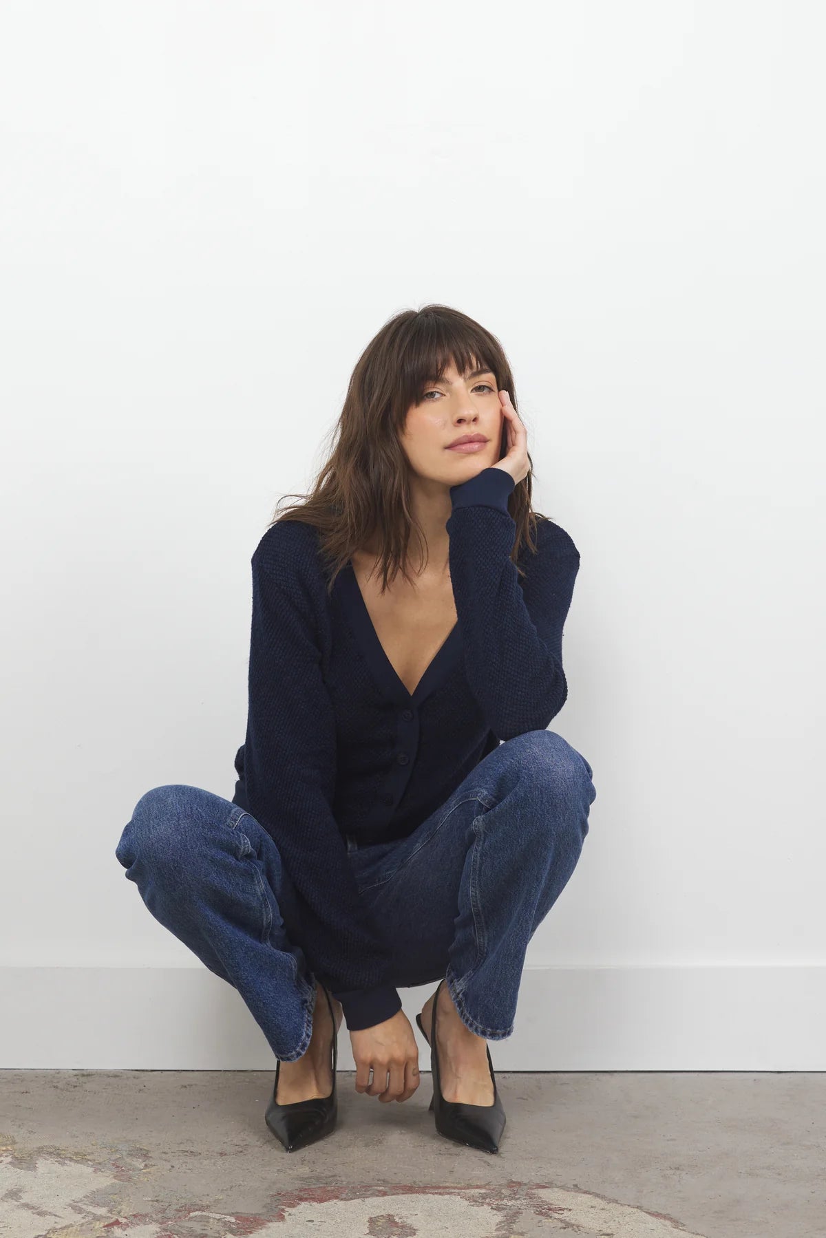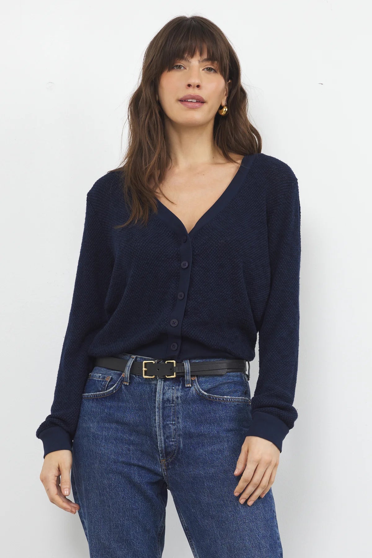 Elevate your fall wardrobe with the LA Made Edith Sweater Cardigan. Its cropped length and classic fit highlight a sophisticated yet effortlessly sexy silhouette. Vintage-inspired buttons add timeless charm, while the perfect v-neck frames your neckline beautifully. Edith is the go-to cardigan for those who want style and elegance combined in one chic piece.