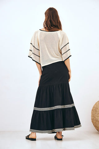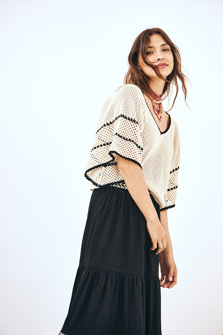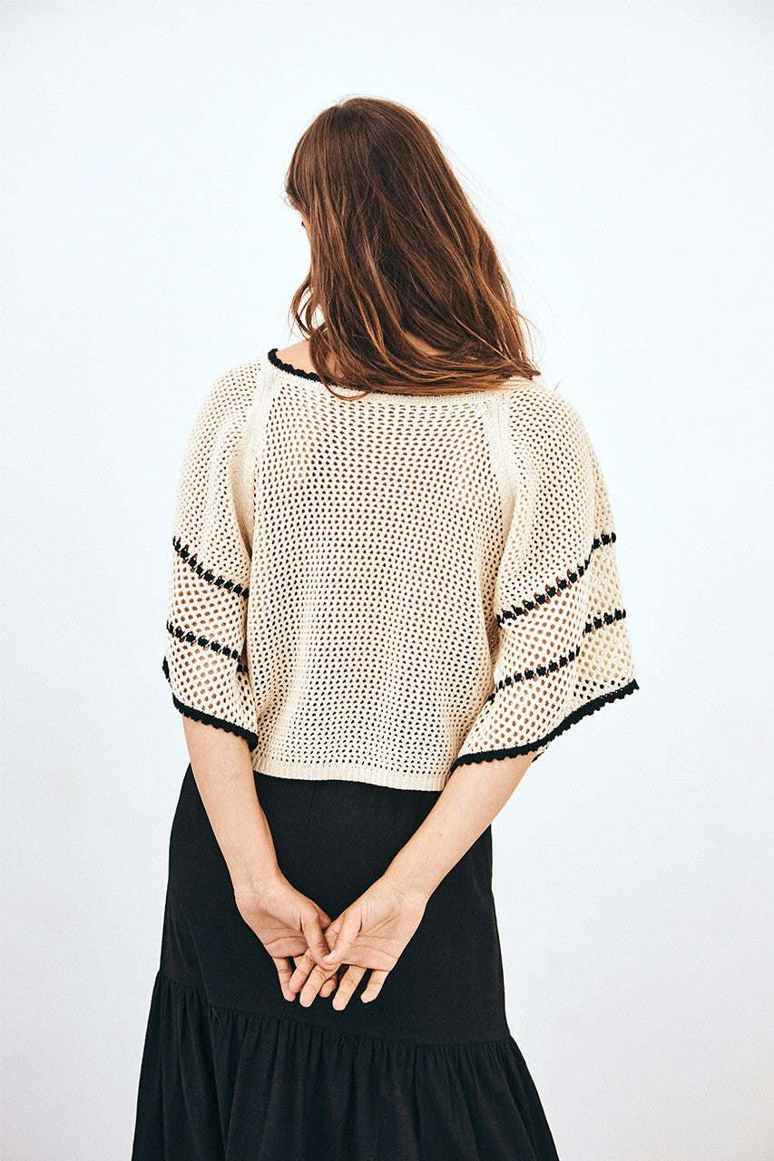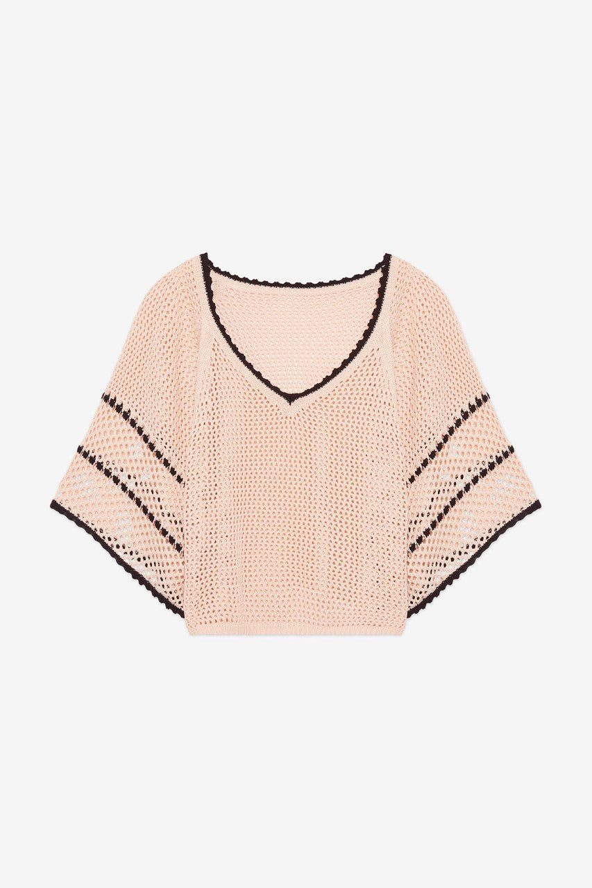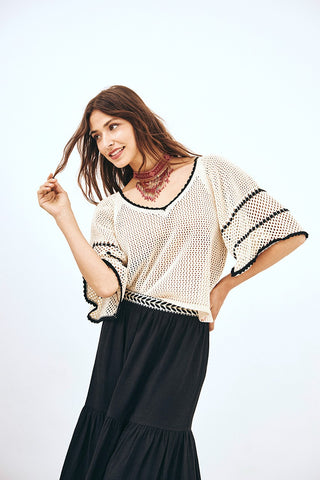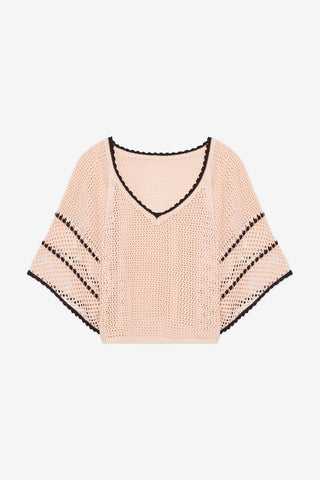 Upgrade your sweater game with the NKN Kerala Oversize Short Sleeve Sweater. Embrace the open-knit design and wide short sleeves for a bold and modern look. The V-neckline and contrast-color ribbon detail add a touch of chic to this must-have piece. Perfect for adding a trendy twist to your wardrobe.