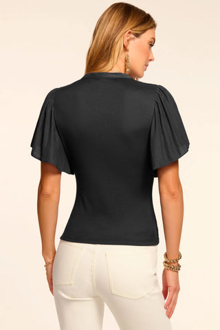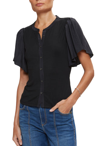 Experience effortless style and versatility with the Ramy Brook Colette Ribbed Combo Top. Its ribbed knit bodice and delicate flutter sleeves strike the perfect balance of fitted and flowy. With a button-down silhouette, this top can take you from workdays to casual evenings out. Elevate your wardrobe now!