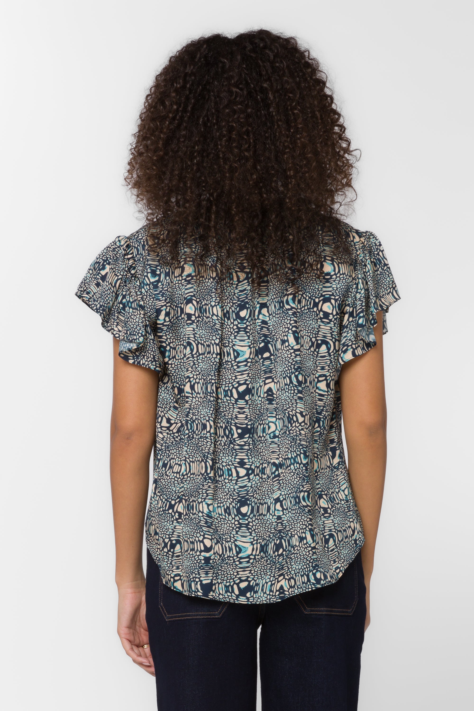 The Velvet Heart Sahara Blouse features delicate short flutter sleeves and a charming tie neck detail, offering a feminine and elegant look. Its lightweight design ensures comfort while adding a stylish touch to any outfit, perfect for both casual and dressy occasions. Elevate your wardrobe with this effortlessly chic blouse.
