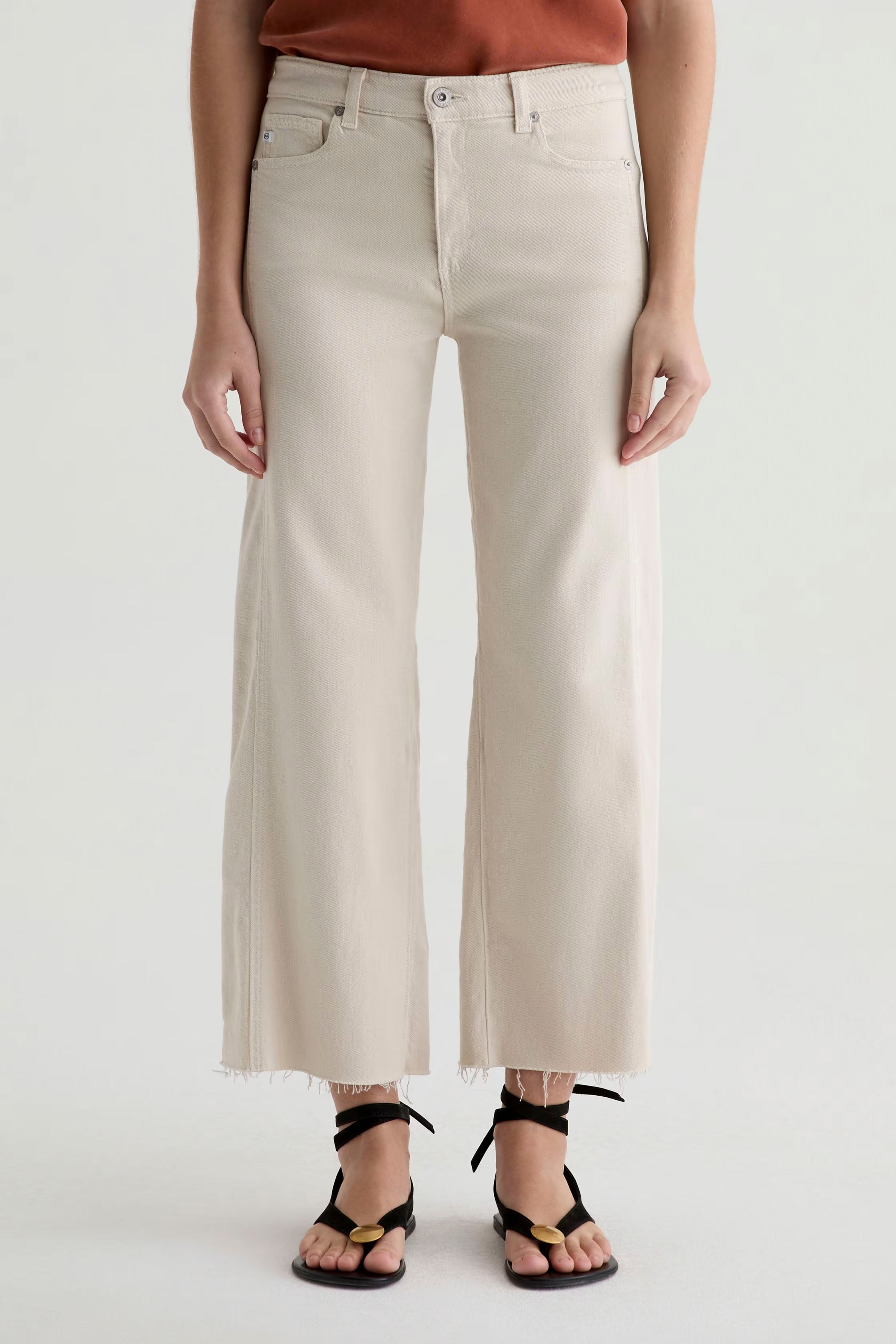 Experience effortless style and comfort with the AG Saige Wide Leg Crop Jeans. Crafted from 10 oz. Daytripper Raw Stretch Denim in a crisp white wash, these mid-rise jeans offer a flattering 27” inseam and a modern paneled design. The wide-leg cut combined with raw hems gives a fresh, contemporary edge, while the comfortable stretch fabric ensures all-day ease. Perfect for elevating your casual wardrobe with a blend of trend-forward detail and wearable comfort.
