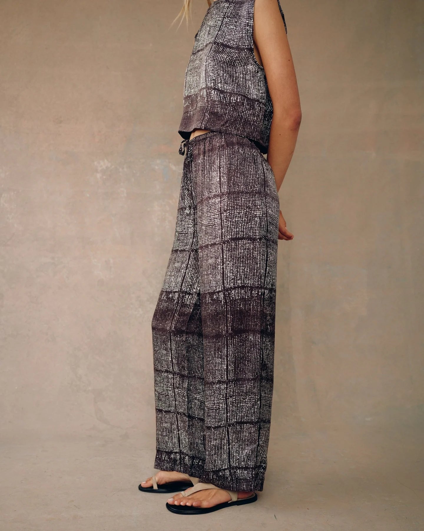 Experience effortless style and comfort with the Bella Dahl Asilah Wide Leg Pants. Featuring a relaxed wide-leg silhouette and an adjustable drawcord waistband, these pants offer a perfect fit for all-day wear. Crafted from a luxurious silk and rayon blend, they provide a soft, breathable feel that moves with you. Inspired by the vibrant culture of Asilah, the unique texture print adds a touch of global adventure to your wardrobe. Ideal for those seeking both elegance and ease in their everyday look.