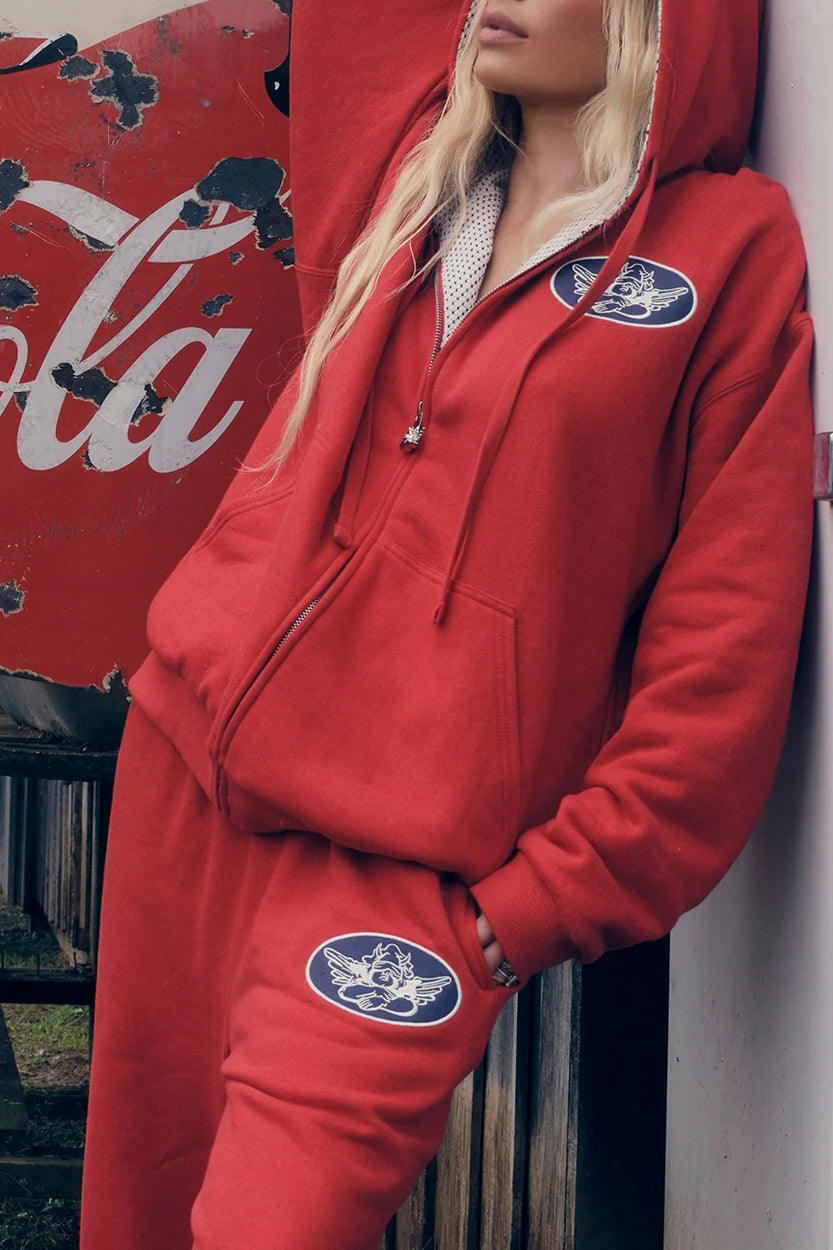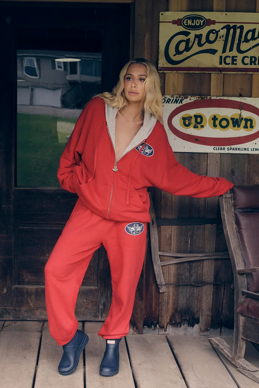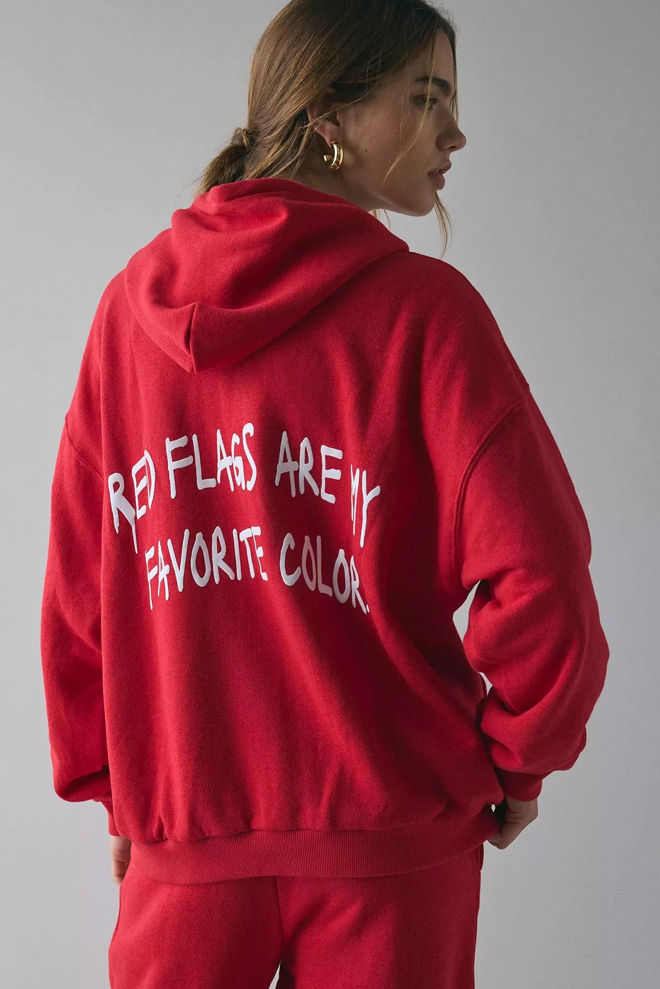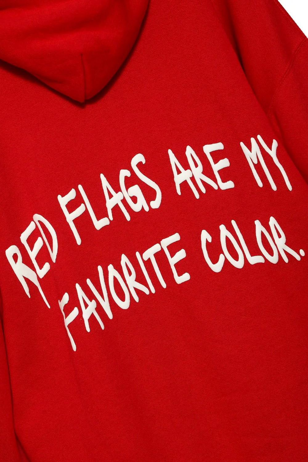 Make a bold statement in the Boys Lie Red Flags Harley Zip Up Hoodie, featuring the striking phrase "Red Flags Are My Favorite Color" printed across the back. Designed with soft, cozy fabric and a relaxed fit, this vibrant red hoodie offers both comfort and style. Perfect for everyday wear, it pairs effortlessly with matching Kimmy sweatpants to complete your standout look.