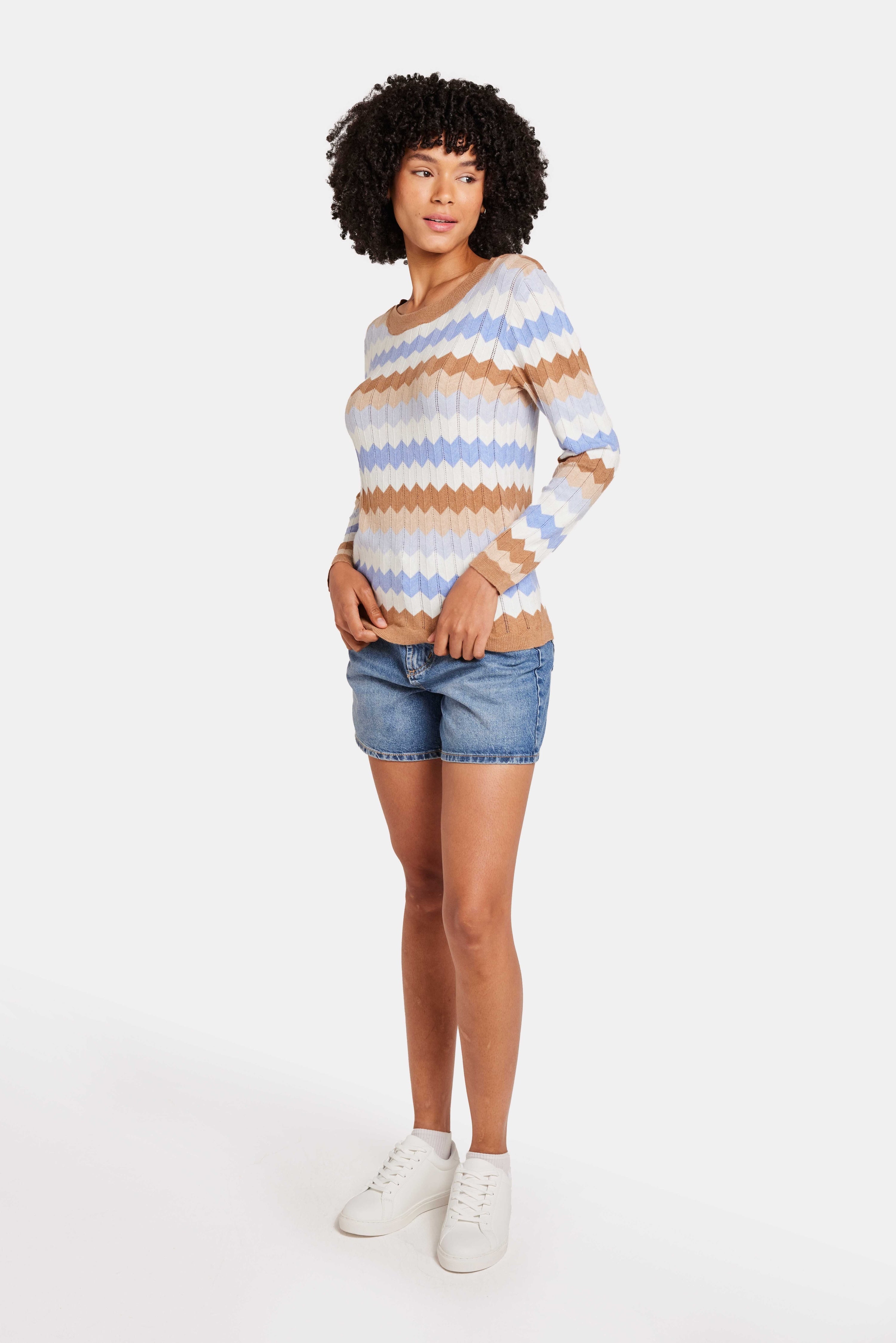 Get ready for the spring and summer seasons with our Brodie Wispr Zig Zag Crew Neck Sweater! Made with a luxurious blend of cotton, nylon, and silk, this sweater offers both comfort and style. Perfect for any occasion, feel confident and stylish in our new zig zag design.