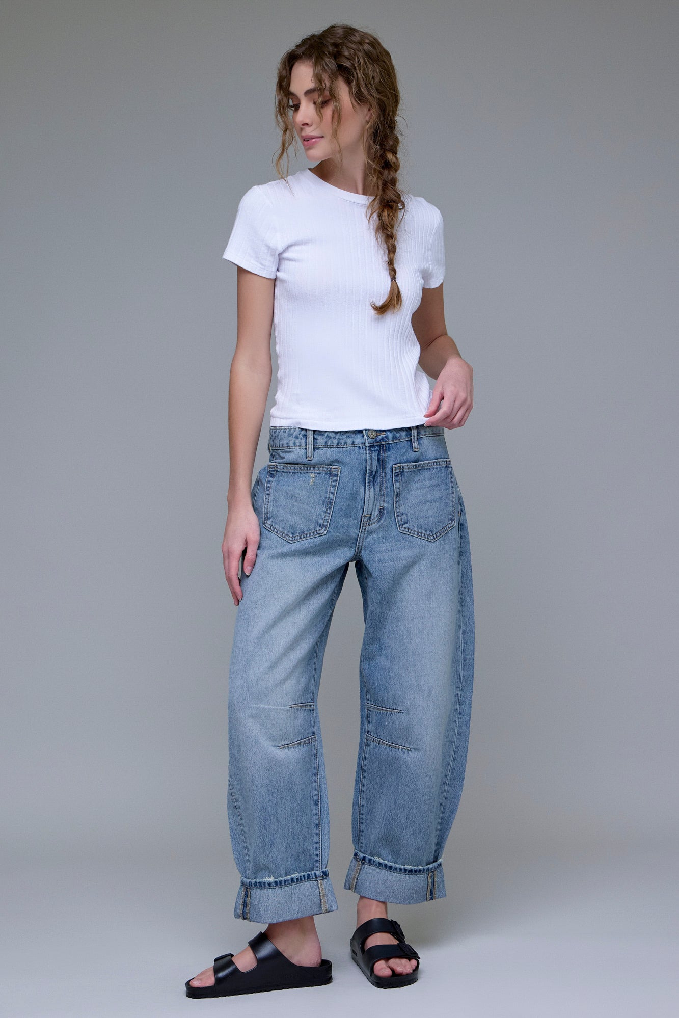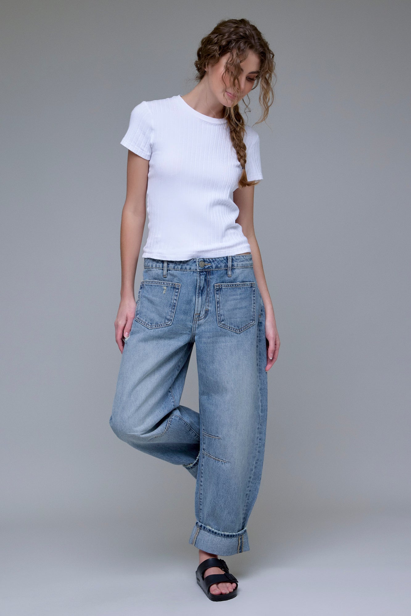 Elevate your denim collection with our Hidden Sammie Barrel Cuffed Jeans. These fashion-forward high-rise jeans feature a trendy barrel silhouette that flatters your curves while the cuffed leg adds a distinctive touch of style. The sleek flat front pockets create a smooth, streamlined look that pairs perfectly with any top. Make a statement with these must-have jeans that combine comfort and contemporary design.