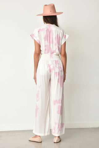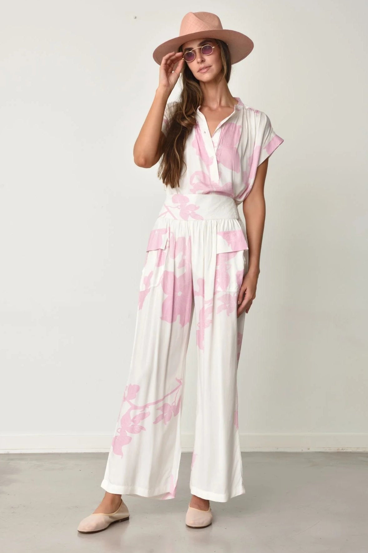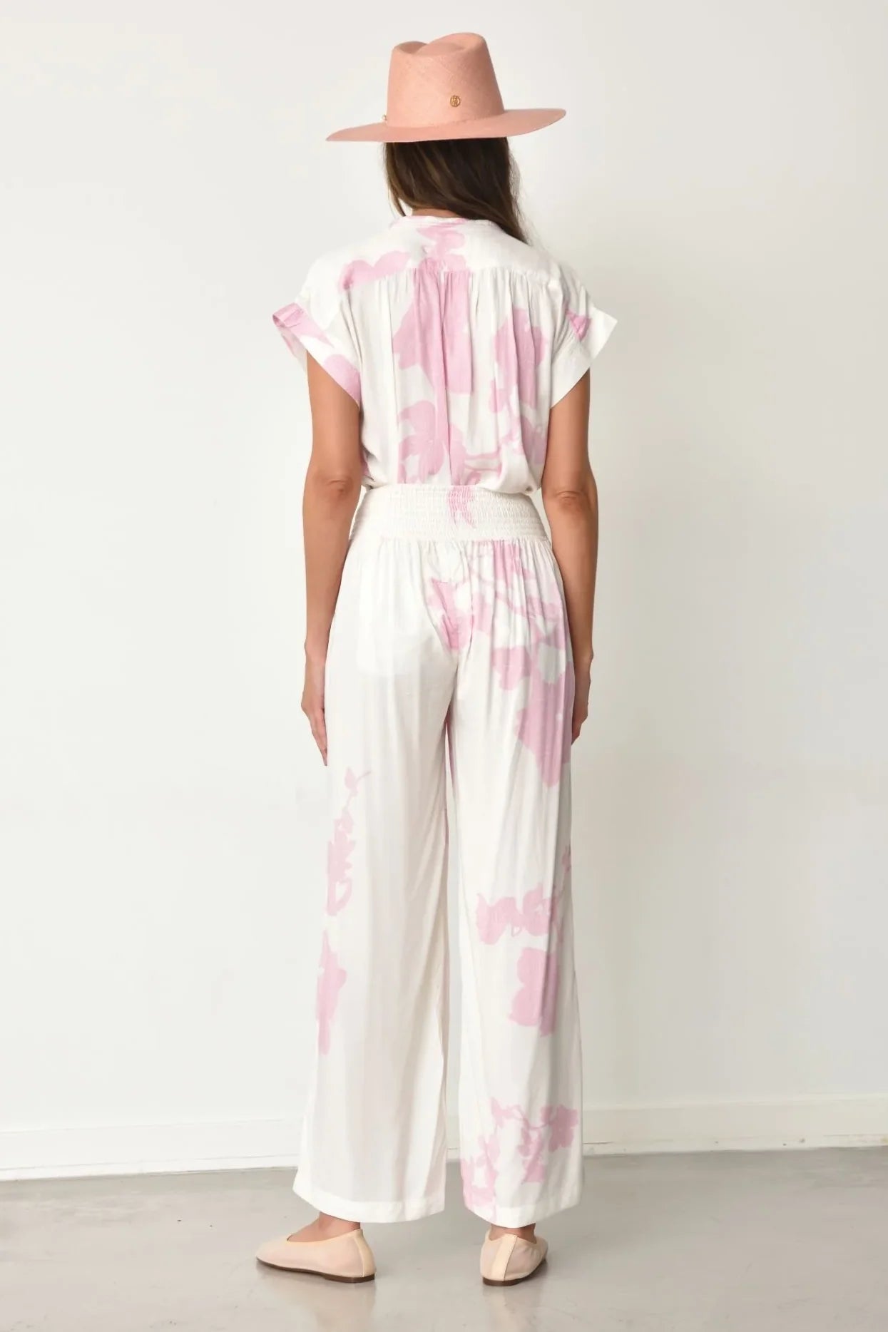 Experience luxury and comfort with Muche et Muchette's Kio Water Lily Pants. Adorned with delicate water lilies, these elegant pants feature a front pocket, back smocked elastic, and a relaxed fit. Perfect for the summer, pair with the Kio Kimono for a polished and refined look.