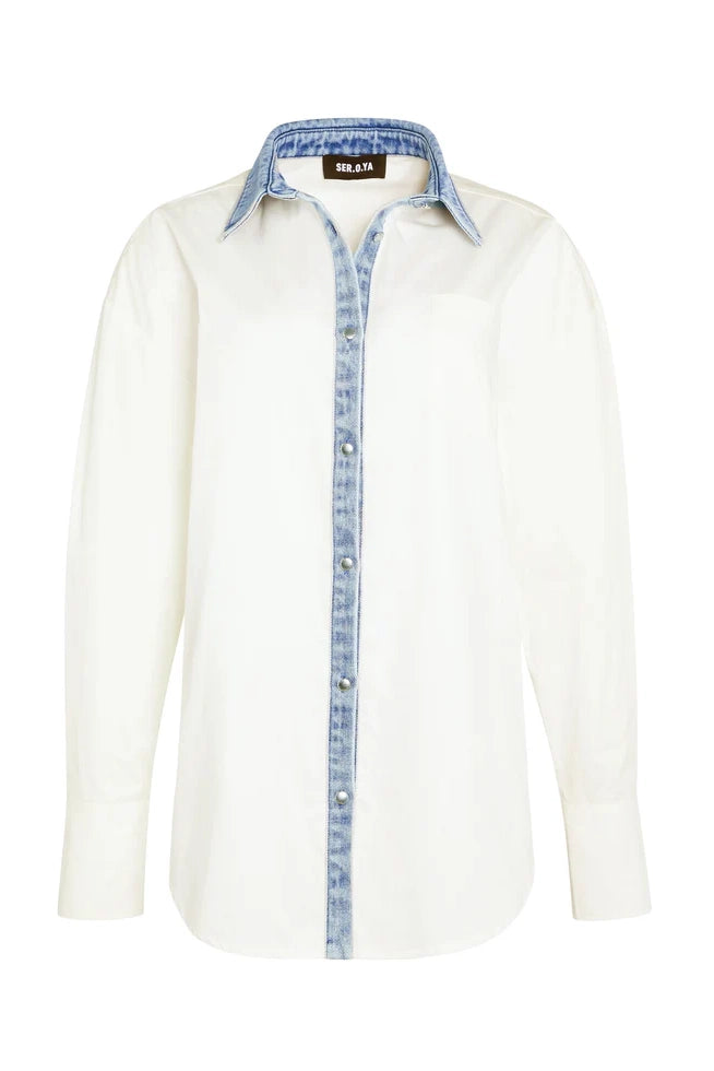 Introducing the Seroya Gill Oversized Shirt! Made with 100% cotton, this button down shirt features a stylish denim collar and placket detail. Its oversized design offers both comfort and fashion, making it a must-have for any wardrobe. Elevate your style and feel confident in this one-of-a-kind shirt!