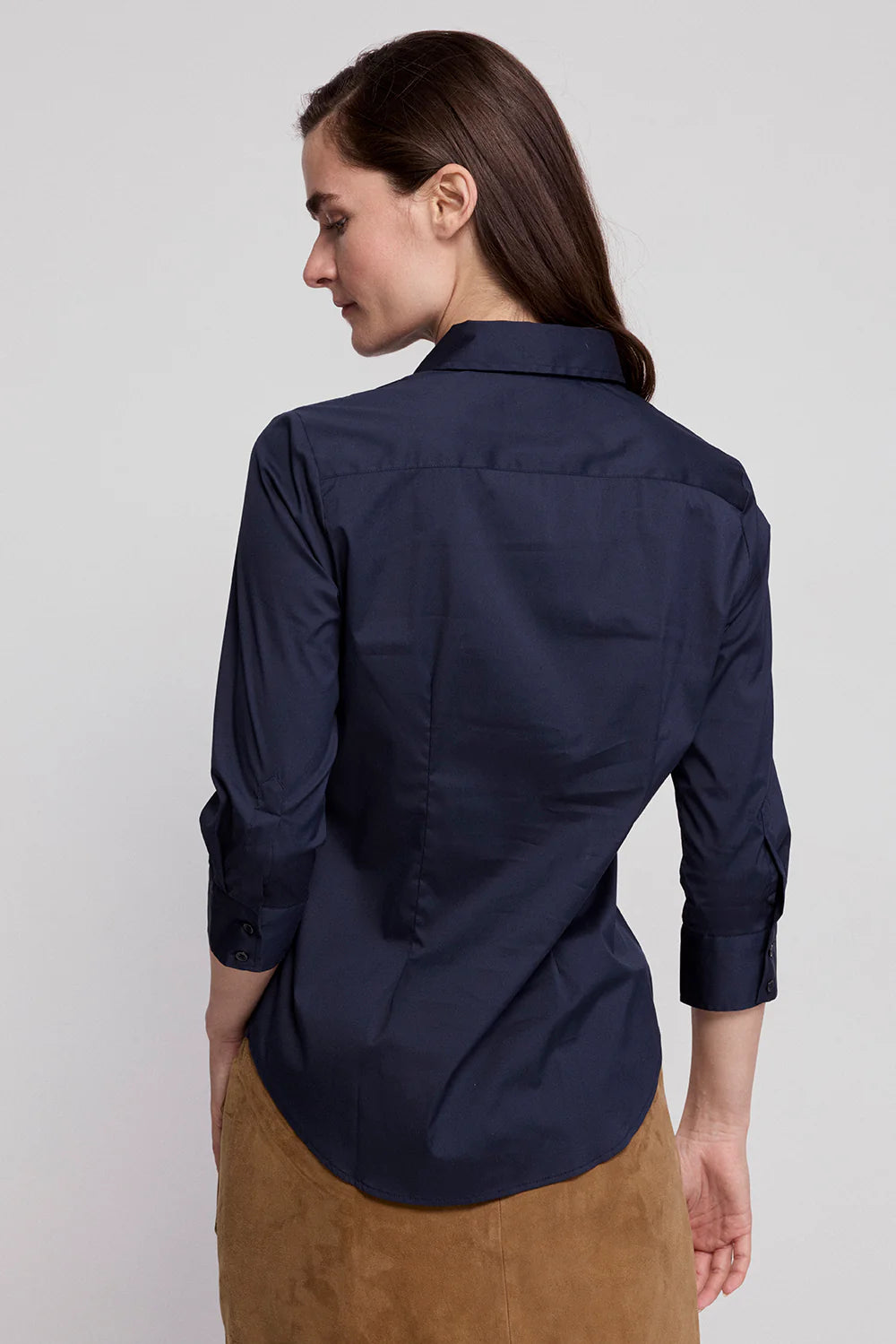 Elevate your wardrobe with our The Shirt Essential Icon 3/4 Sleeve. This cotton stretch button down features a tailored fit for a body-hugging shape and eliminates blouse gape. Made from premium cotton stretch sourced from Spain and crafted by local artisans in Portugal. Upgrade your style now!