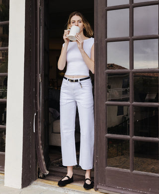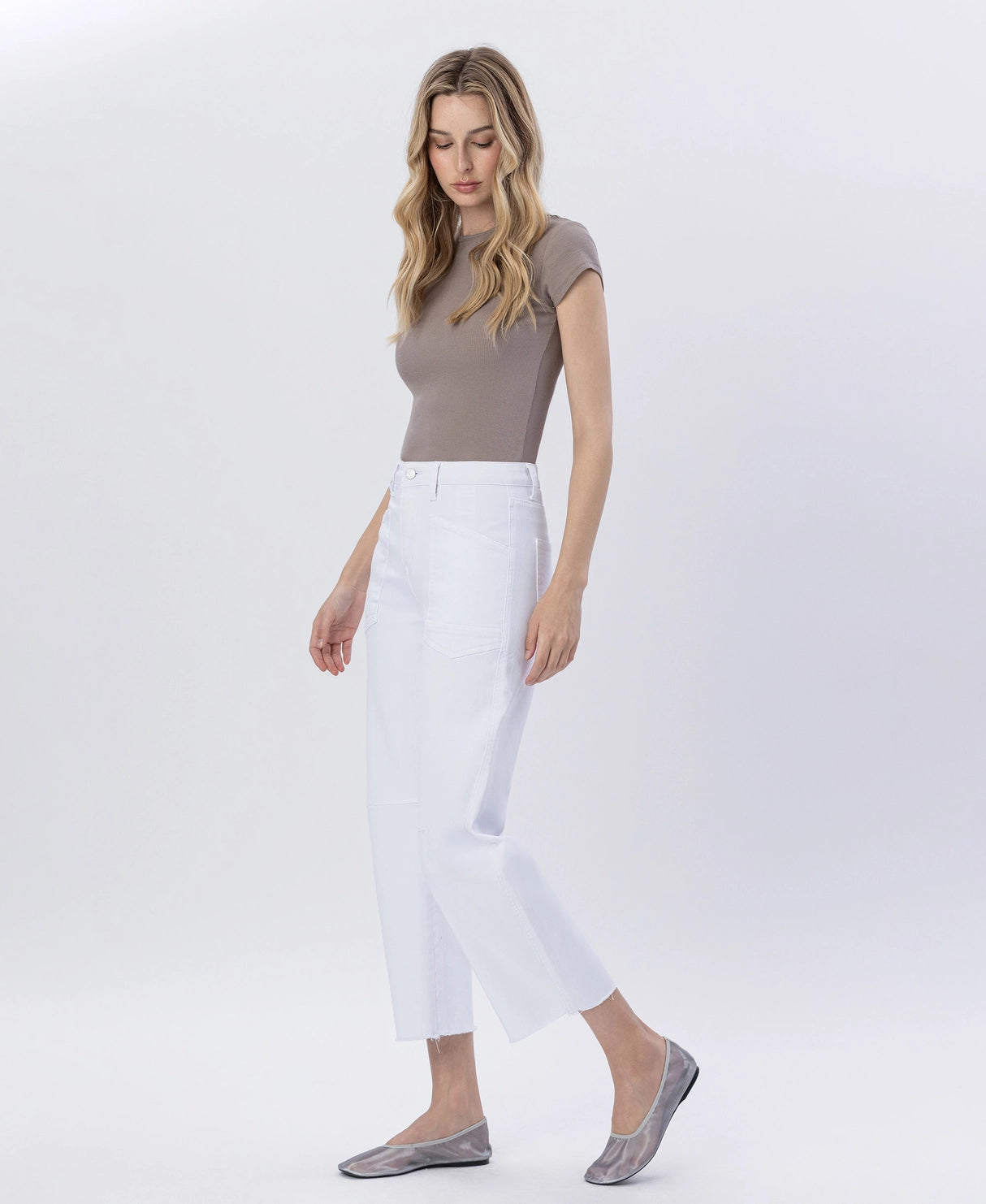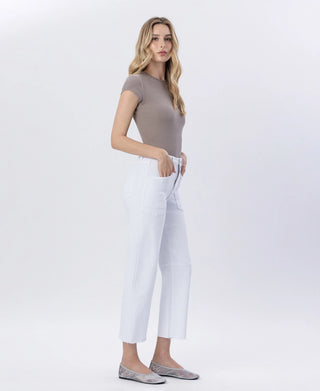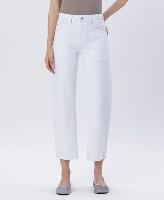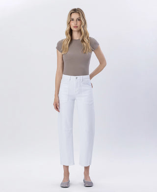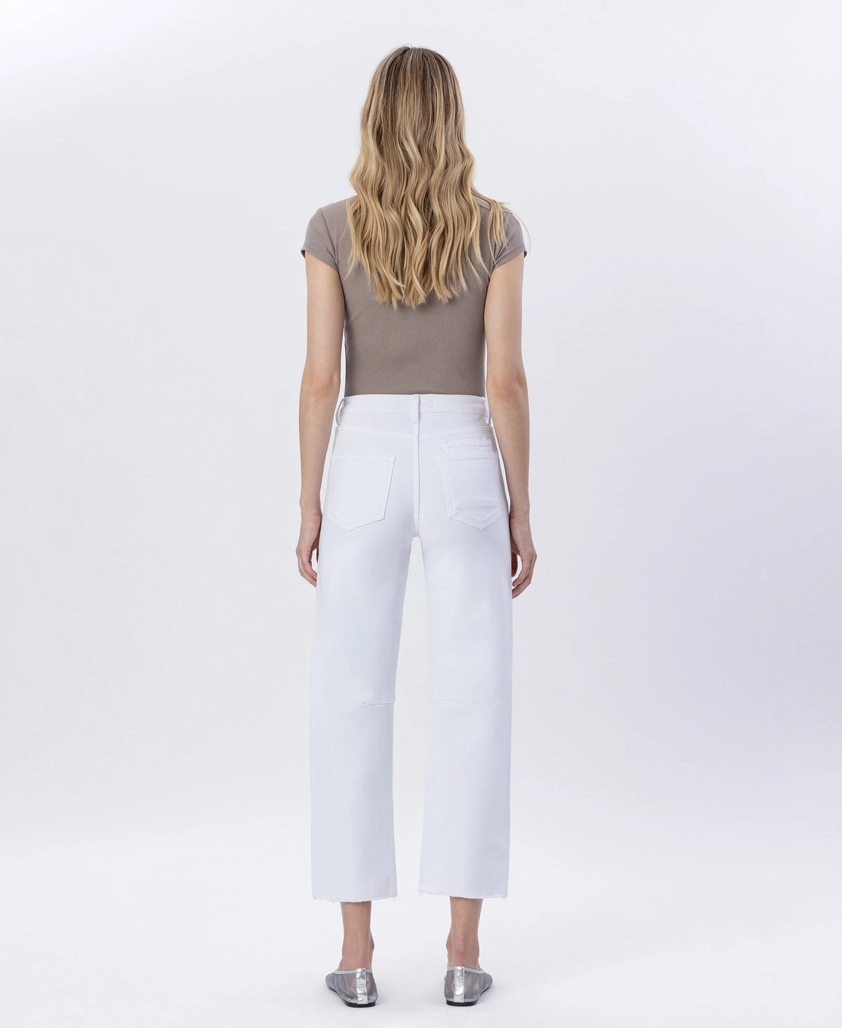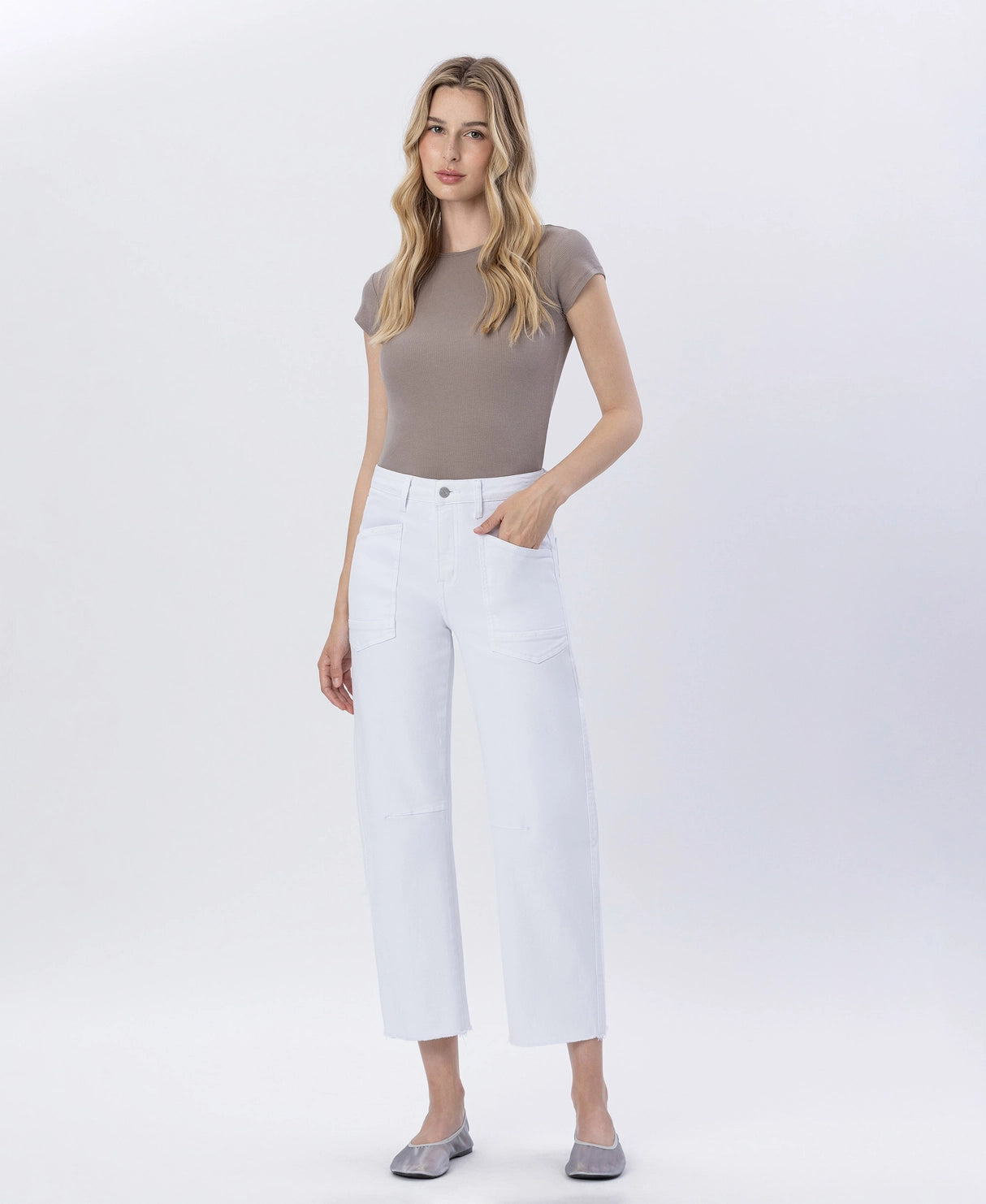 Experience effortless style with the Vervet Kate High Rise Barrel Jeans. Crafted from comfort stretch denim, these jeans offer a flattering high-rise waist and a trendy raw hem for an edgy finish. The cropped length and barrel silhouette create a modern, versatile look perfect for any casual occasion. Elevate your wardrobe with these must-have jeans that combine comfort and contemporary fashion.