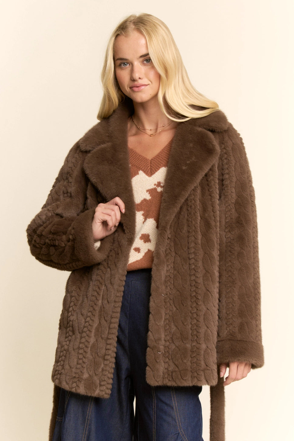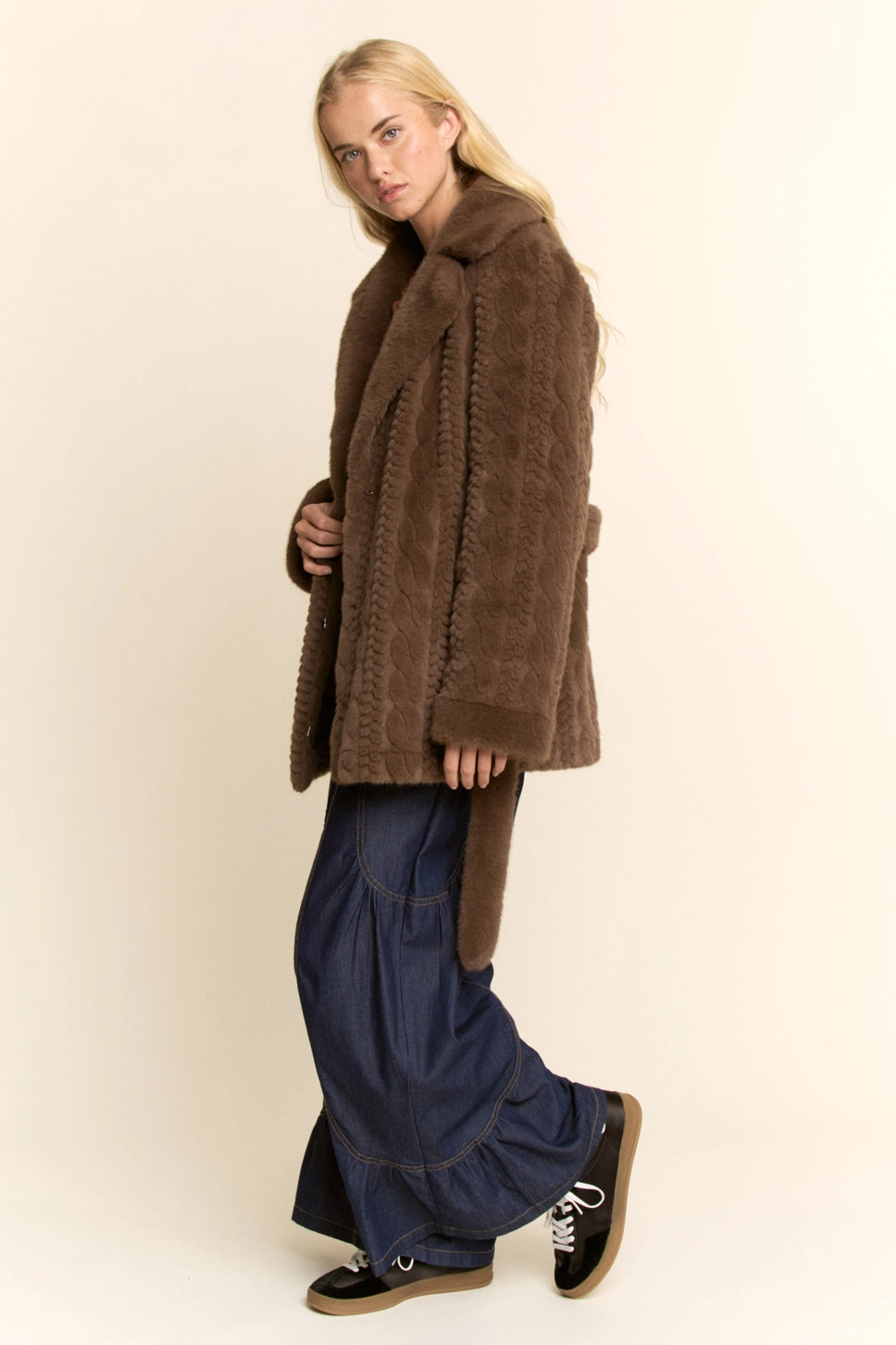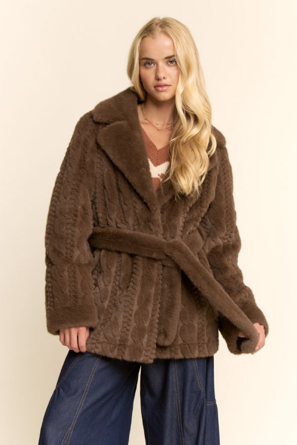 Elevate your outerwear collection with the 61 Jane Belted Faux Fur Coat, where luxurious texture meets contemporary design. This sophisticated piece features a sumptuous plush hand feel, striking wide lapel collar, and a removable tie waist that adapts to your styling mood. Layer it effortlessly over denim, flowing dresses, or tailored separates to achieve that coveted polished aesthetic. The refined warmth and modern elegance make this coat an essential investment for anyone craving cozy sophistication without compromising on timeless style. A versatile statement piece that transforms any ensemble into something extraordinary.